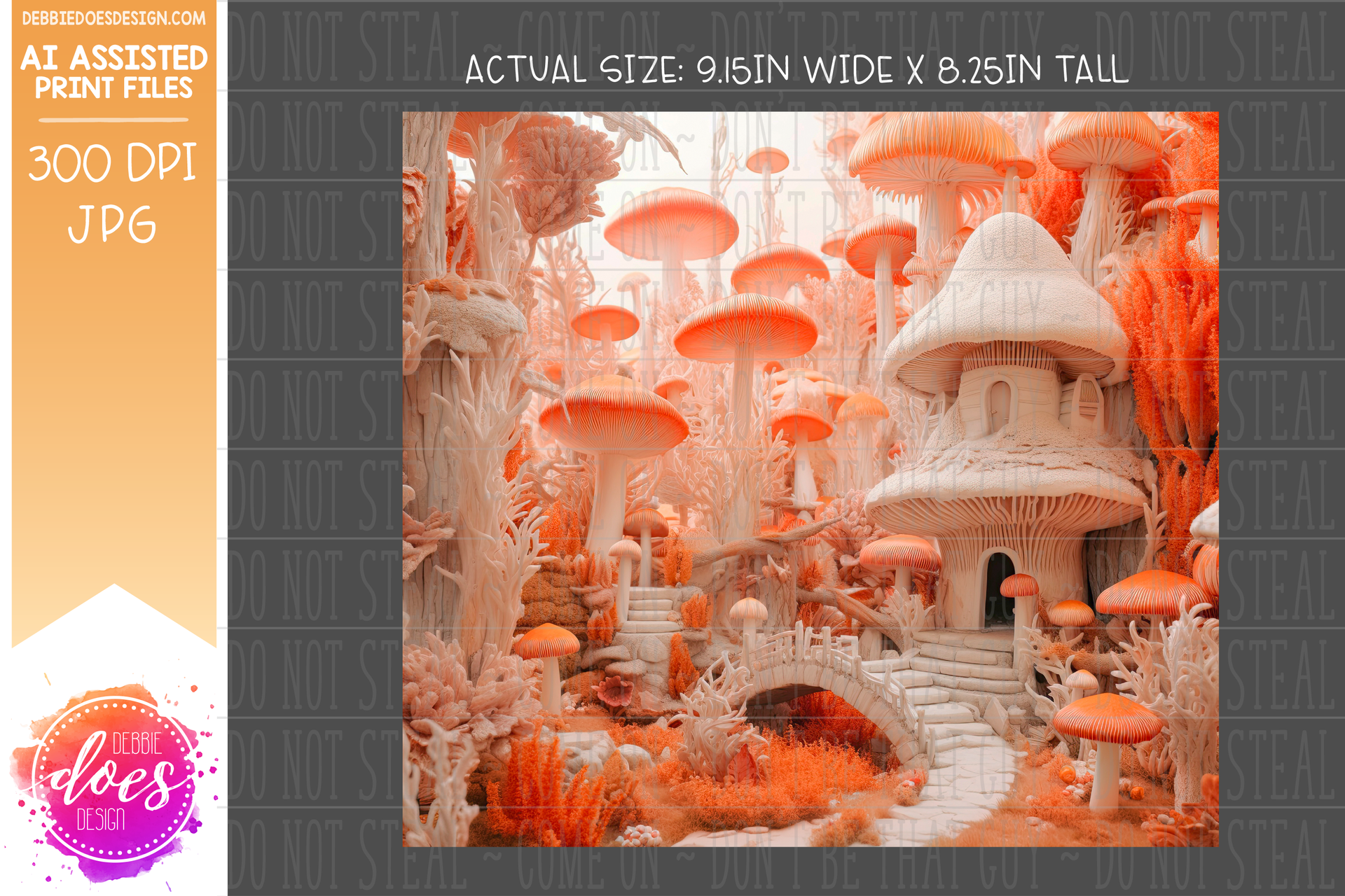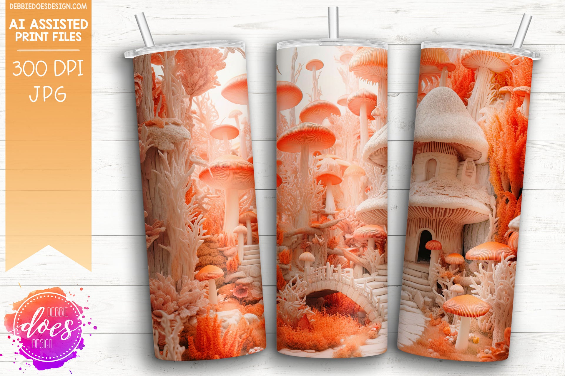 3D Paper Mushroom Garden Village - Ivory Orange 1 - 3D Tumbler - Printable/Sublimation Design