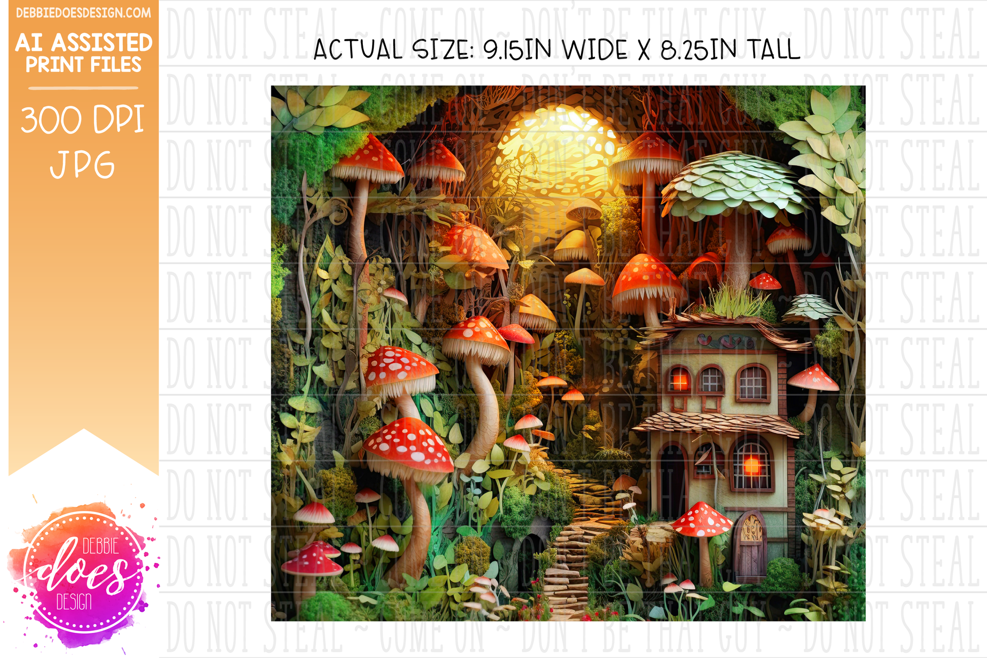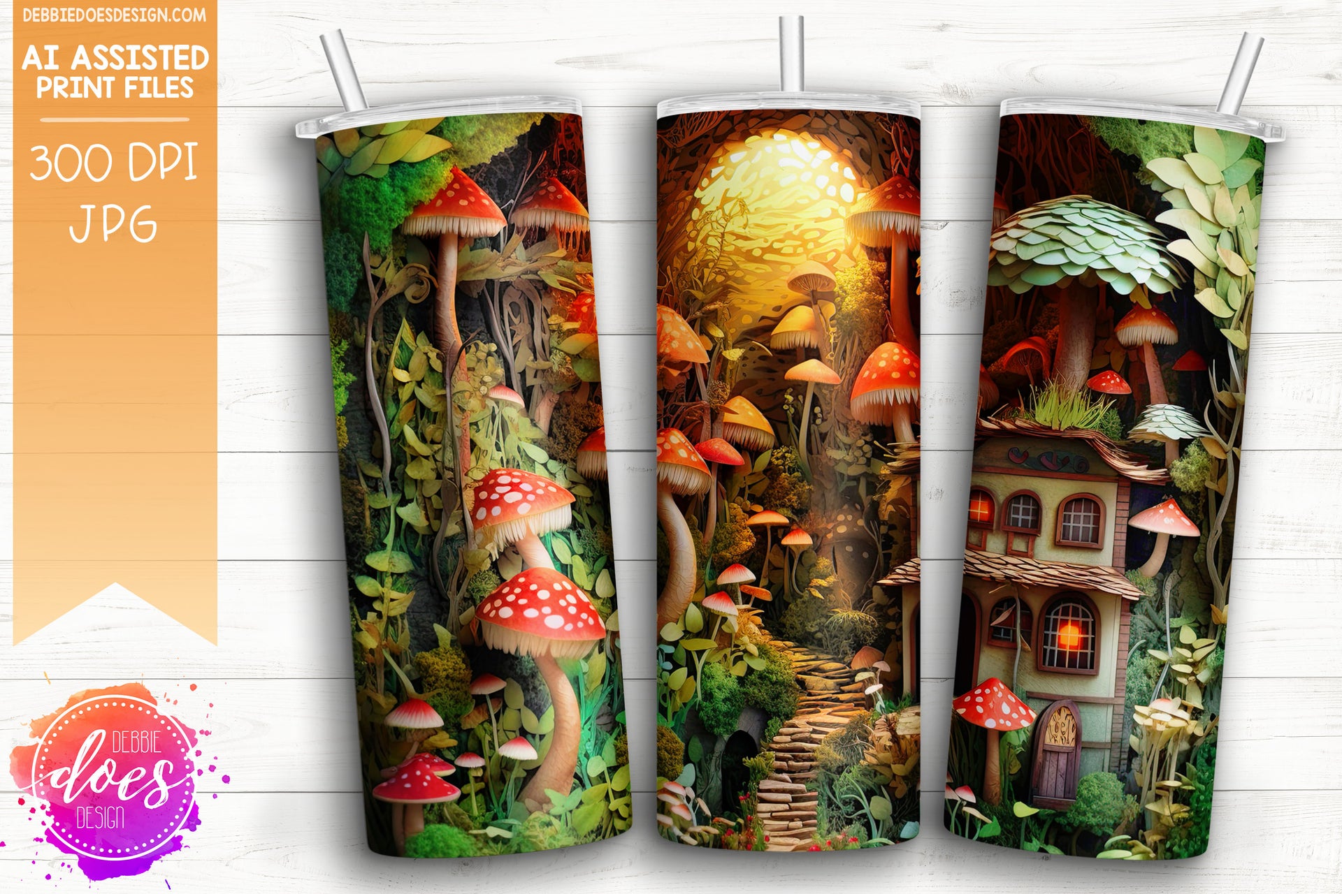 3D Paper Mushroom Garden Village - Red Green 1 - 3D Tumbler - Printable/Sublimation Design