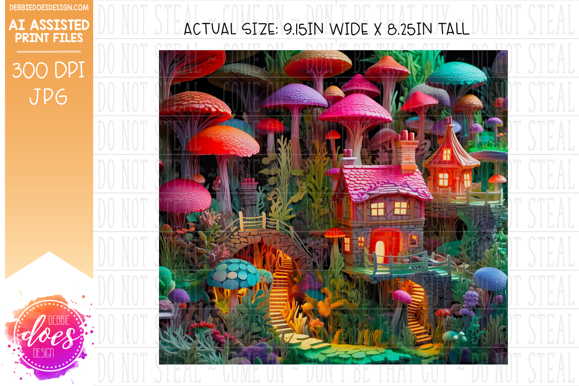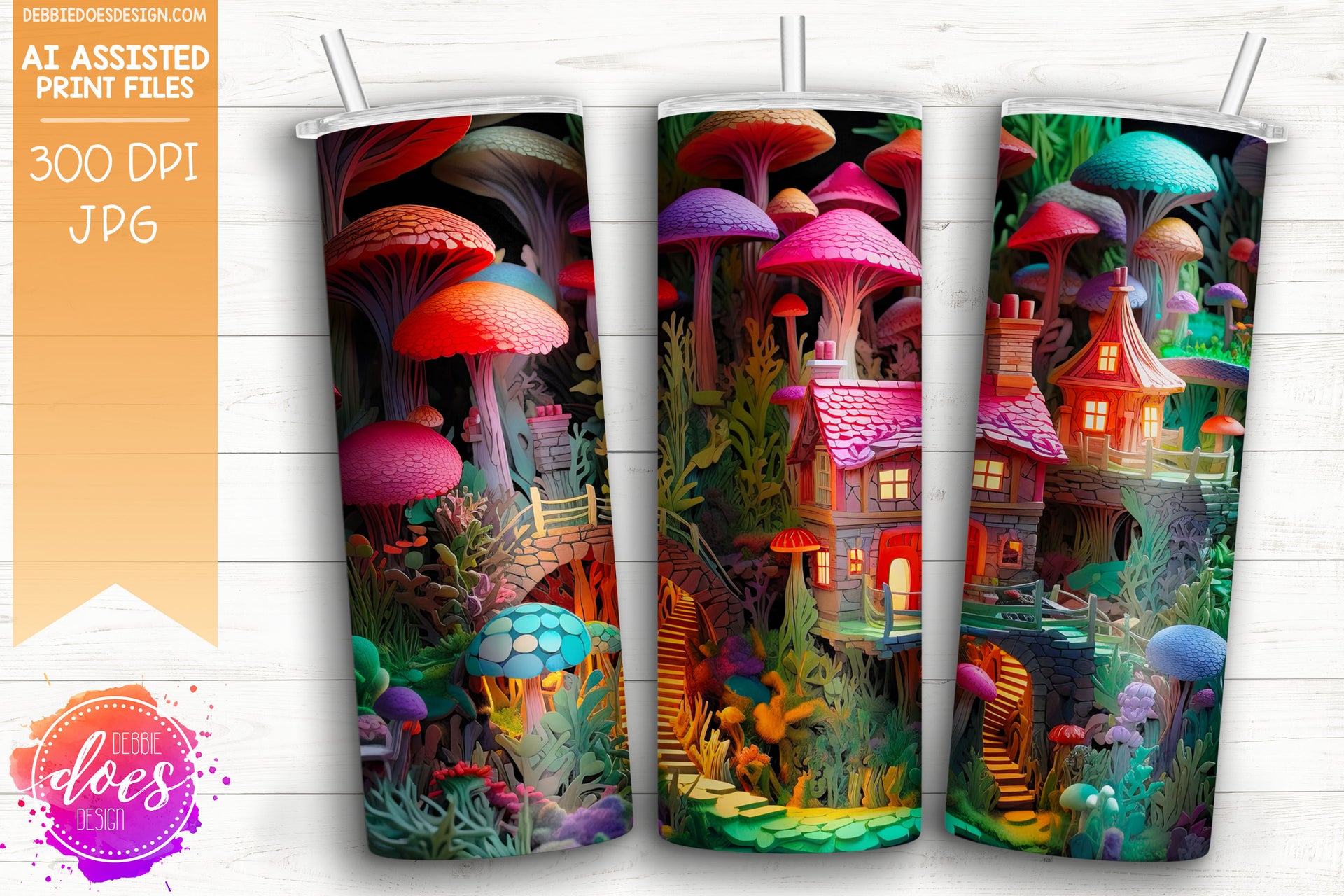 3D Paper Mushroom Garden Village - Vivid 2 - 3D Tumbler - Printable/Sublimation Design
