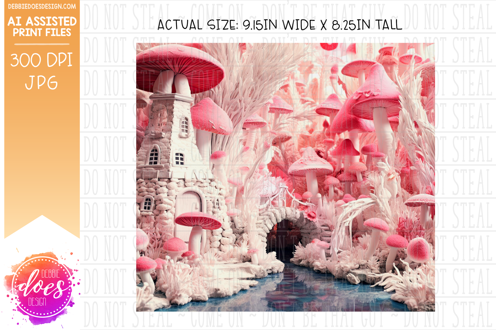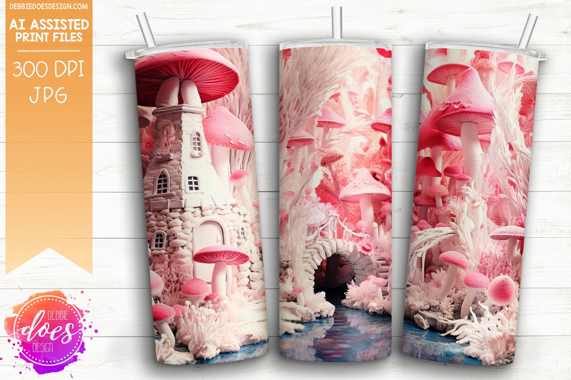 3D Paper Mushroom Garden Village - White Pink 1 - 3D Tumbler - Printable/Sublimation Design