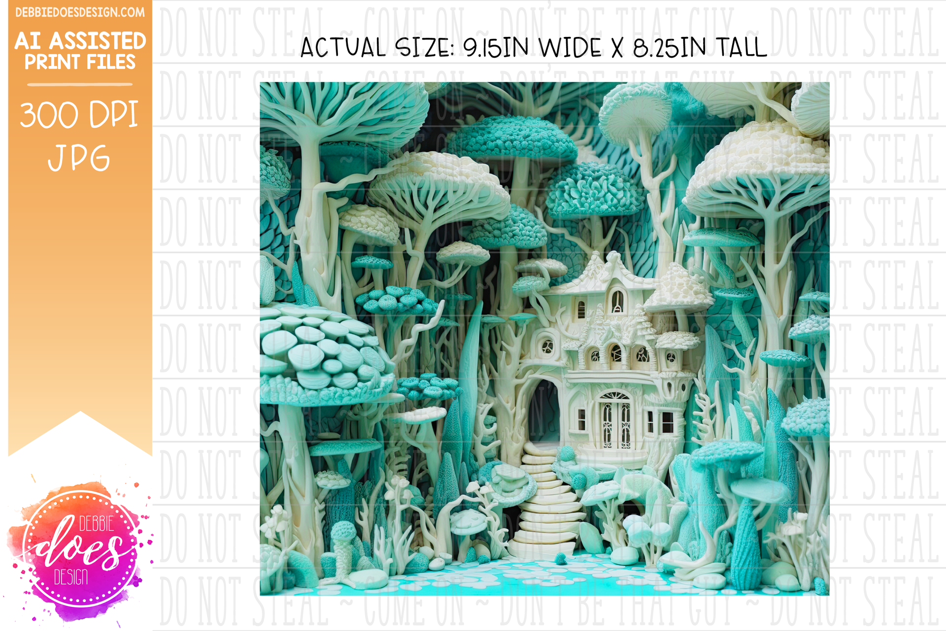 3D Paper Mushroom Garden Village - White Teal 1 - 3D Tumbler - Printable/Sublimation Design