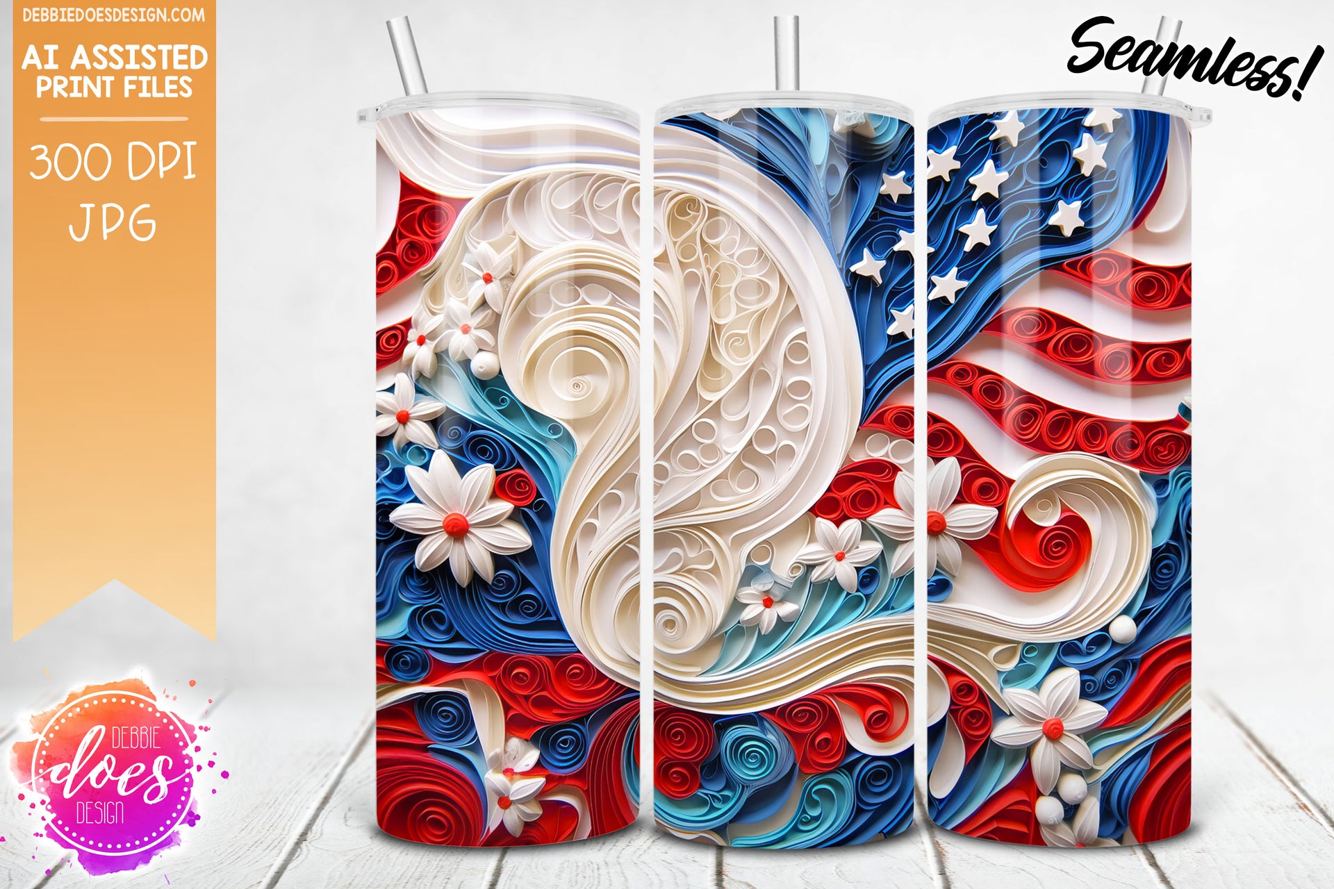 3D Paper Stars and Stripes 1 - Tumbler - Printable/Sublimation Design
