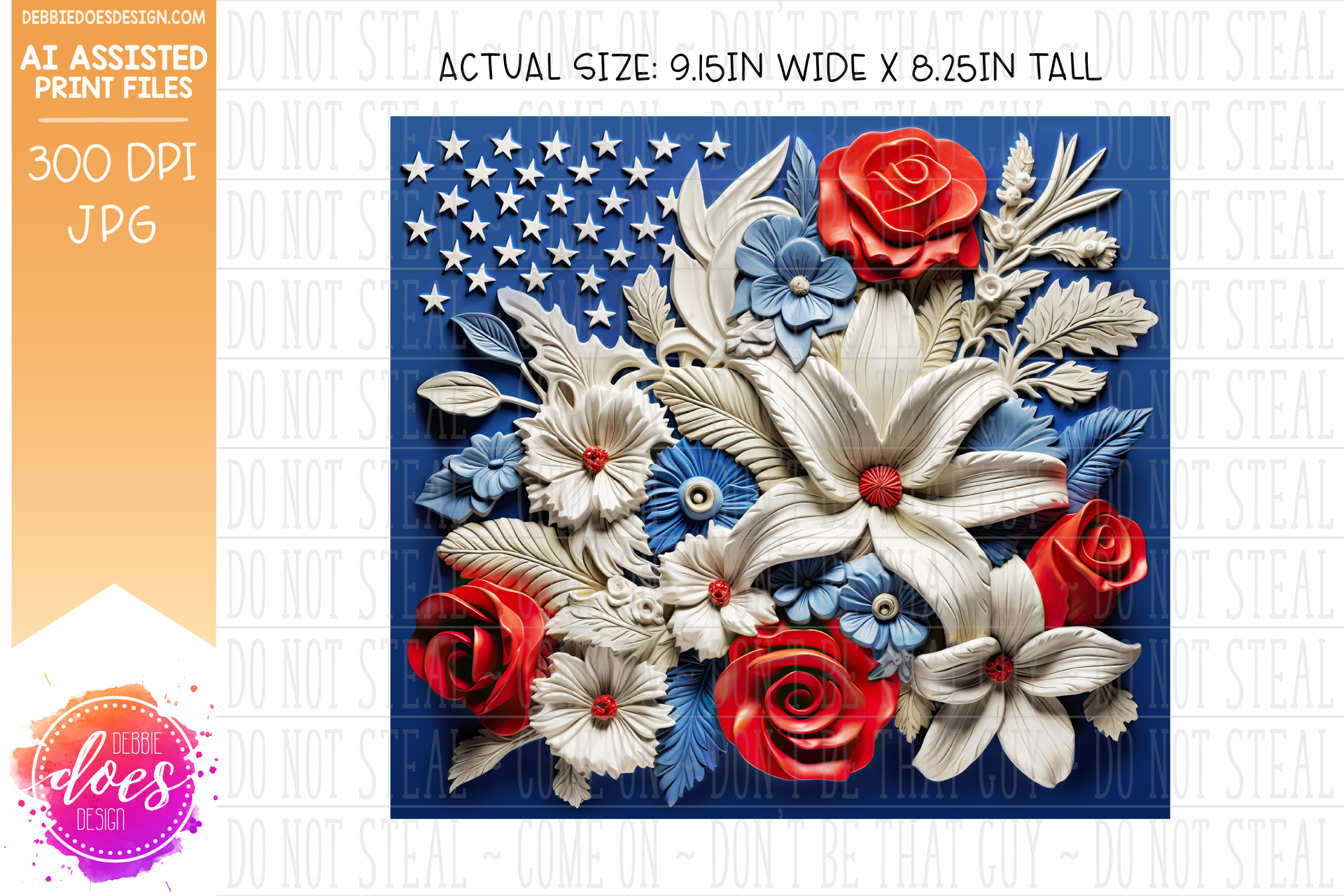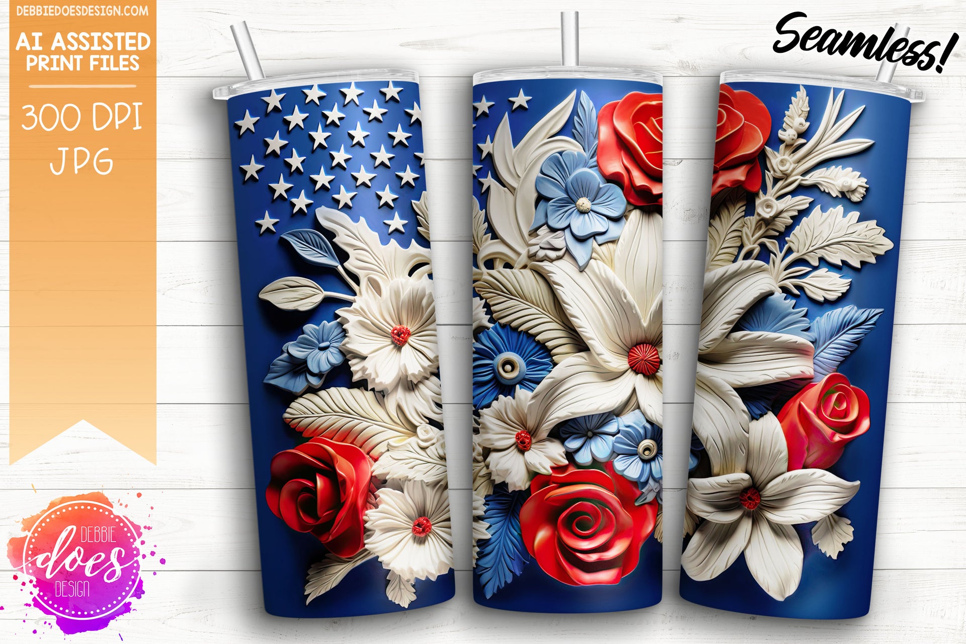 3D Patriotic Flowers 2 - 3D Tumbler - Printable/Sublimation Design