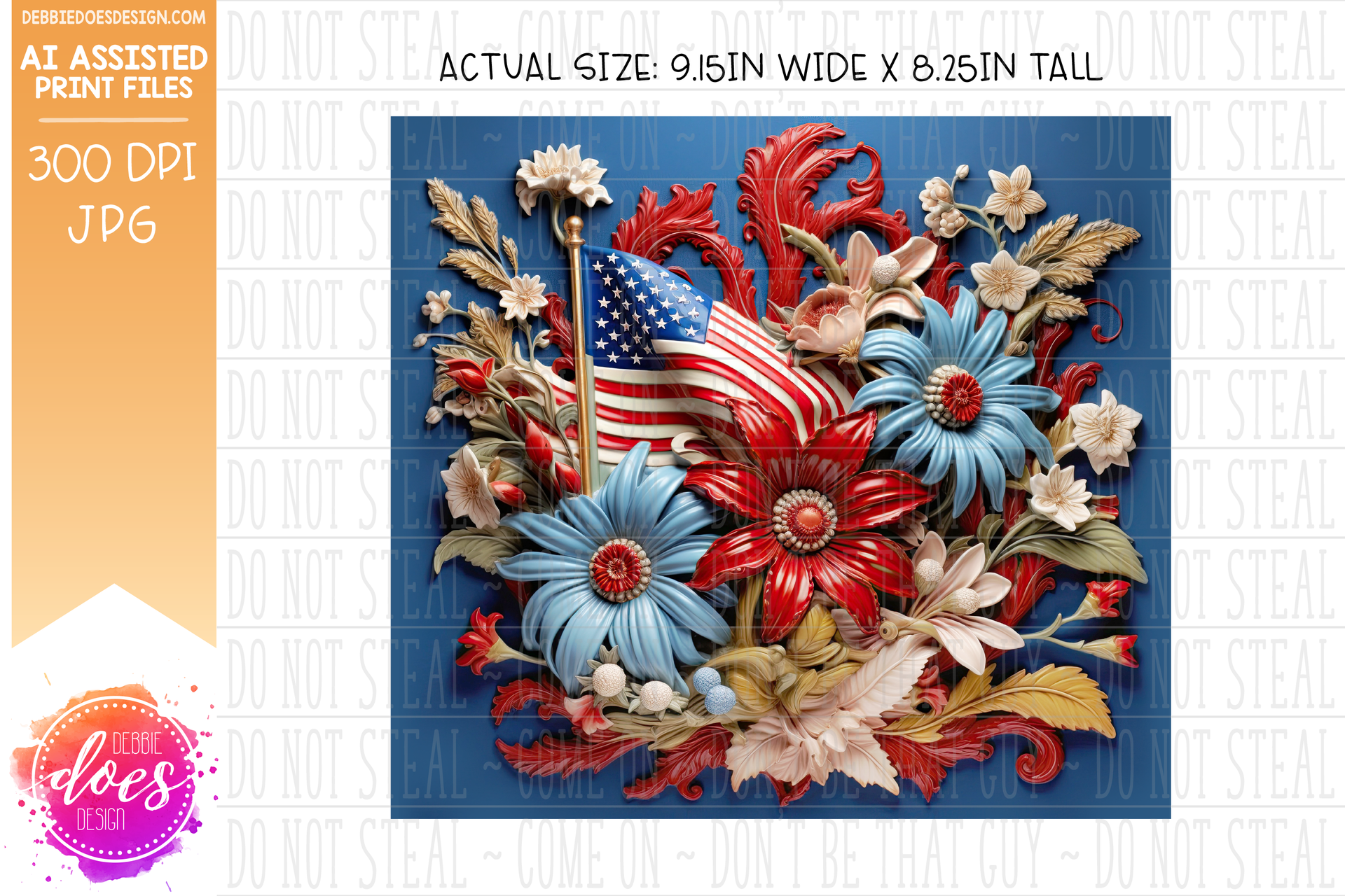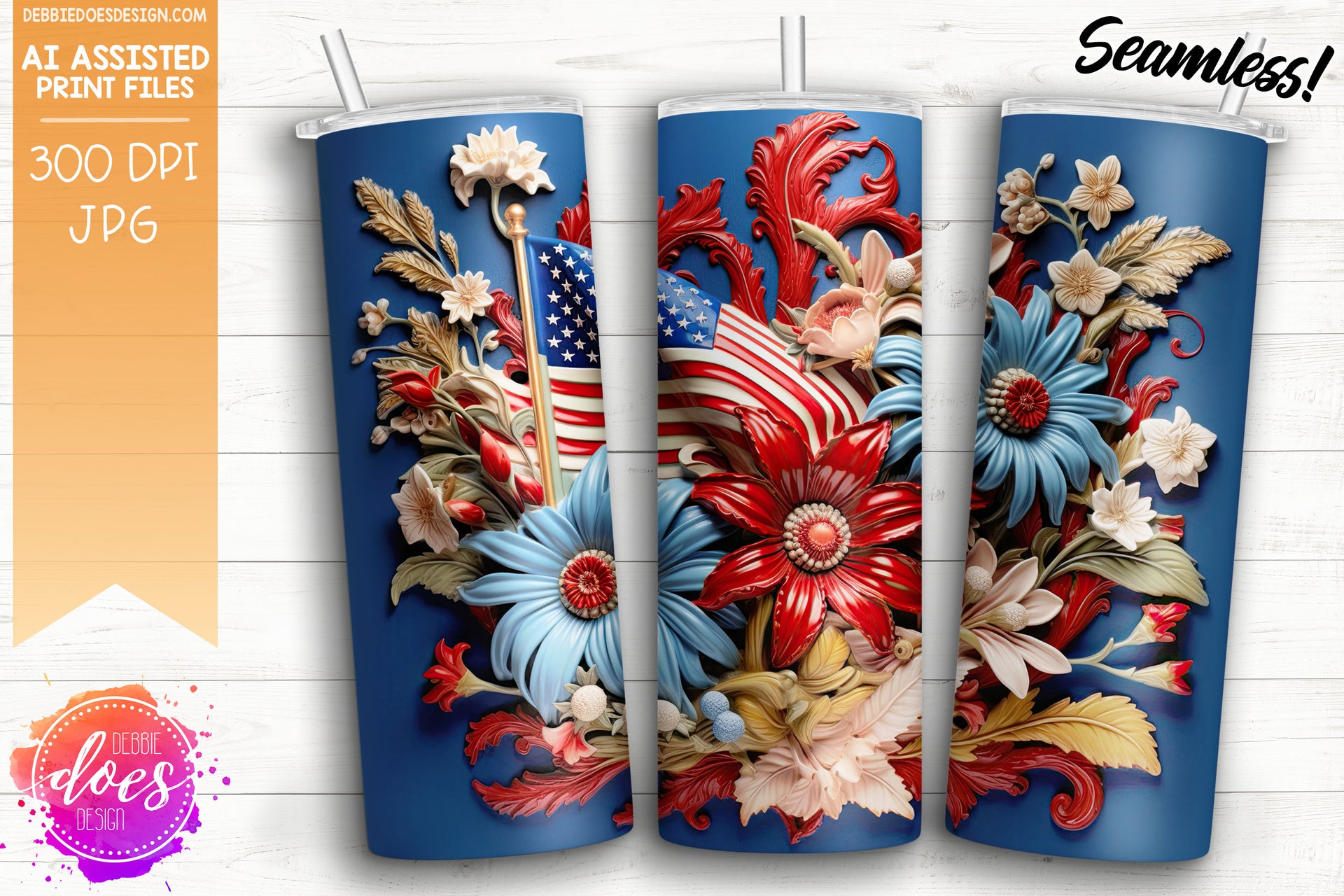 3D Patriotic Flowers 4 - 3D Tumbler - Printable/Sublimation Design