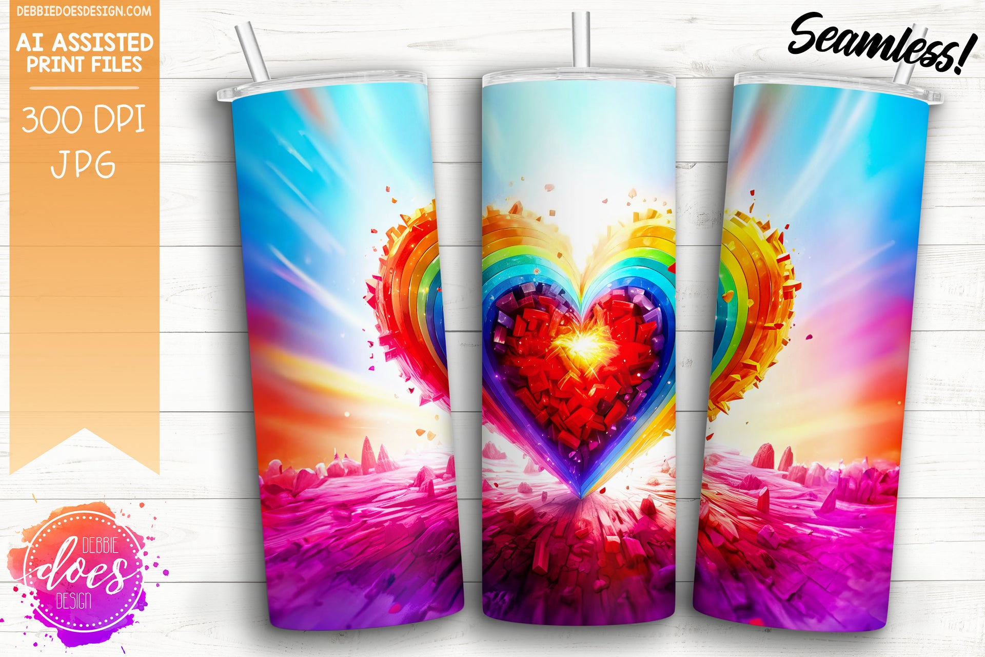 3D Rainbow Heart 3 - Tumbler - Printable/Sublimation Design