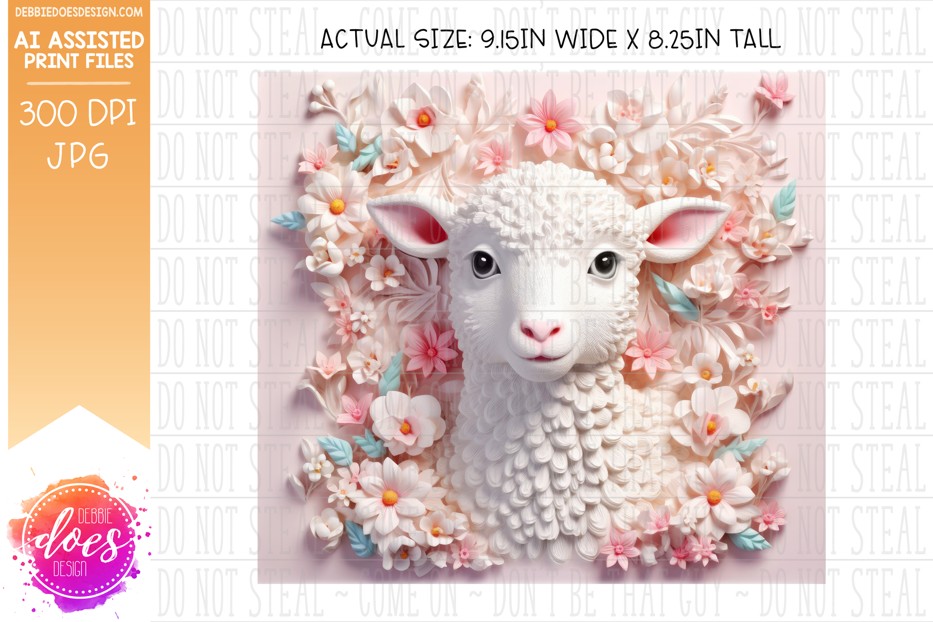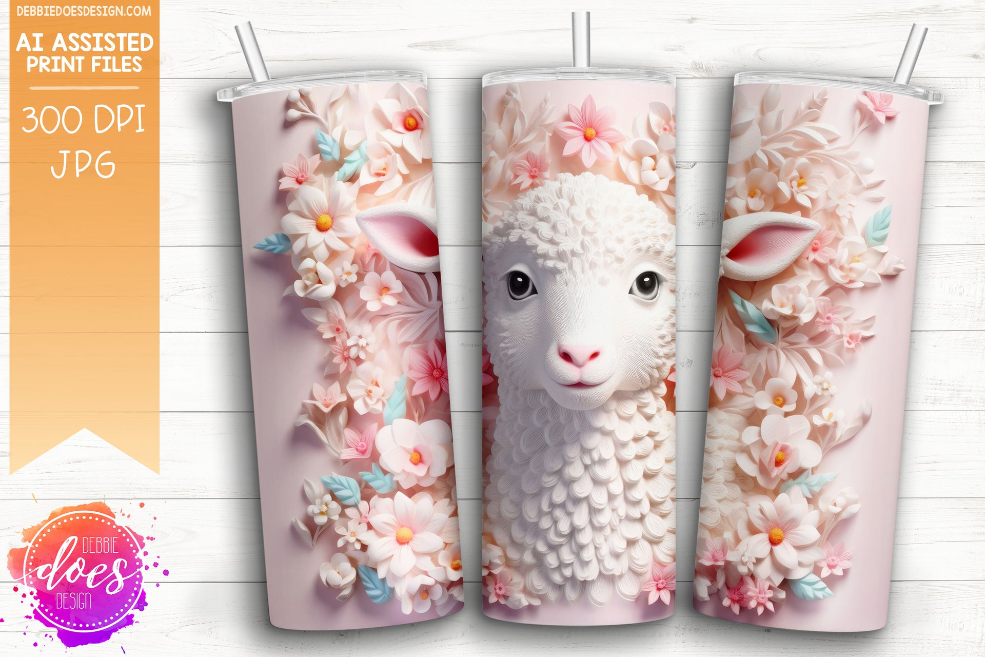 3D Sculpted Art - Lamb with Pastel Flowers 1 - 3D Tumbler - Printable/Sublimation Design