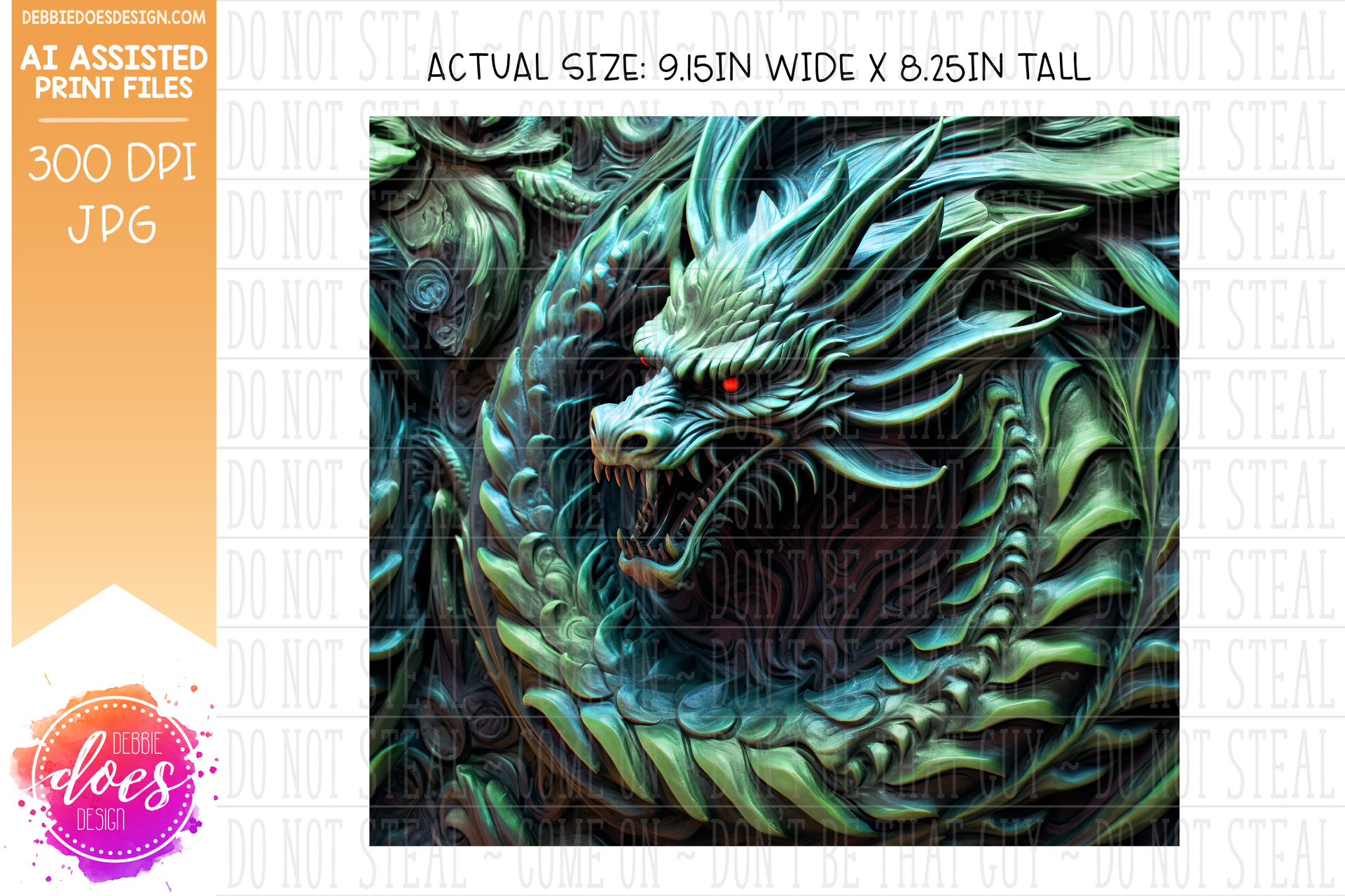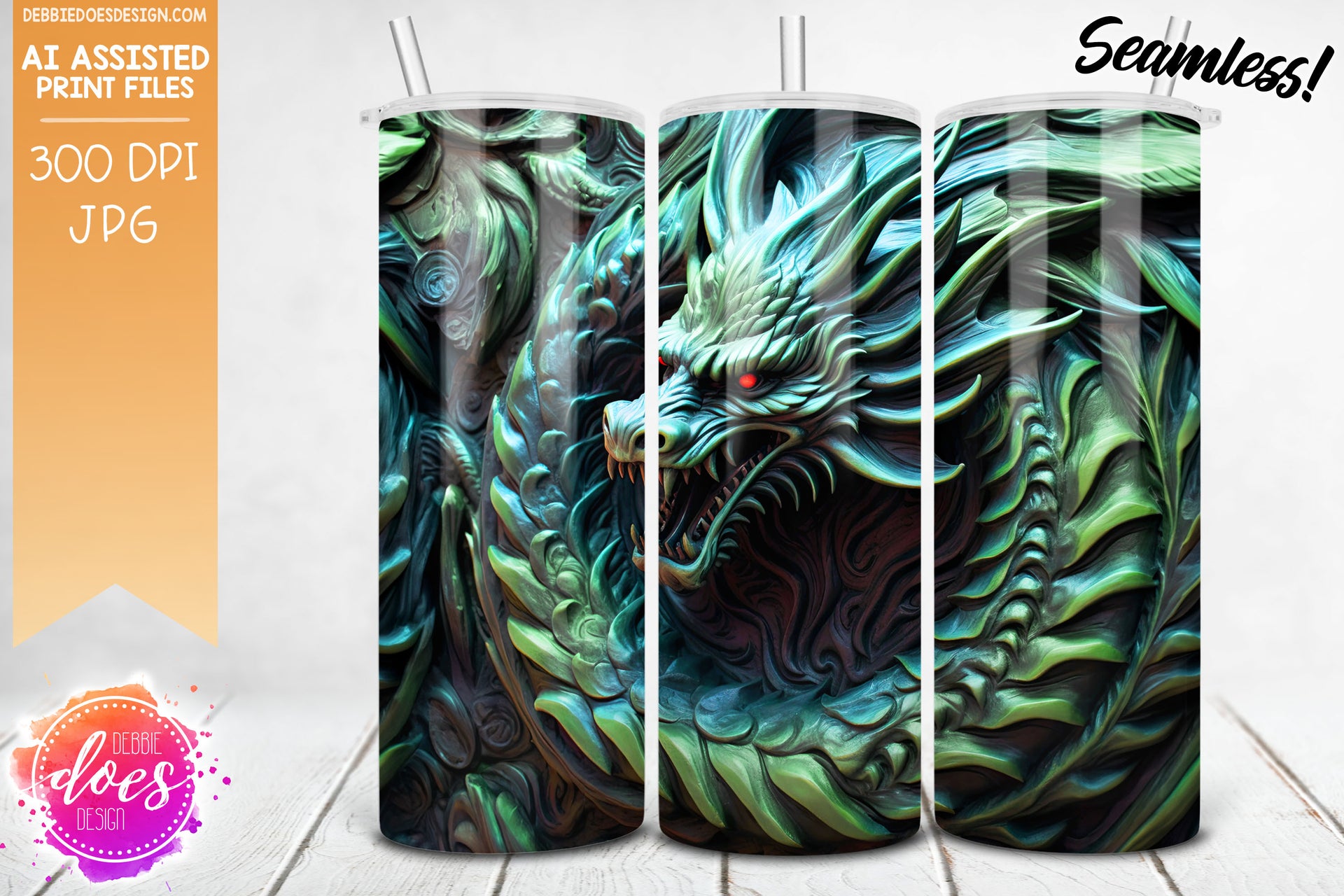 3D Sculpted Bronze Dragon 1 - Green - 3D Tumbler - Printable/Sublimation Design