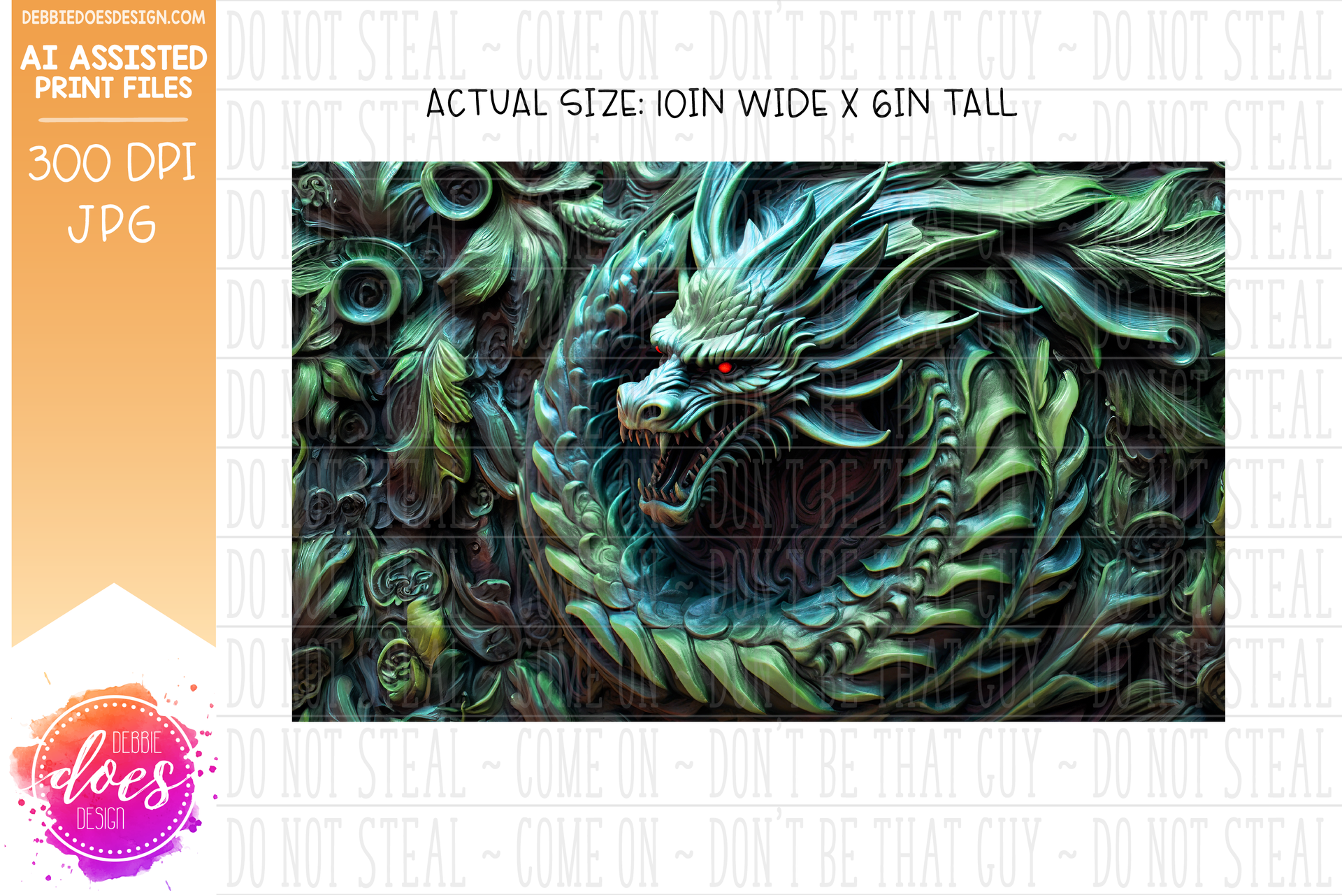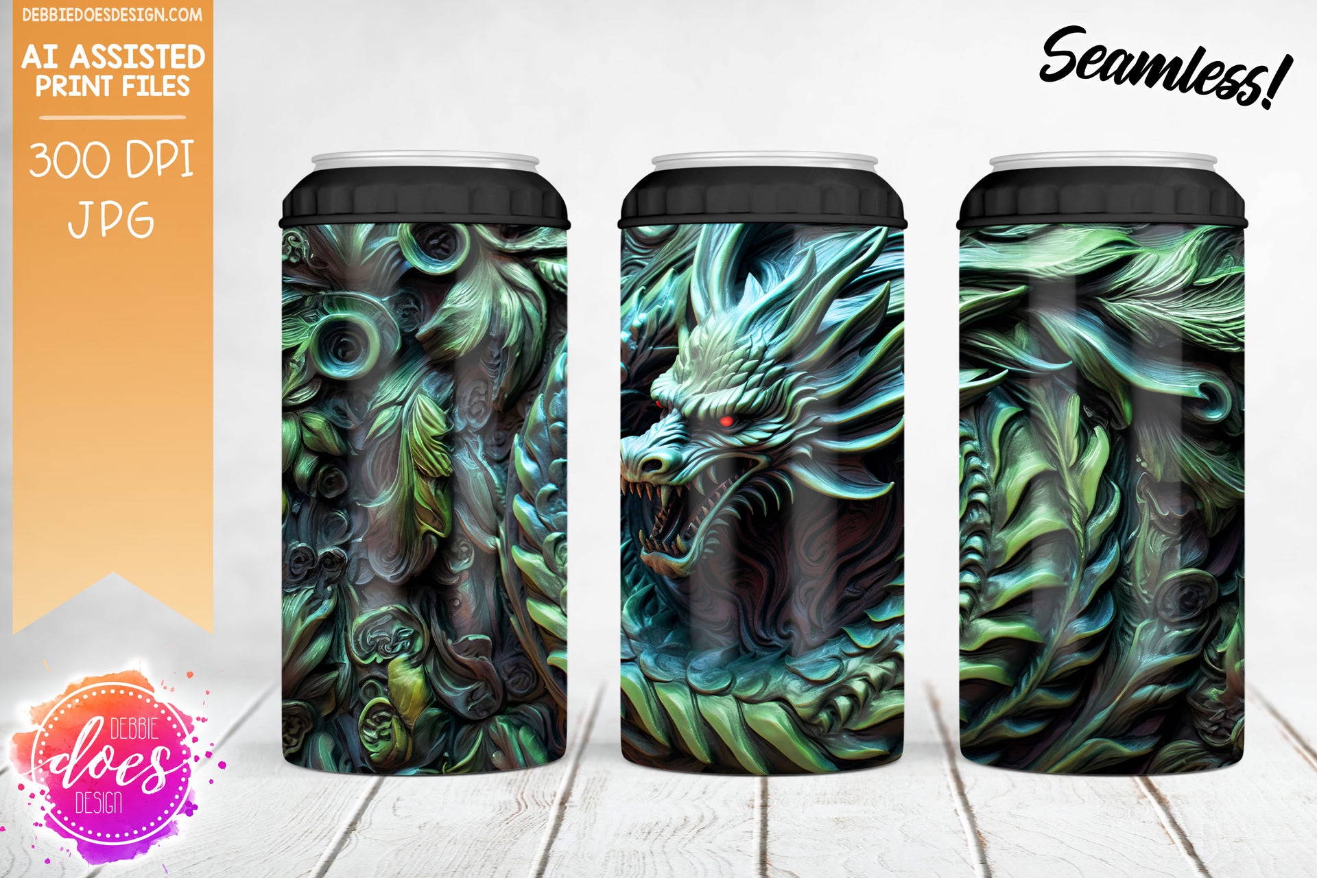 3D Sculpted Bronze Dragon - Green 1 - 4-in-1 Can Cooler - Printable/Sublimation Design