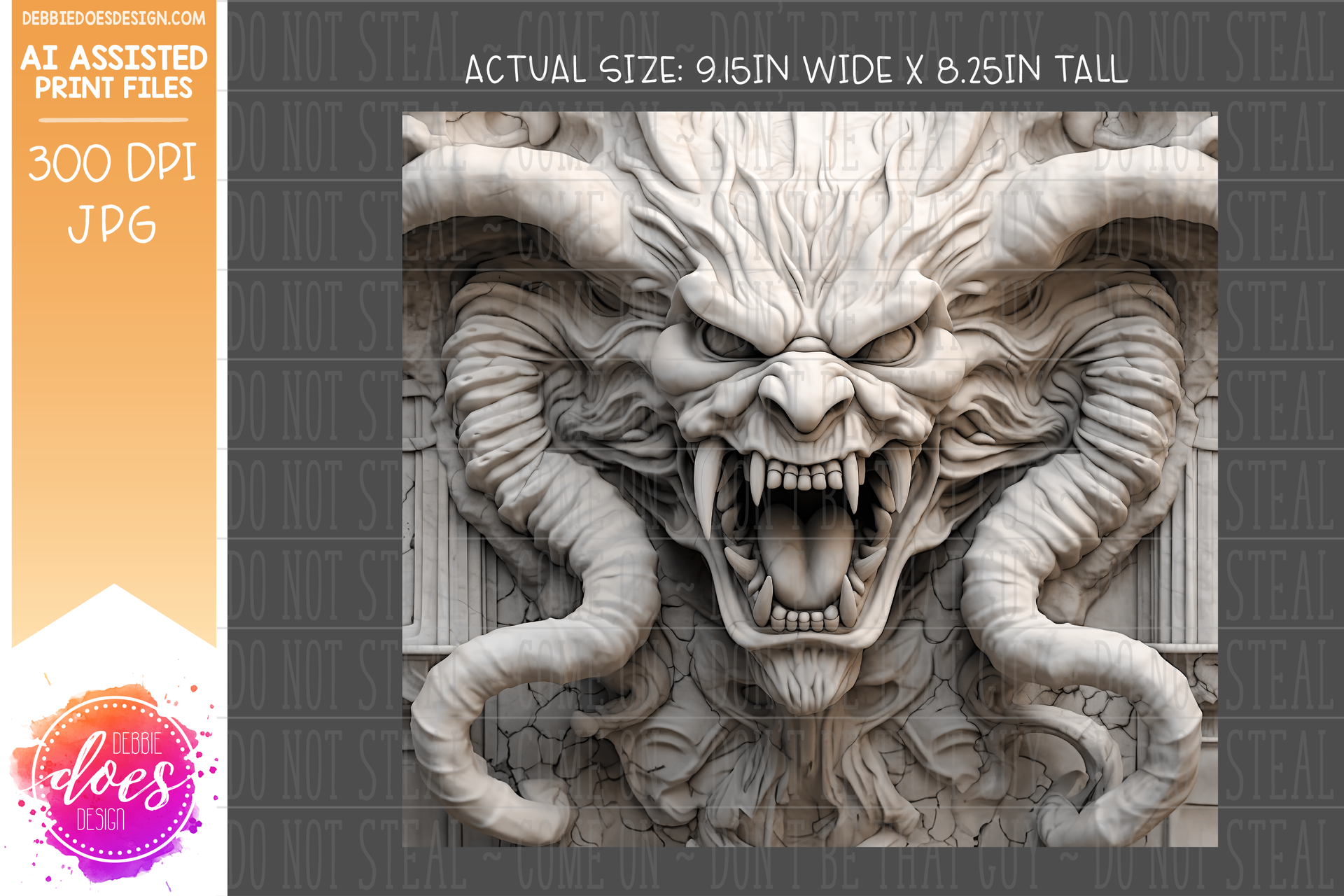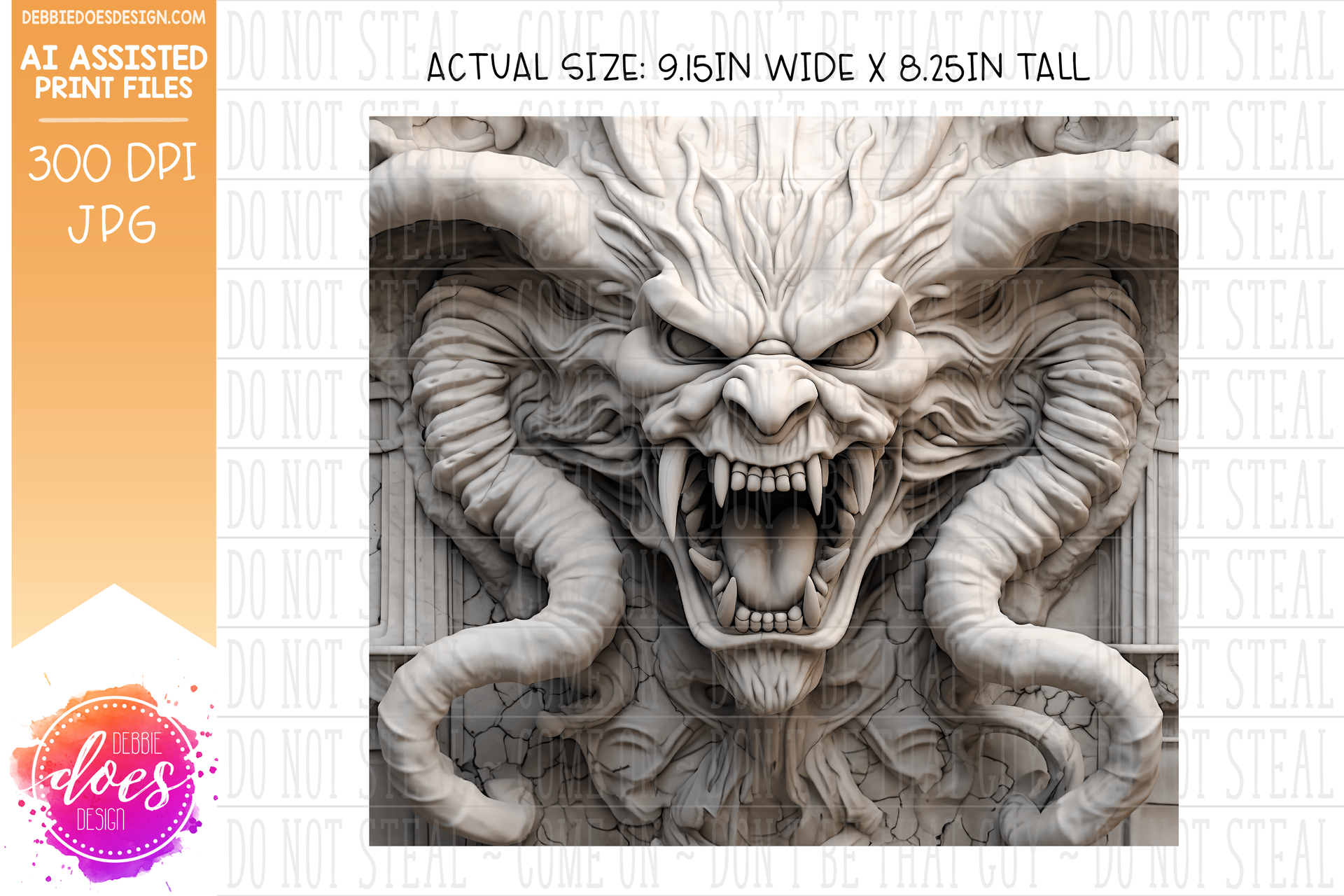 3D Sculpted Clay Demon 1 - 3D Tumbler - Printable/Sublimation Design