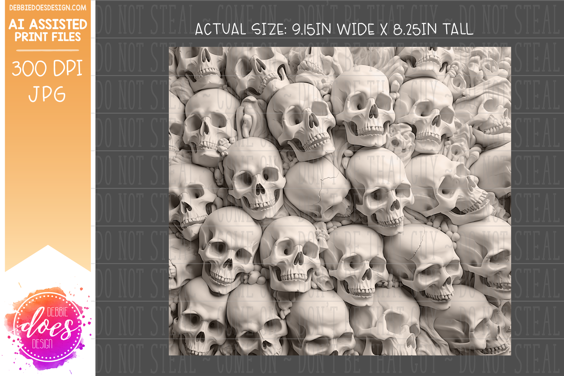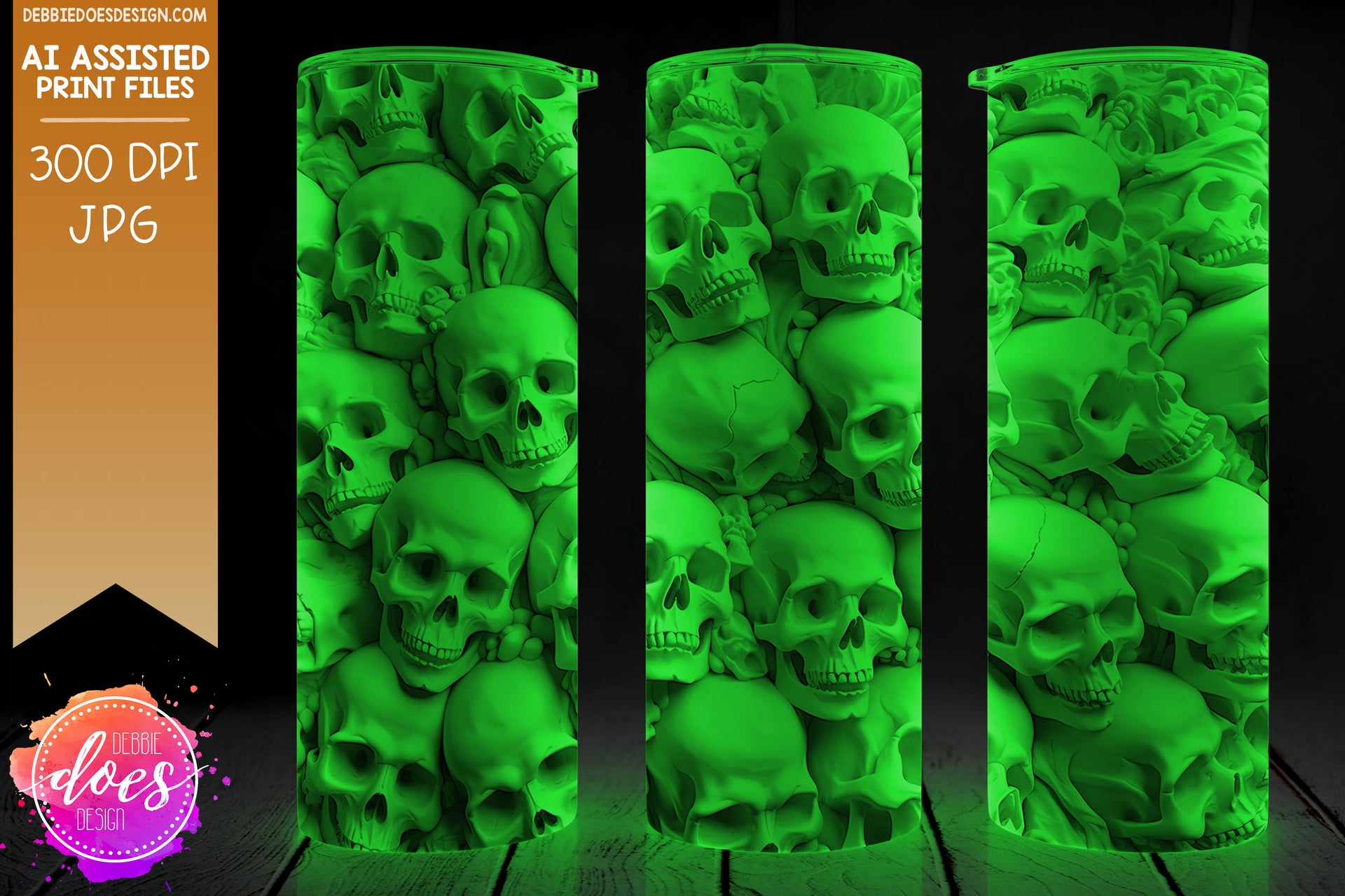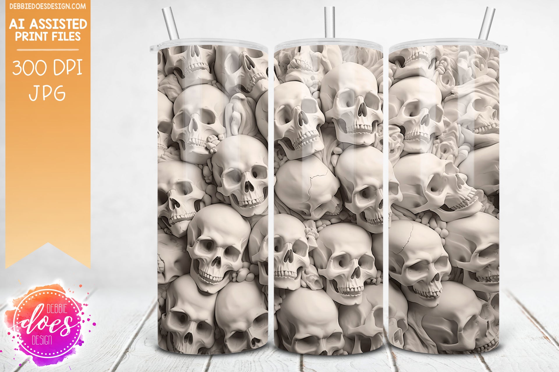 3D Sculpted Clay Pile of Skulls 1 - 3D Tumbler - Printable/Sublimation Design