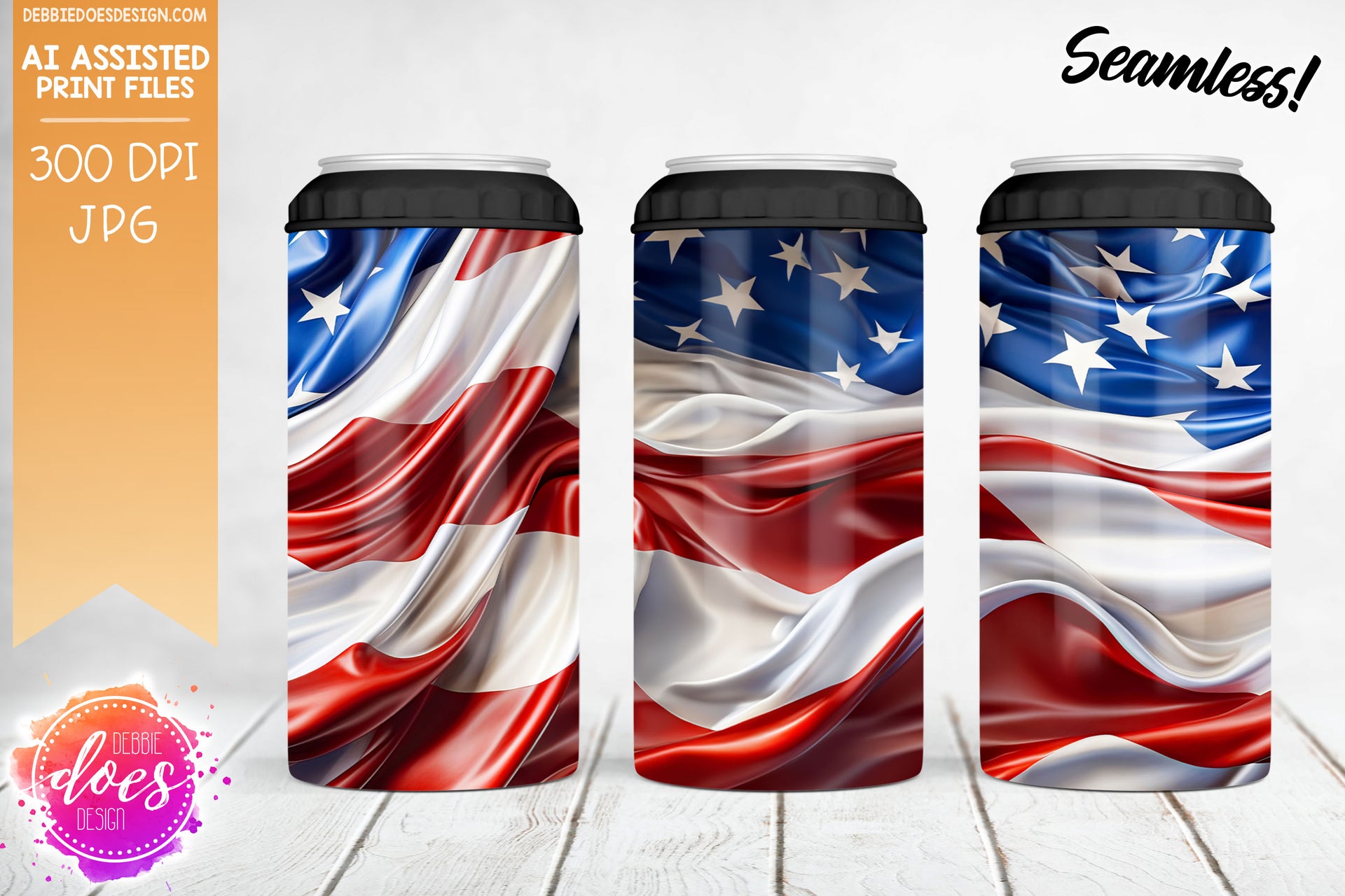 3D US Flag 1 - 4-in-1 Can Cooler - Printable/Sublimation Design