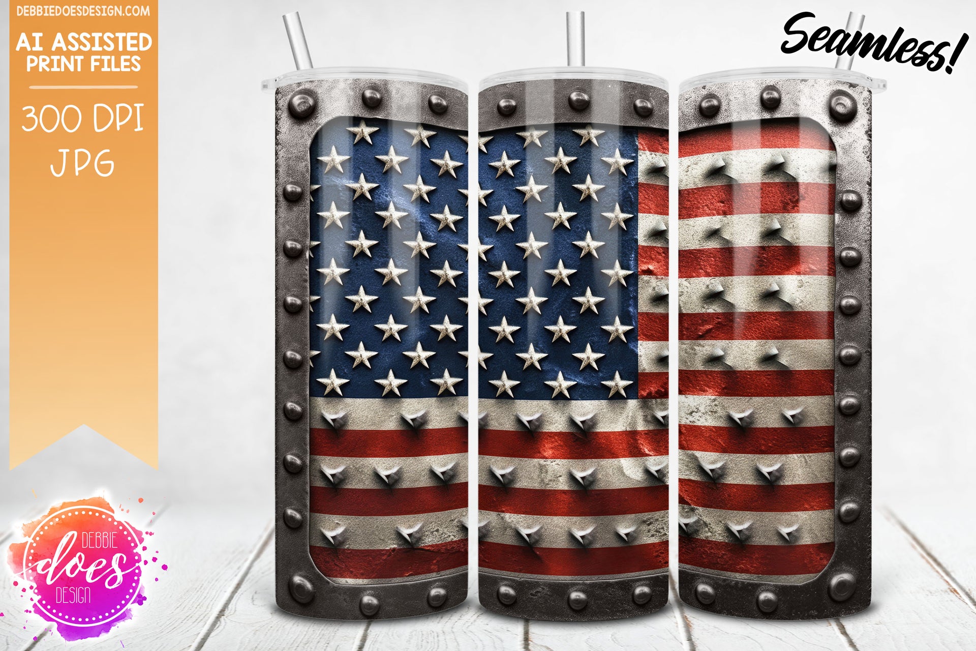 3D US Flag Diamond Plate Metal 2 - Tumbler - Printable/Sublimation Design