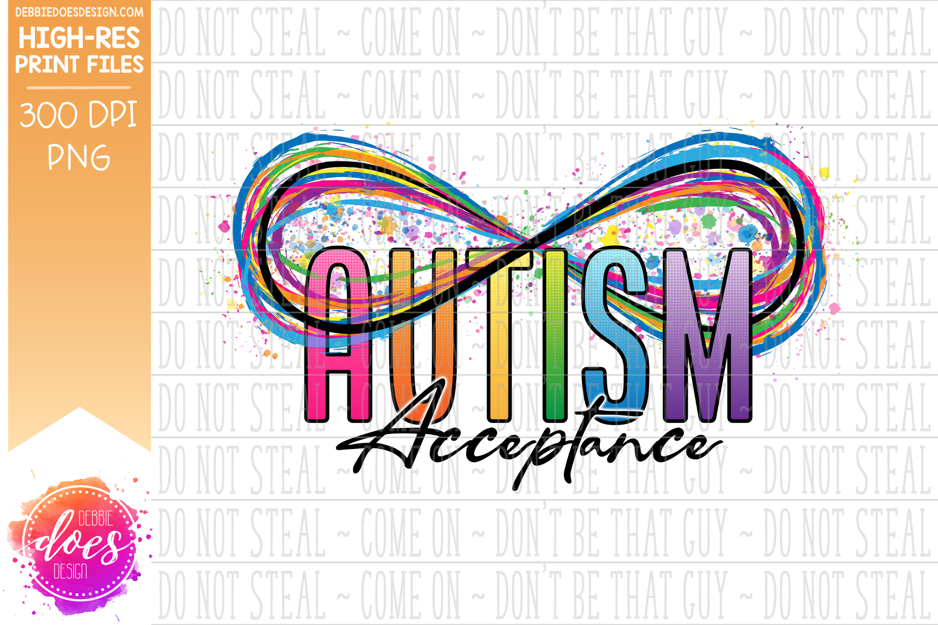 Acceptance - Autism Infinity Rainbow Splatter - Pink - Sublimation/Printable Design