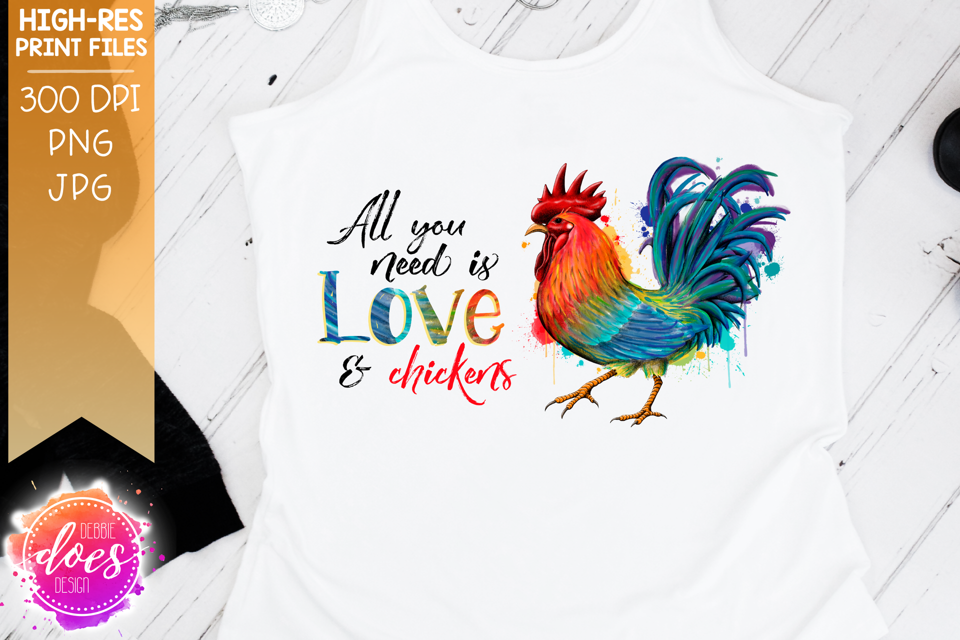 All You Need is Love & Chickens - Horizontal - Rooster/Chicken - Sublimation/Printable Design