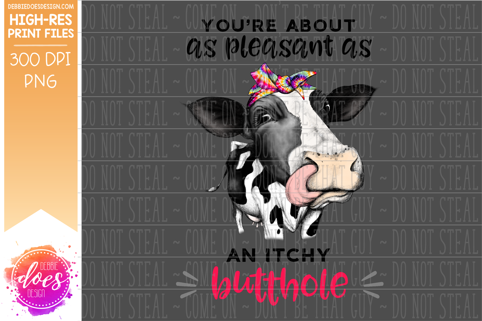 An Itchy Butthole - Tie Dye Bandana - Dairy Cow - Printable/Sublimation File