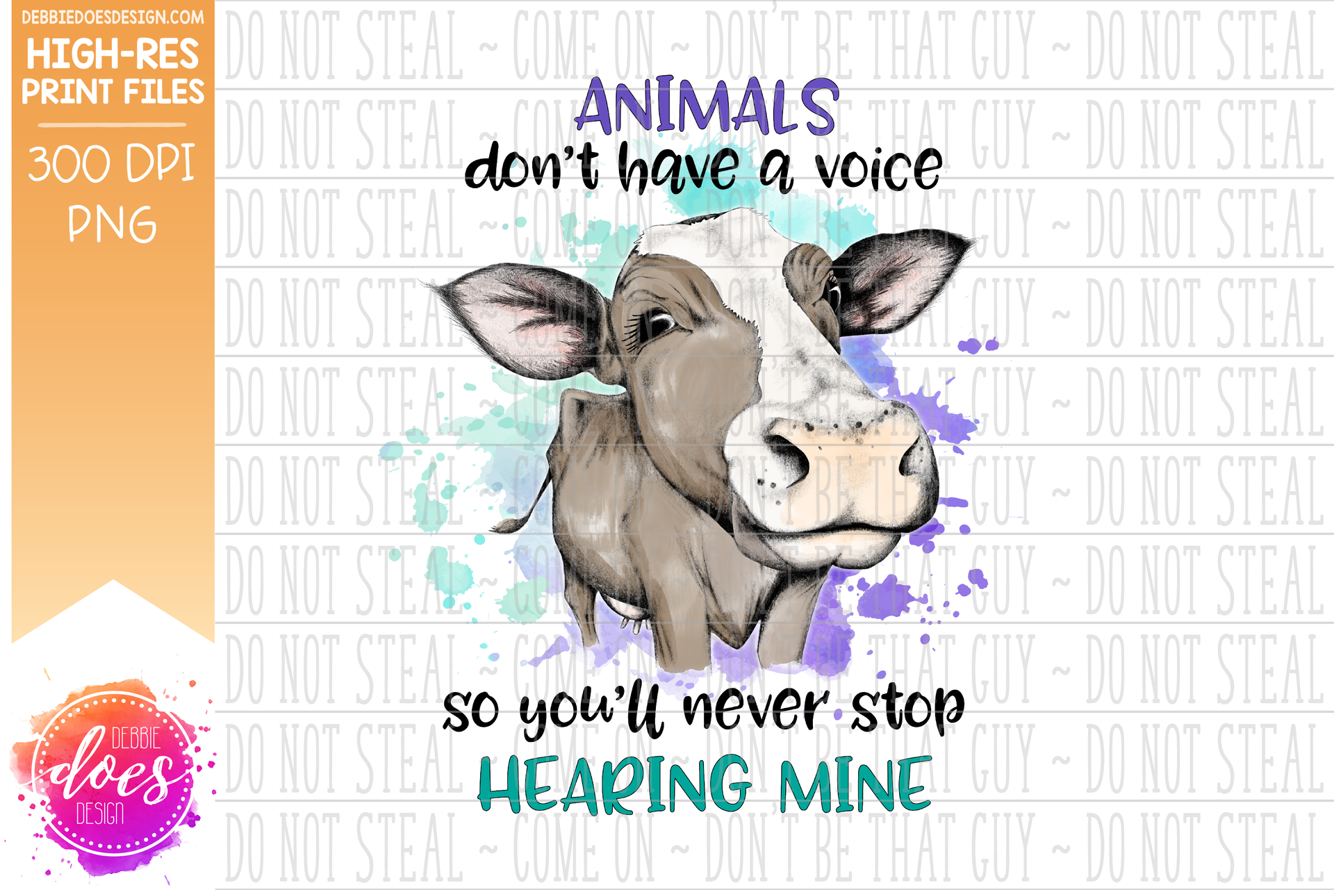 Animals Don't Have a Voice - Mint Purple Cow - Sublimation/Printable Design
