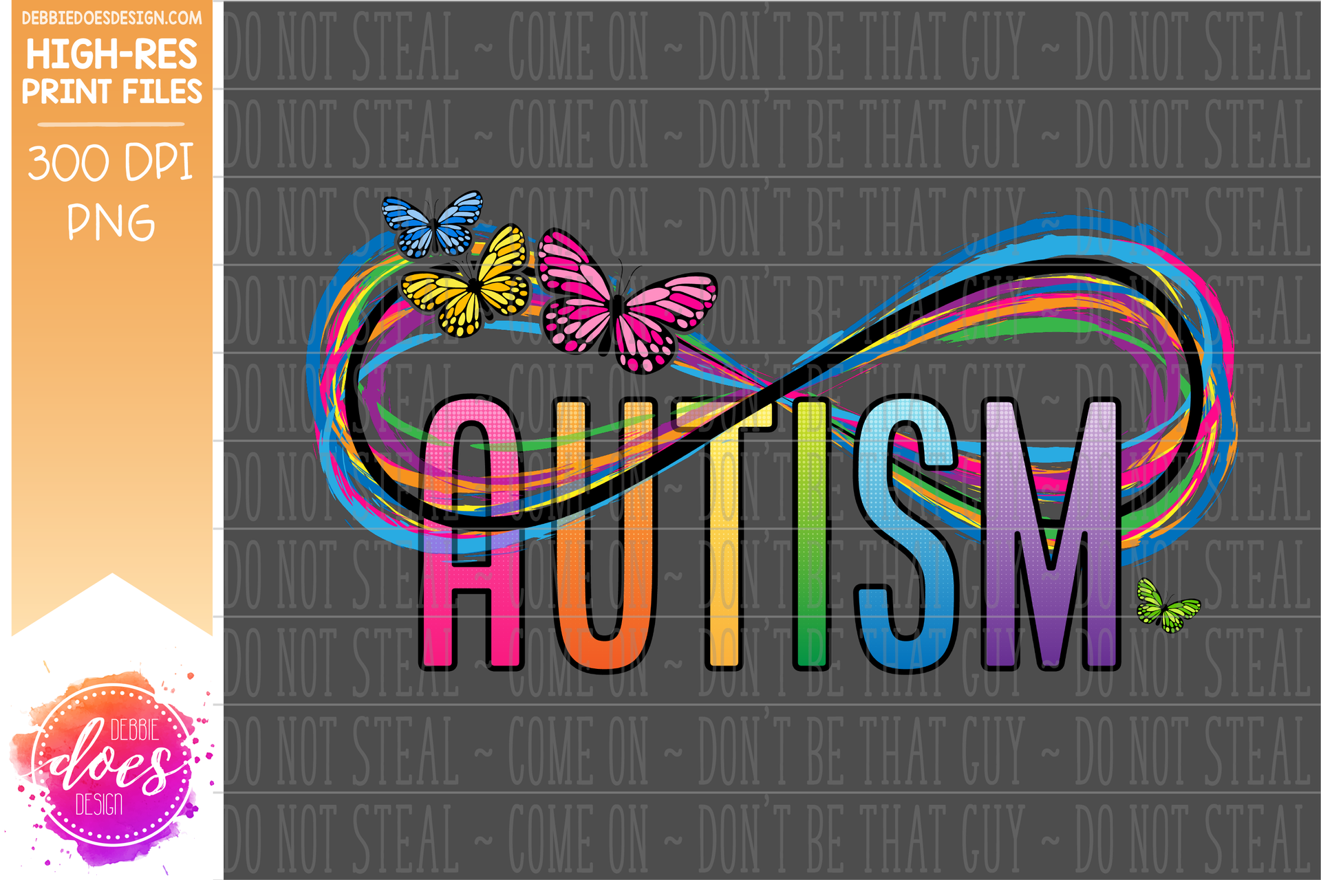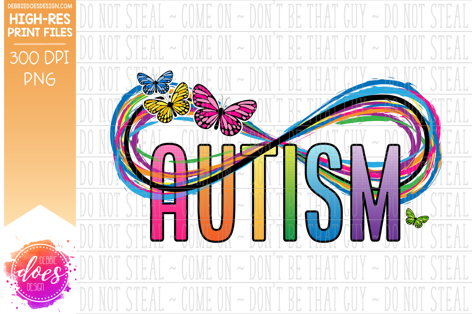 Autism Infinity Rainbow & Butterflies - Pink - Sublimation/Printable Design