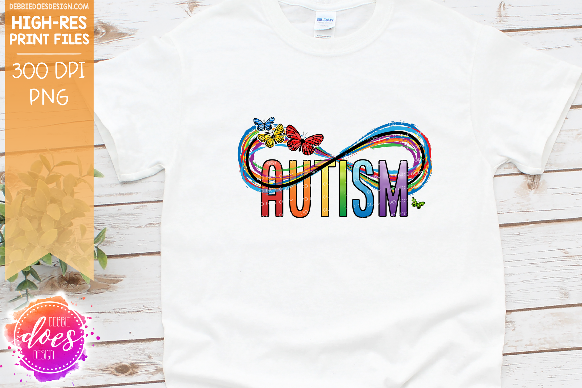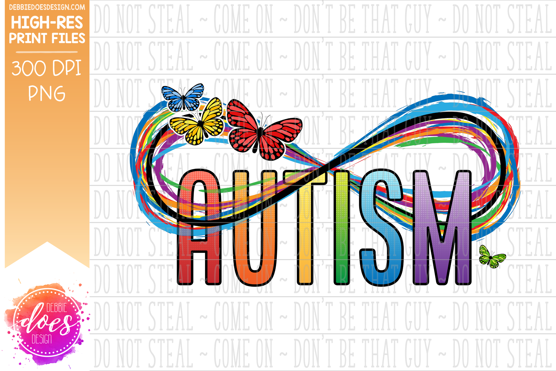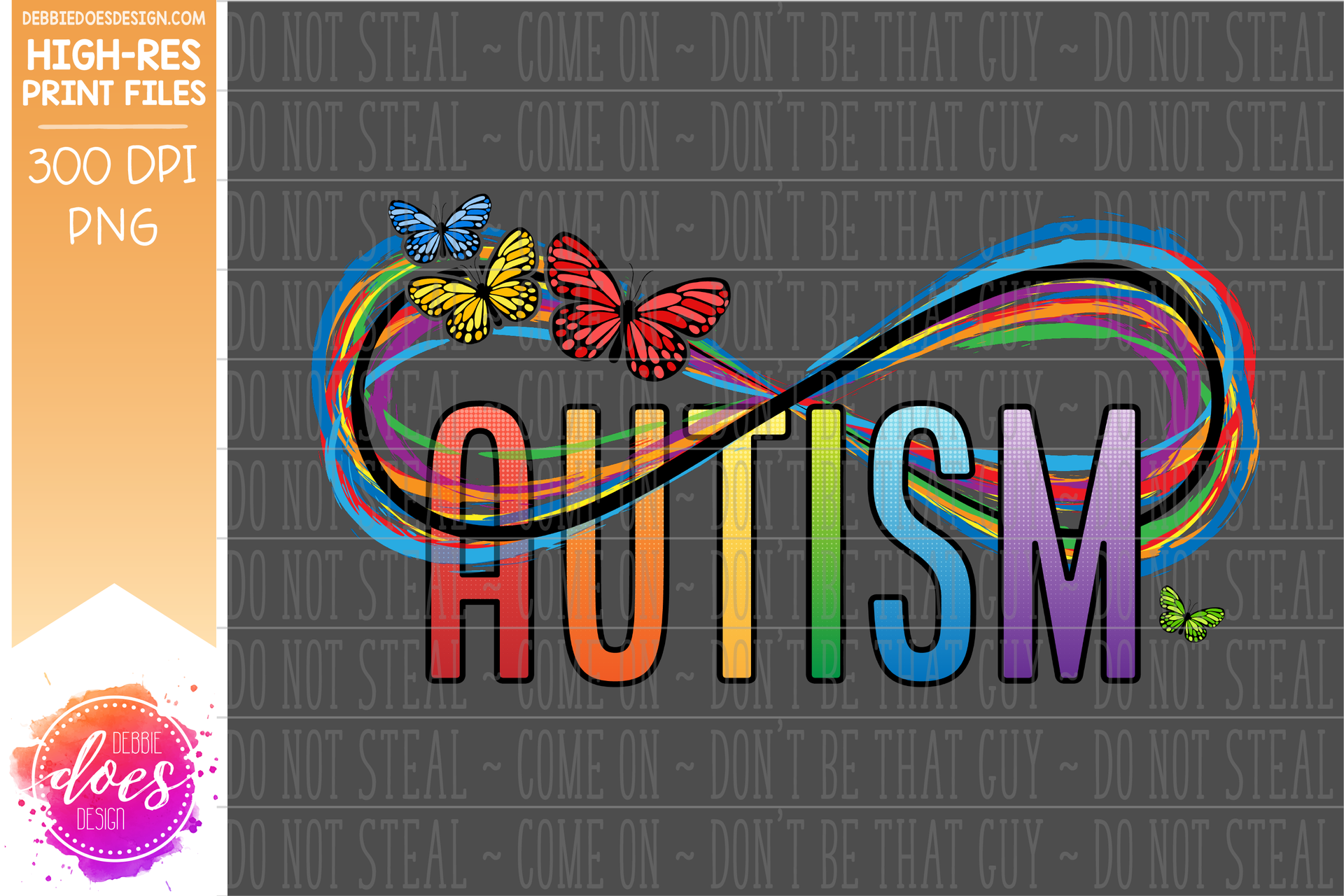 Autism Infinity Rainbow & Butterflies - Red - Sublimation/Printable Design