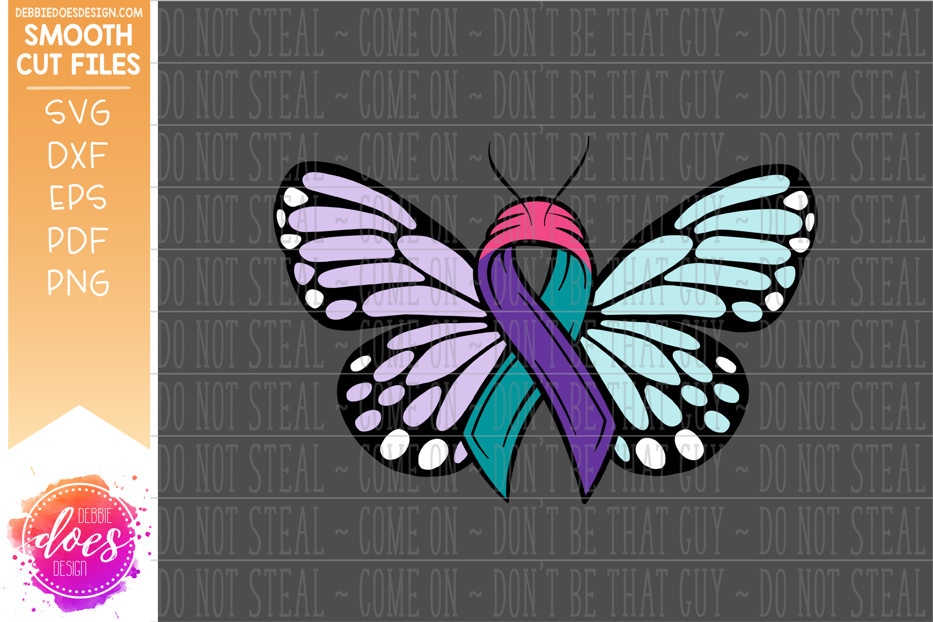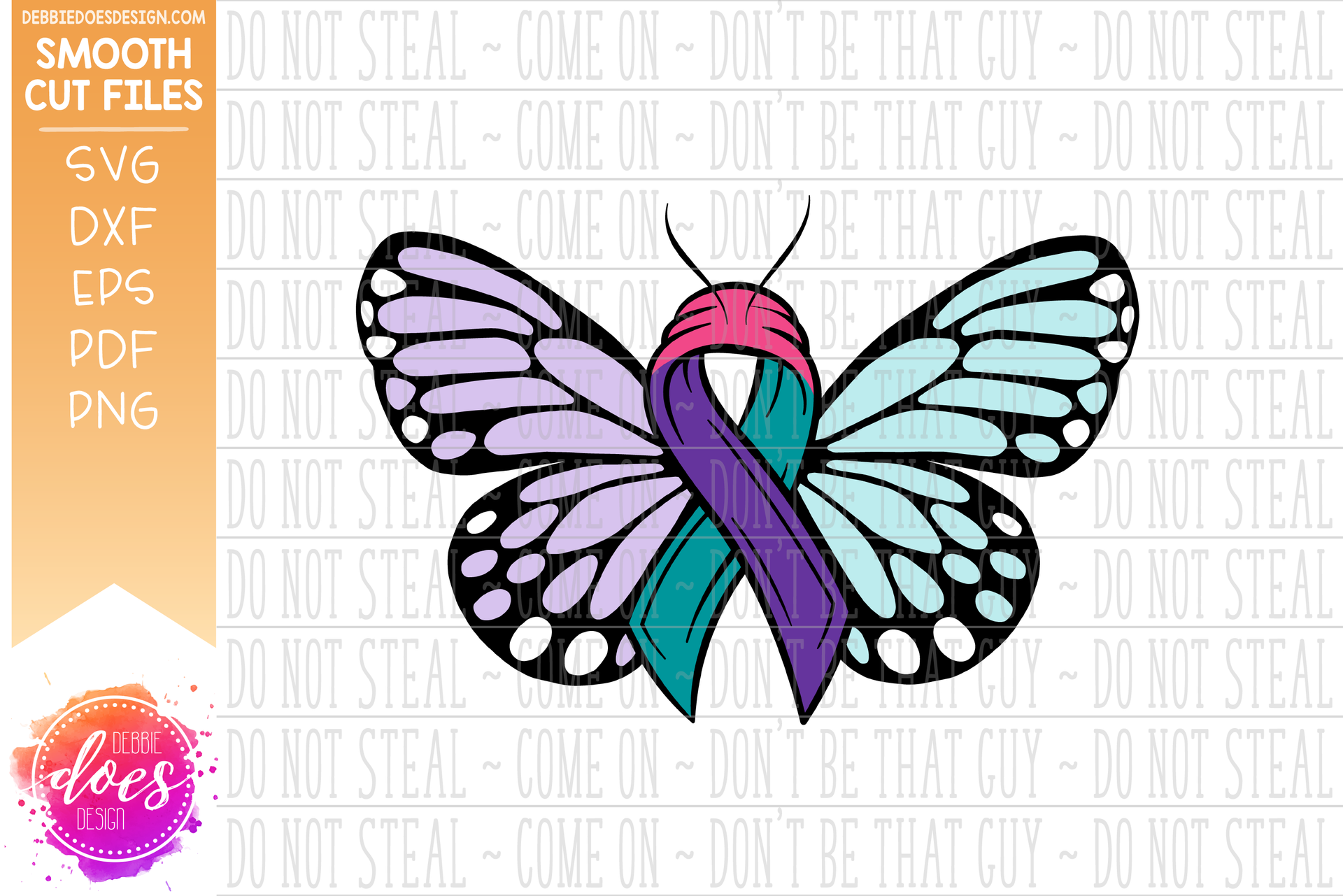 Awareness Ribbon Butterfly - 3 Color - SVG File