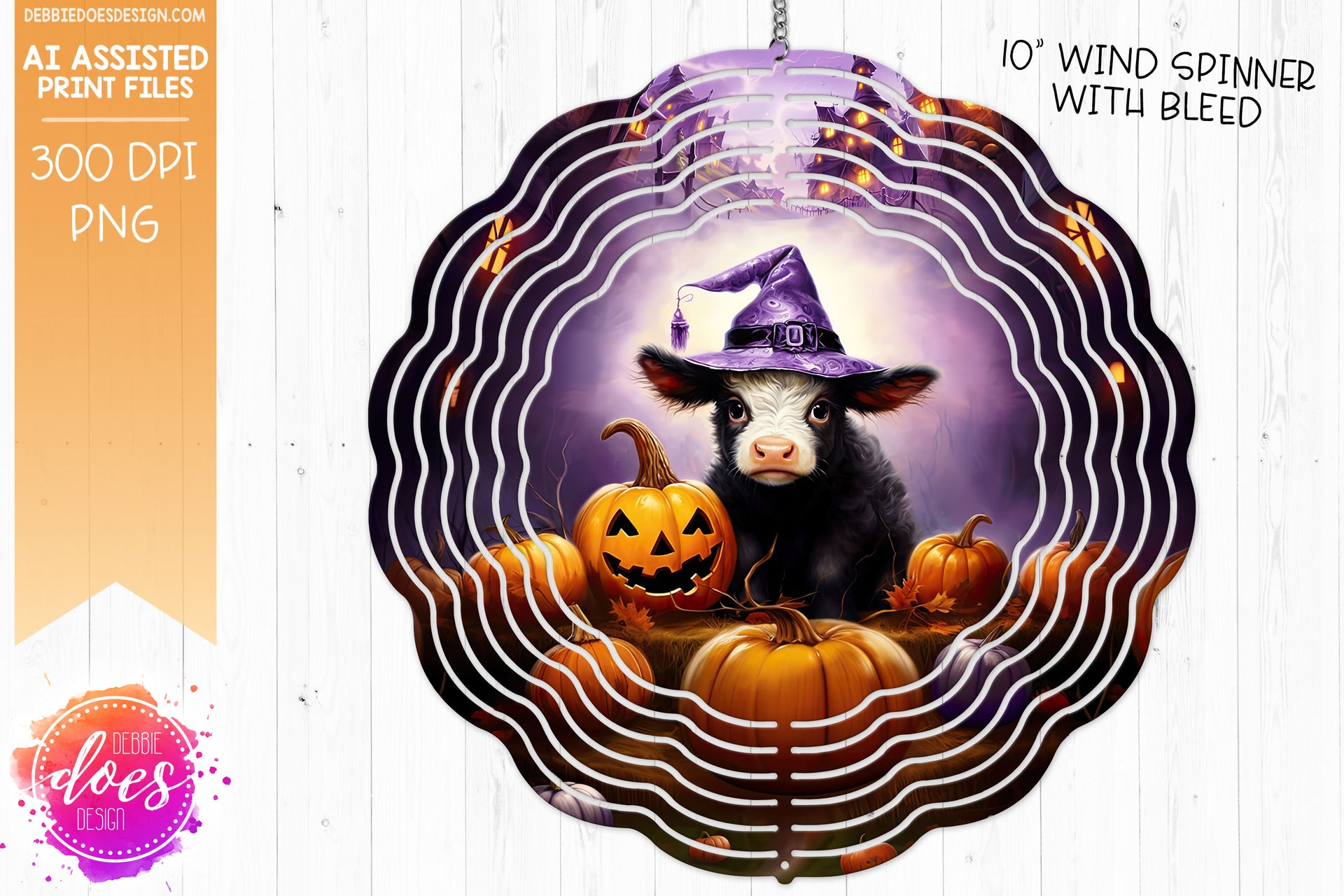 Baby Cow Witch - Wind Spinner - AI Assisted Printable/Sublimation Design