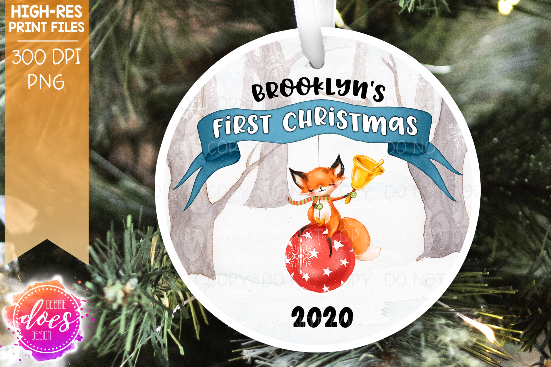 Baby Fox First Christmas - Blank for Name - 4 Colors Included! - Sublimation/Printable Design