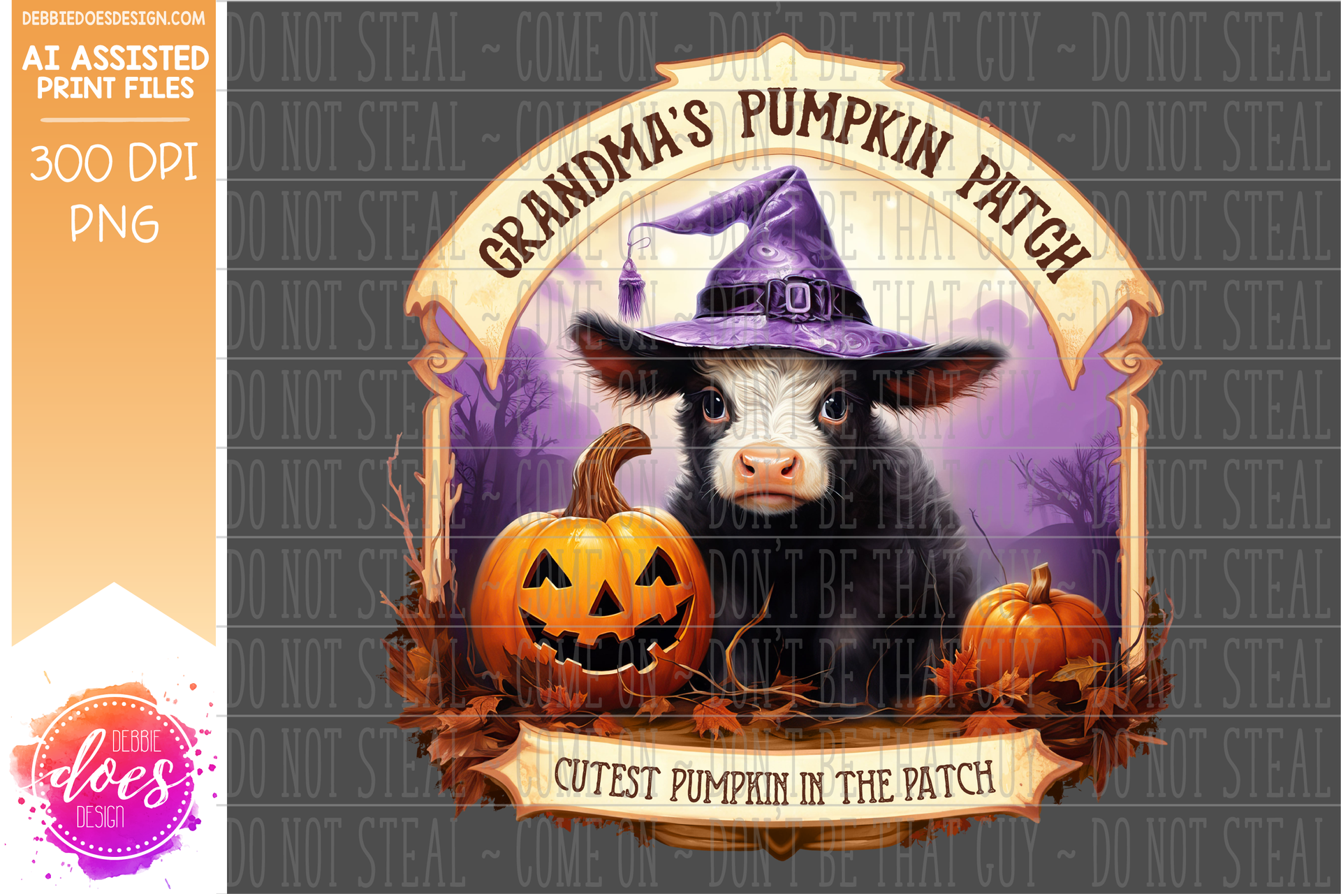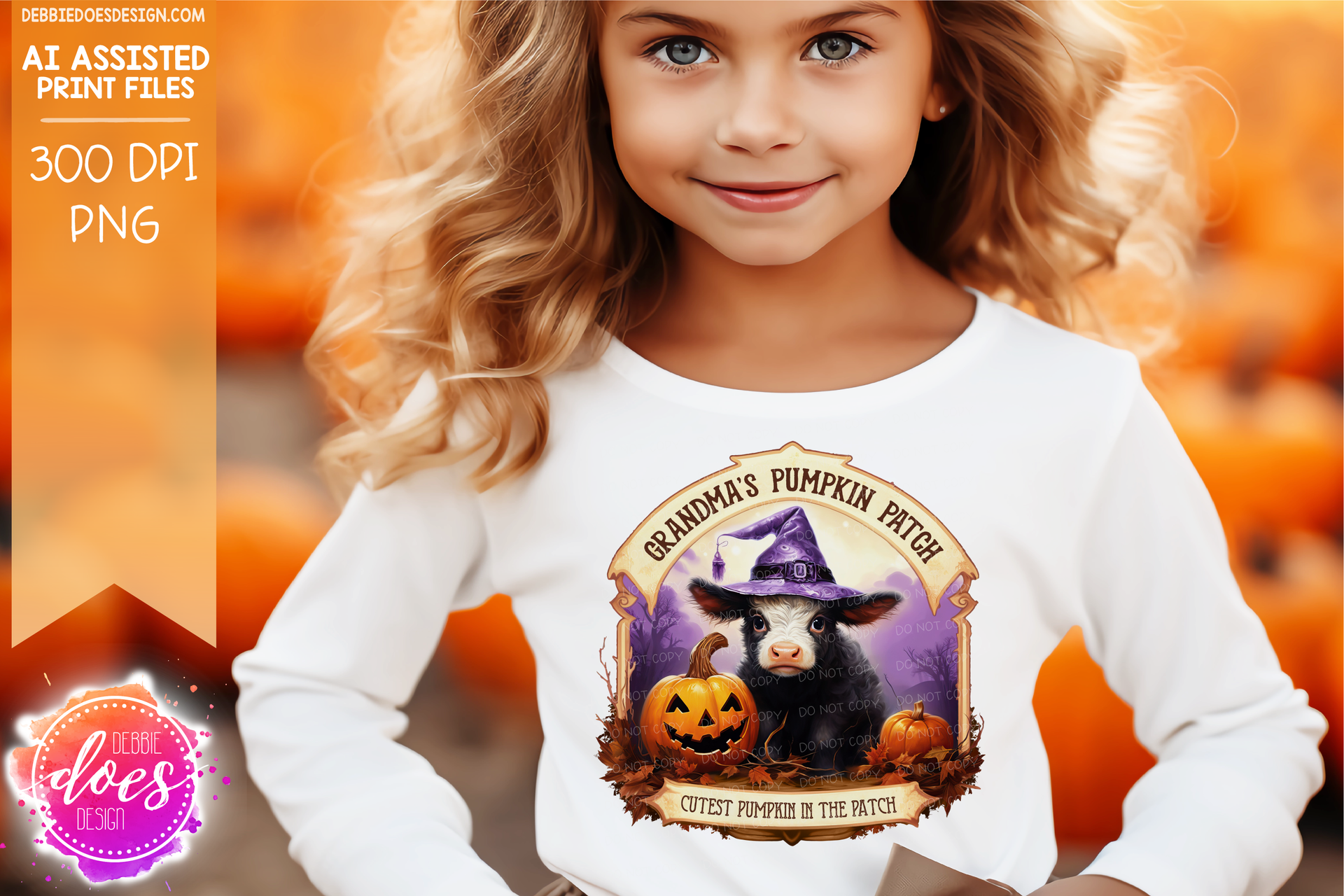 Baby Witch Cow with Banners - Grandmas Patch - Cutest - AI Assisted Printable/Sublimation Design