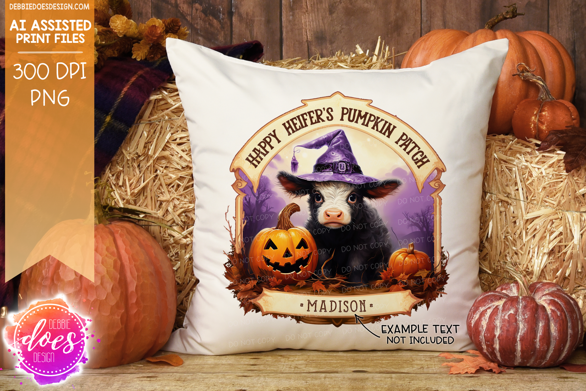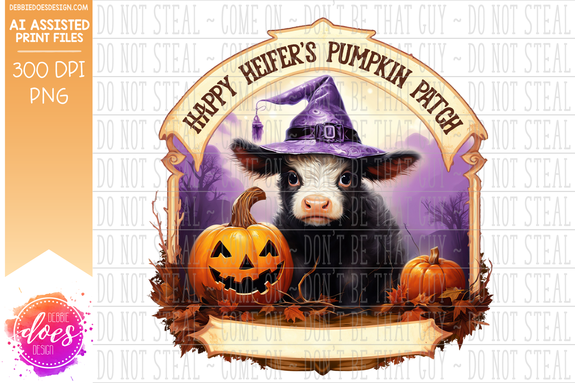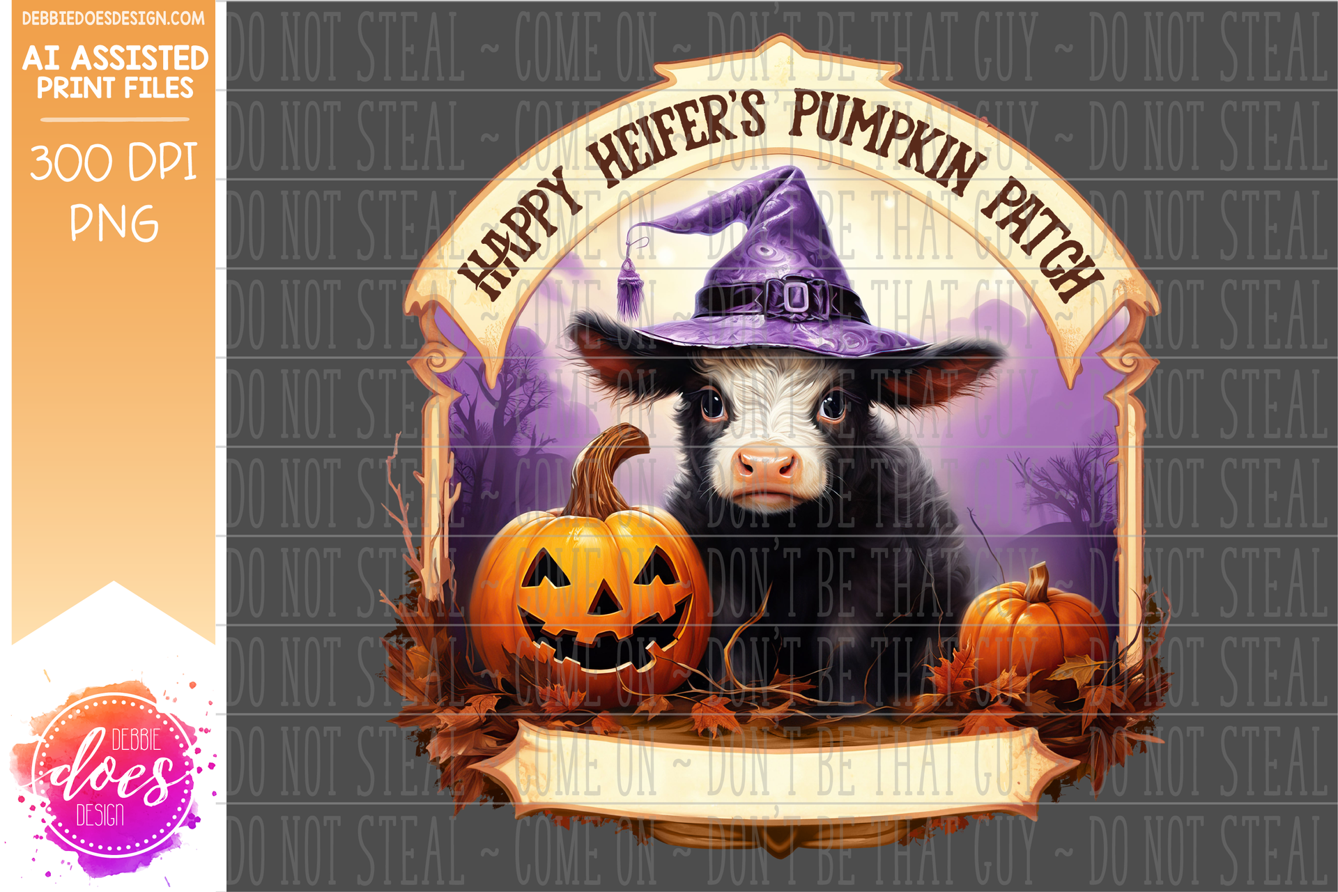 Baby Witch Cow with Banners - Happy Heifers - Blank Banners - Printable/Sublimation Design