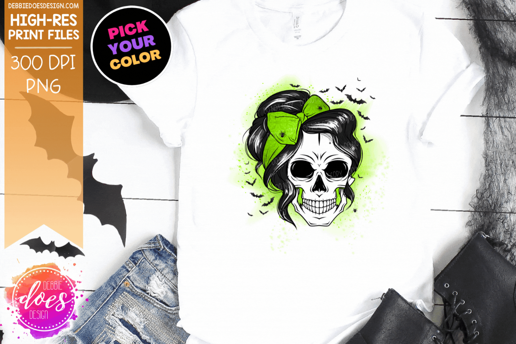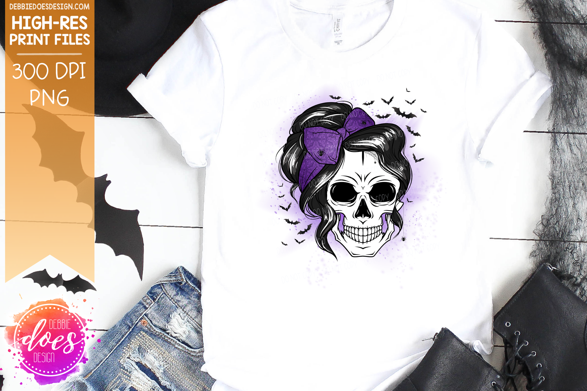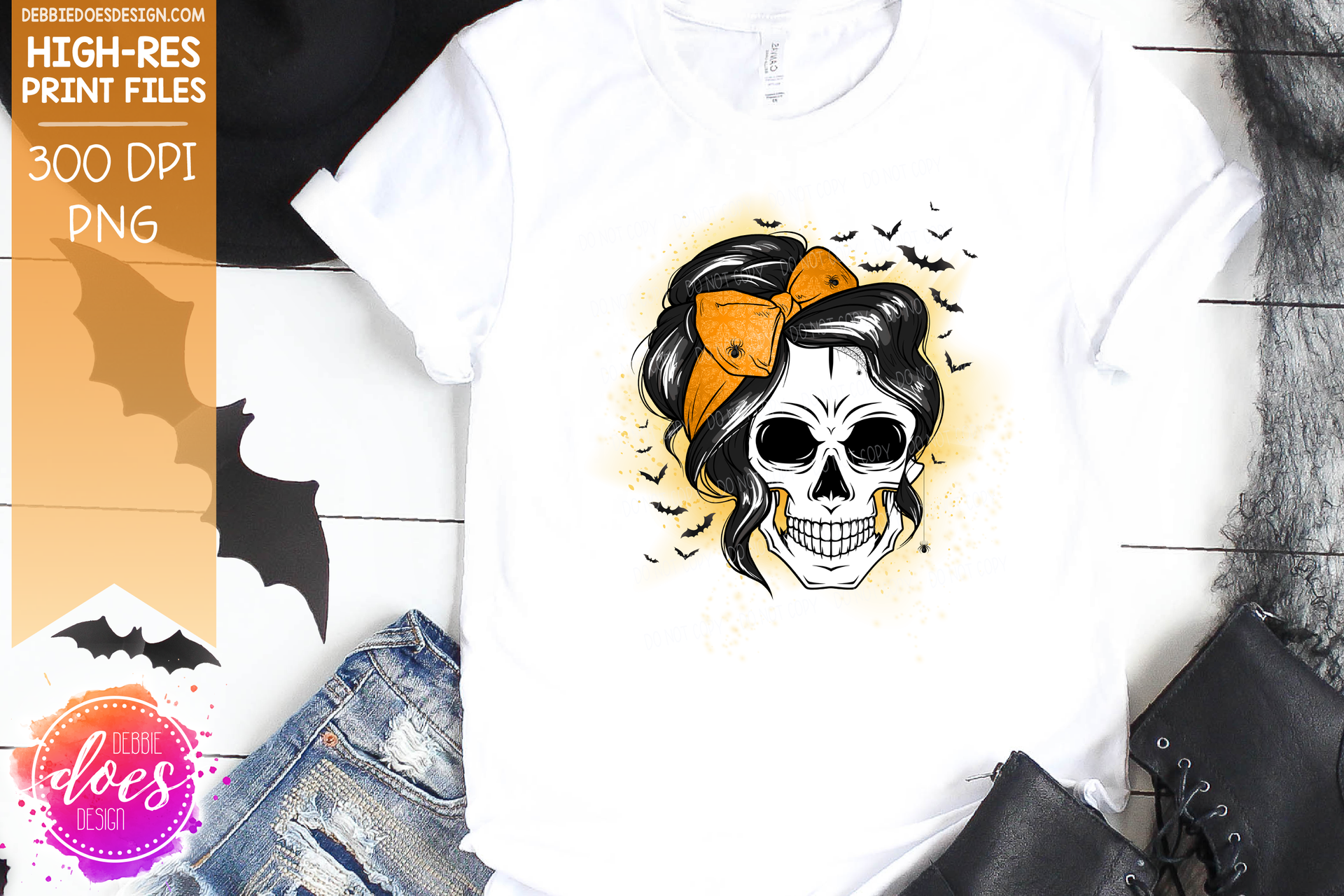 Bats & Spiders Messy Bun Skull - Choose your Color - Sublimation/Printable Design