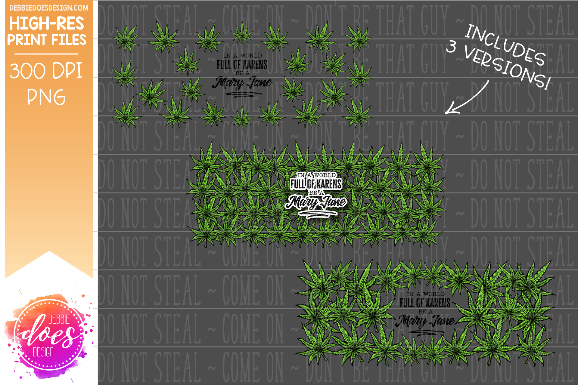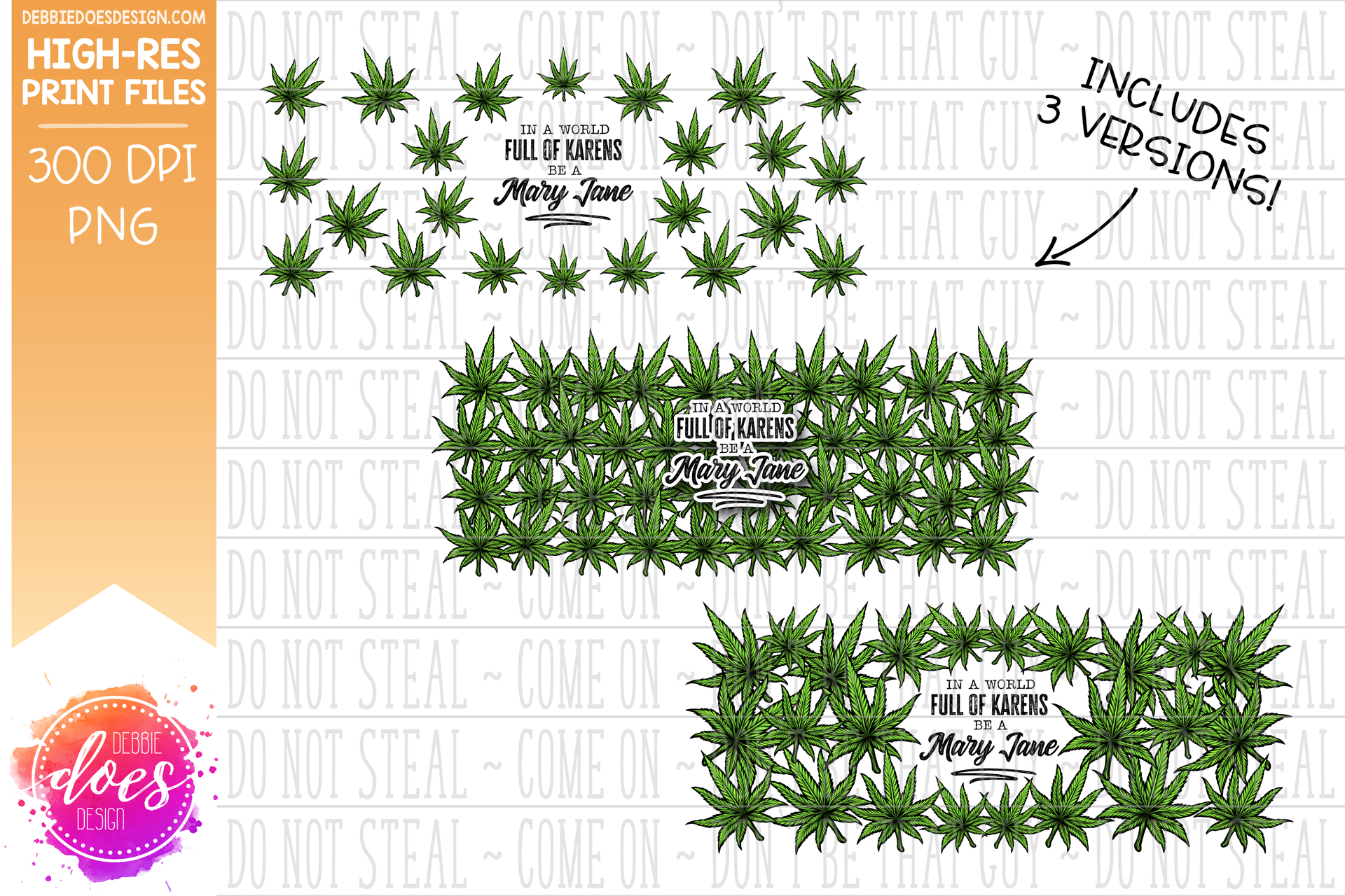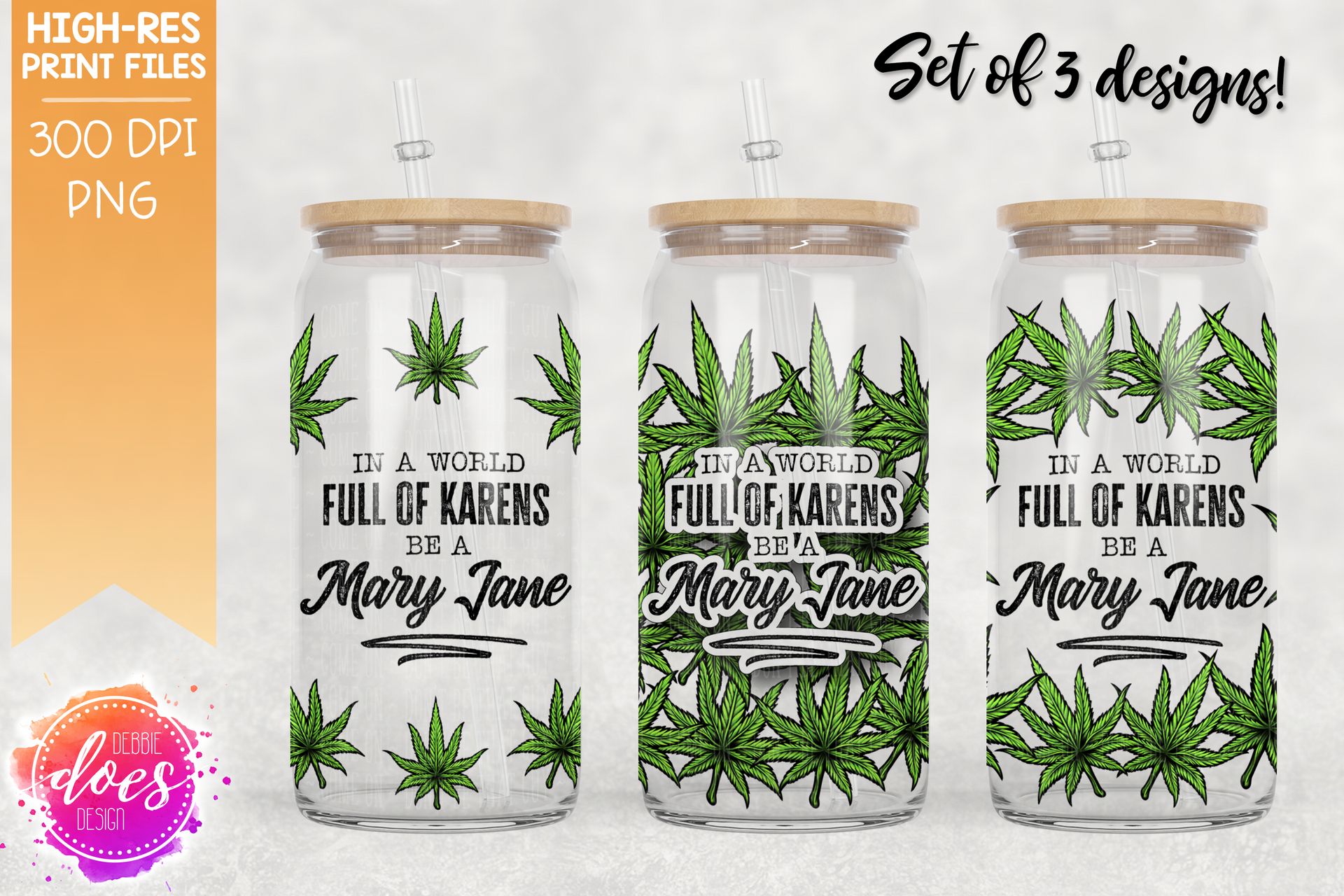 Be a Mary Jane - Pot Leaf Print Glass Can Tumbler Designs (Green) - Set of 3 - Sublimation/Printable Designs