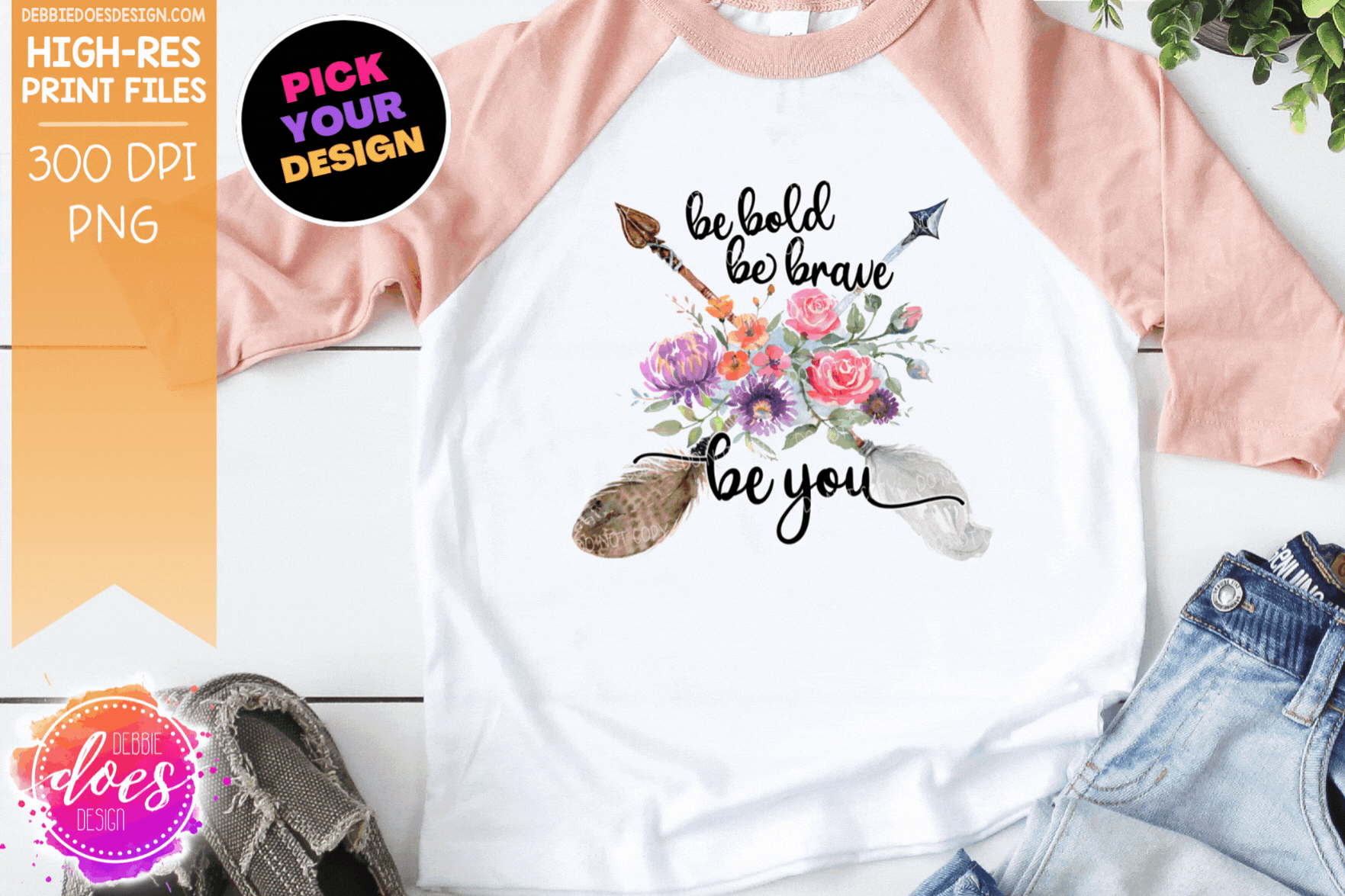 Be Bold Be Brave Be You - Boho Floral Arrows - Choose your Design Layout - Sublimation/Printable Design