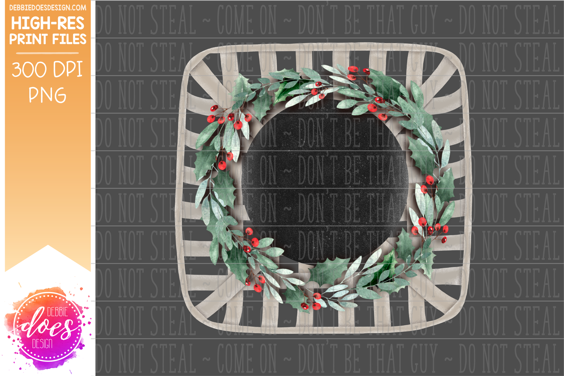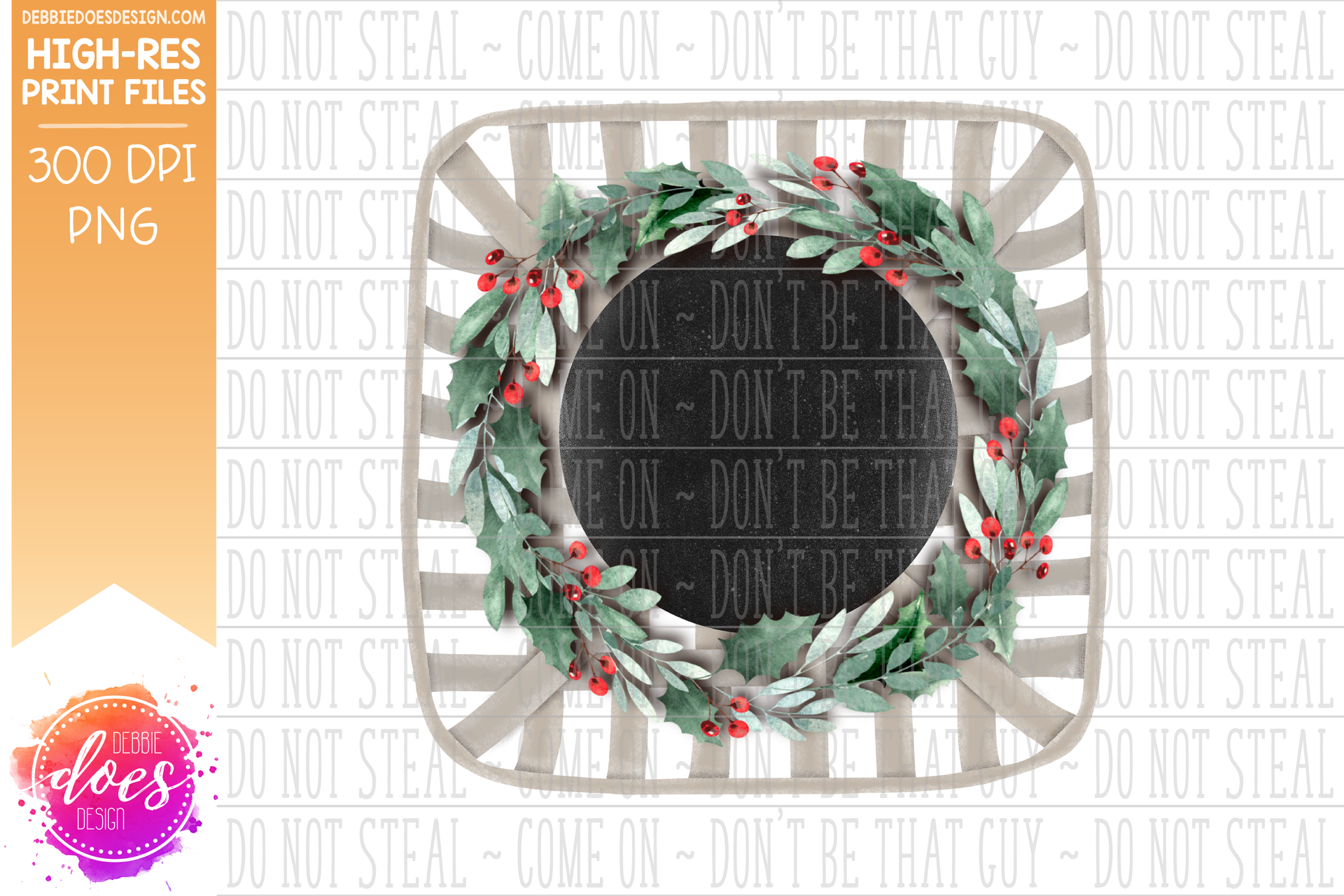 Blank Christmas Chalkboard Wreath Tobacco Basket - Sublimation/Printable Design