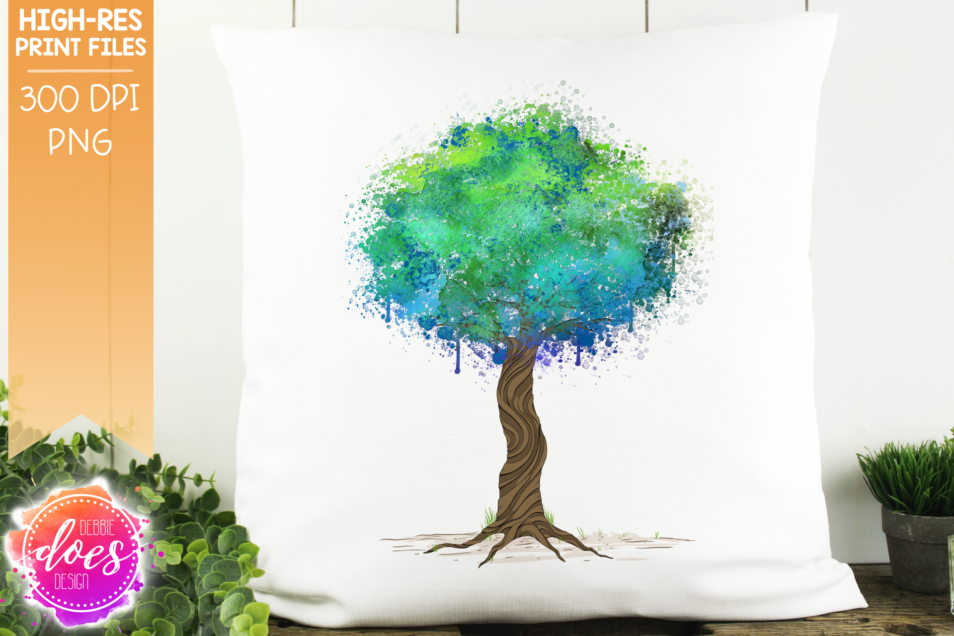 Blue/Green Paint Splatter Tree - Sublimation/Printable Design