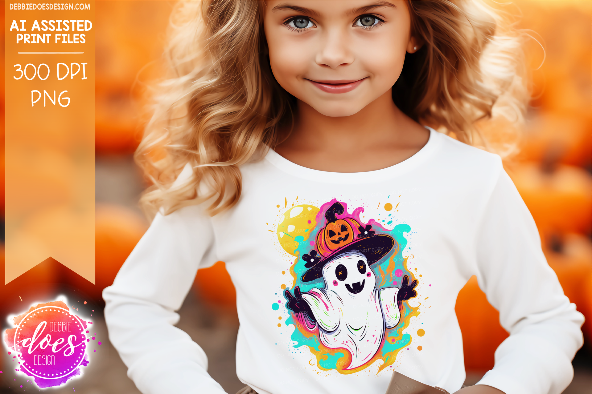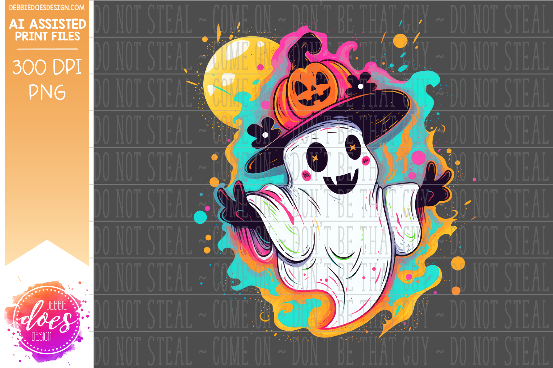 Bold Retro Hippie Ghost - AI Assisted Printable/Sublimation Design