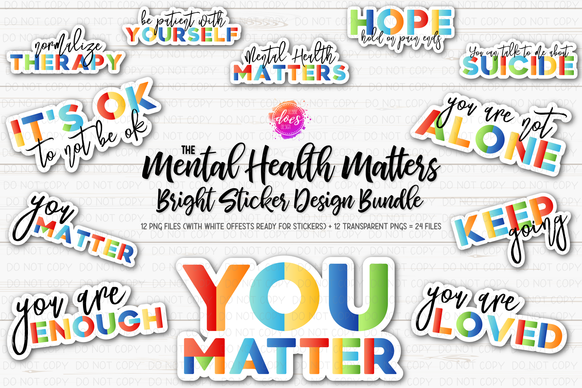 Bright Mental Health Sticker Design Set - Suicide Prevention - Printable Sticker Designs