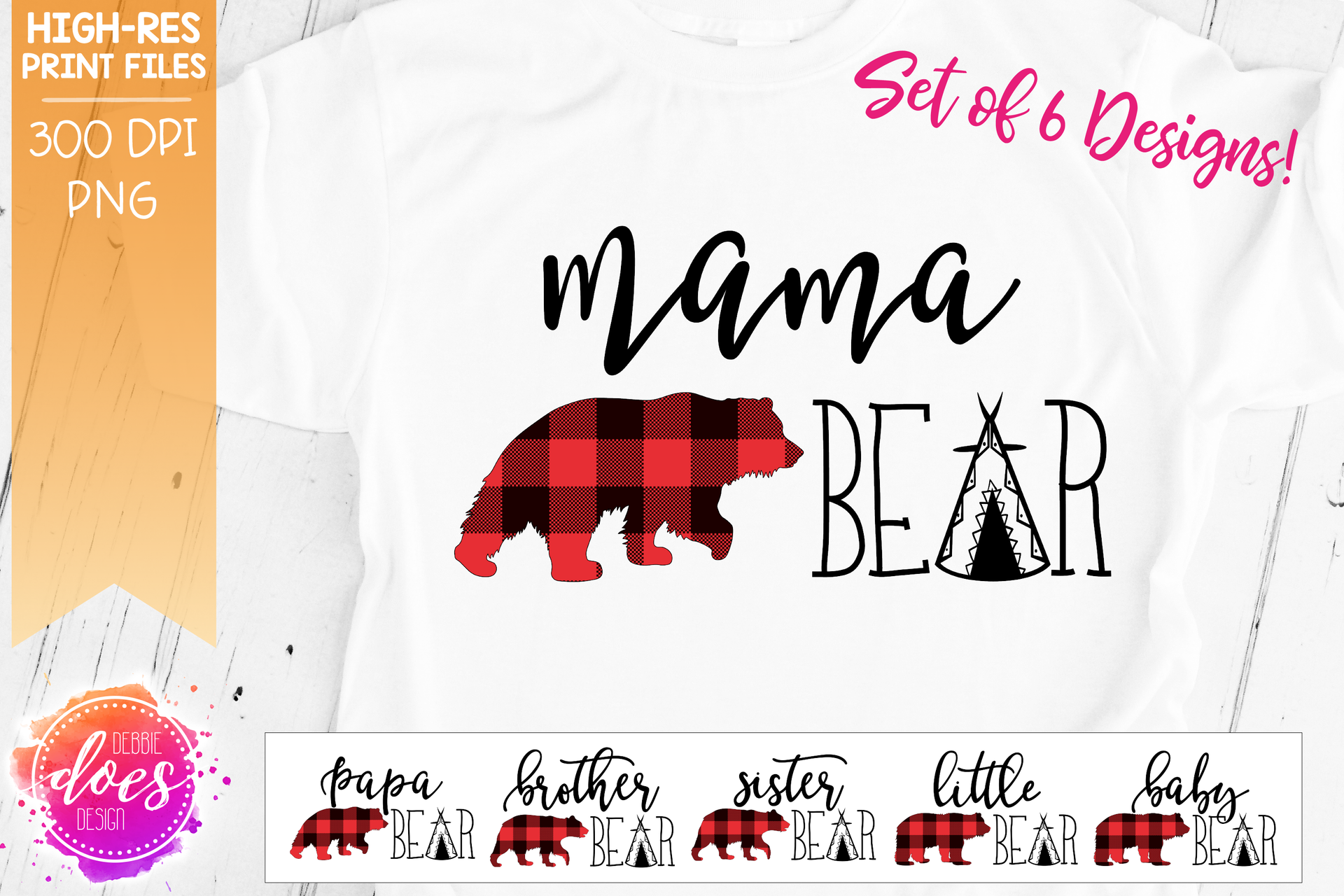 Buffalo Plaid Bear Family Bundle - Bear with TeePee - Sublimation/Printable Design