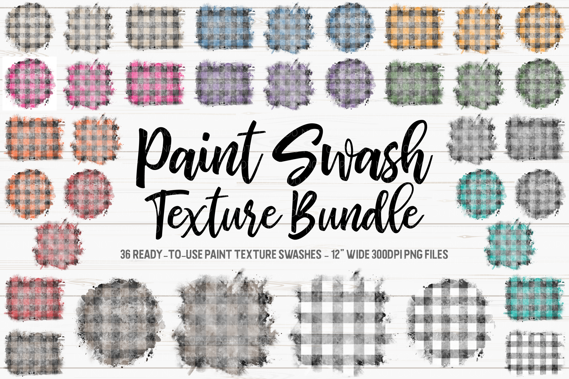 Buffalo Plaid Paint Swash Texture Bundle - 36 PNG Files! - Design Elements