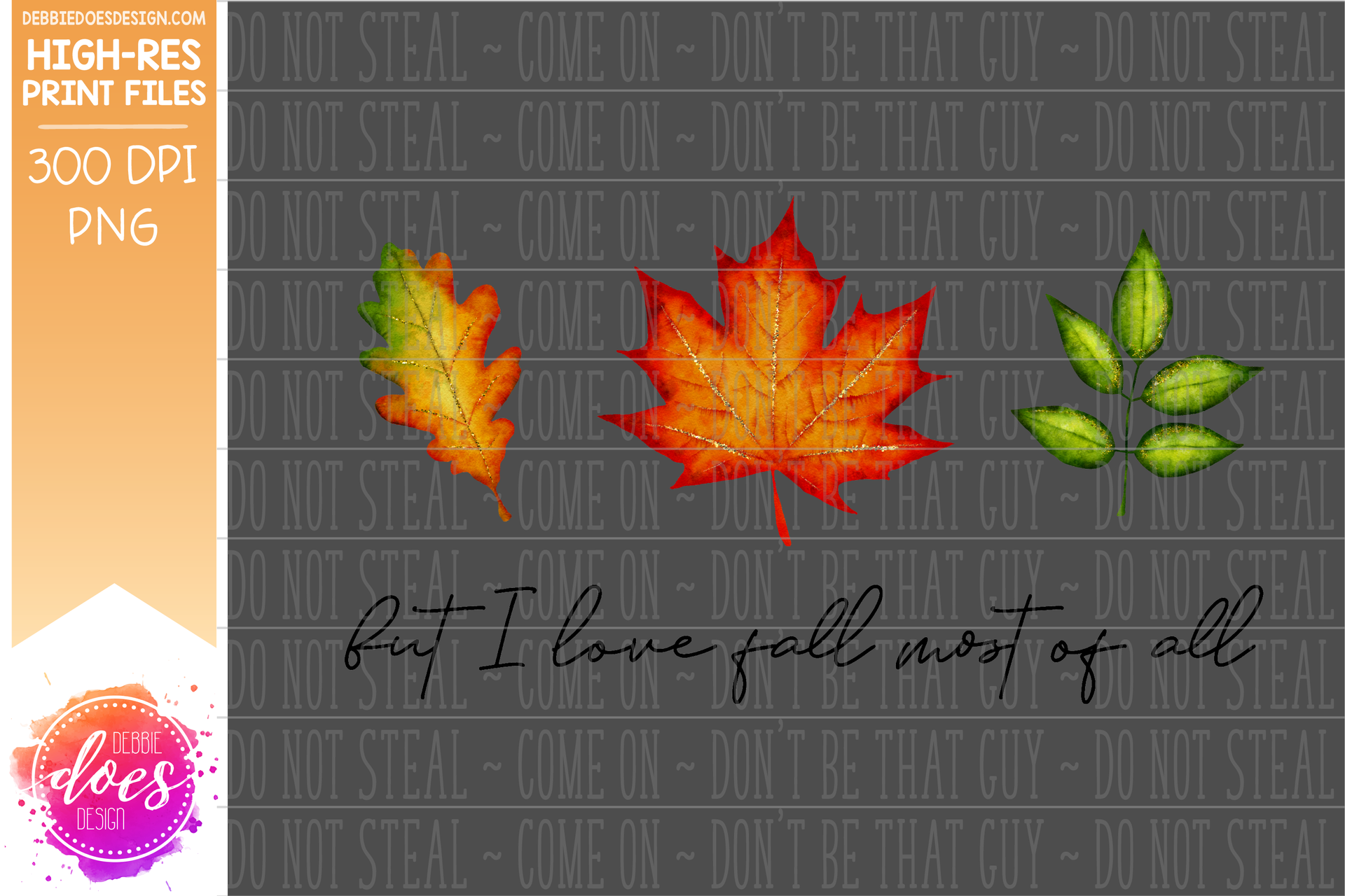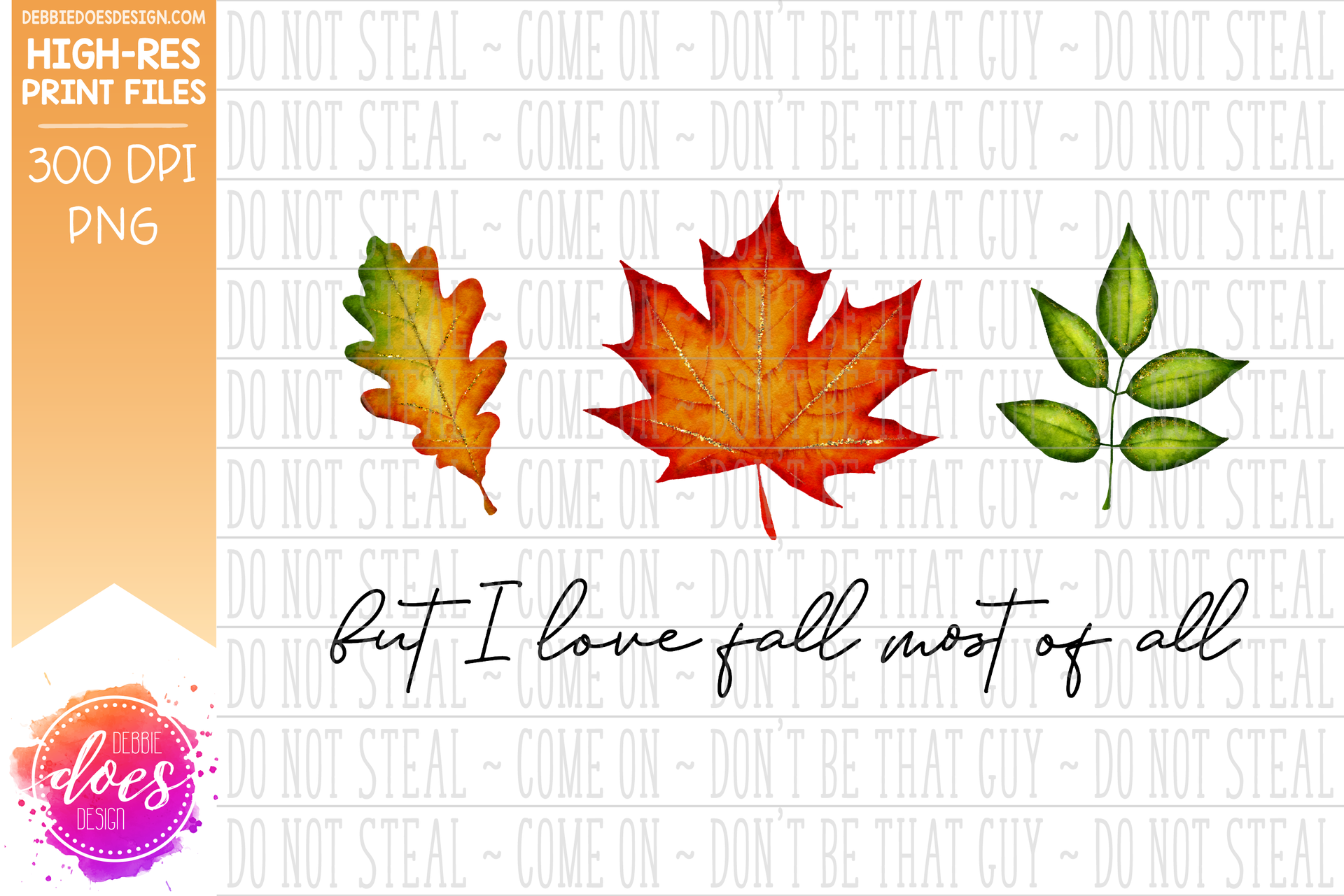 But I Love Fall Most of All - Watercolor Leaves - Sublimation/Printable Design
