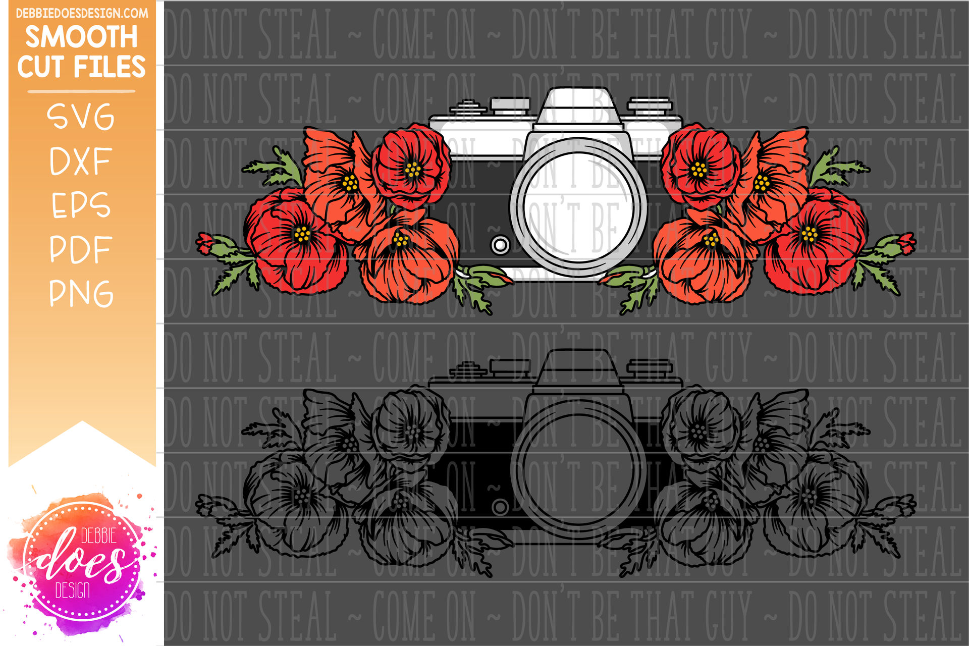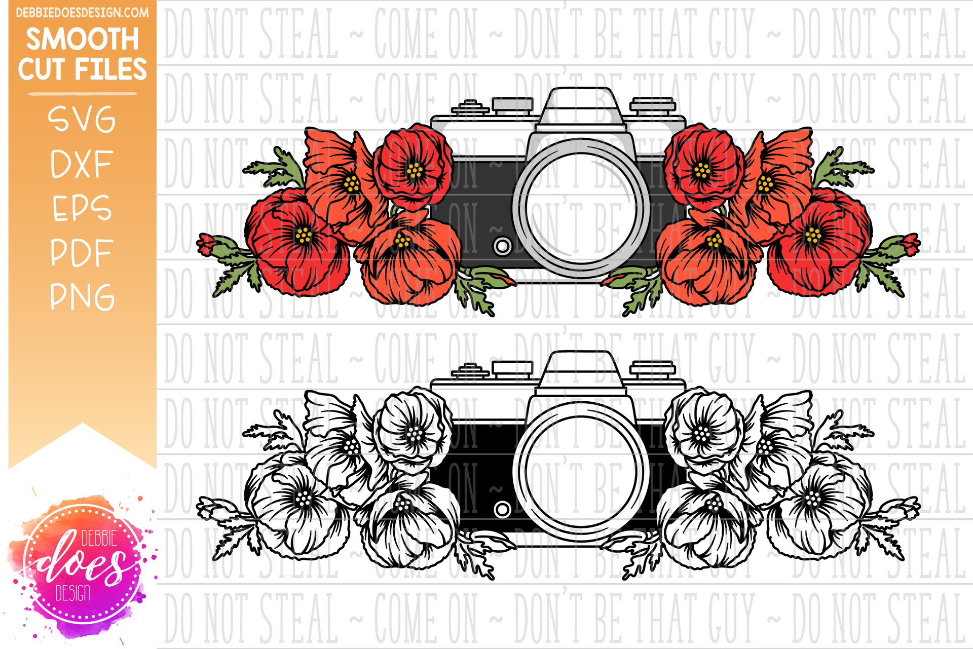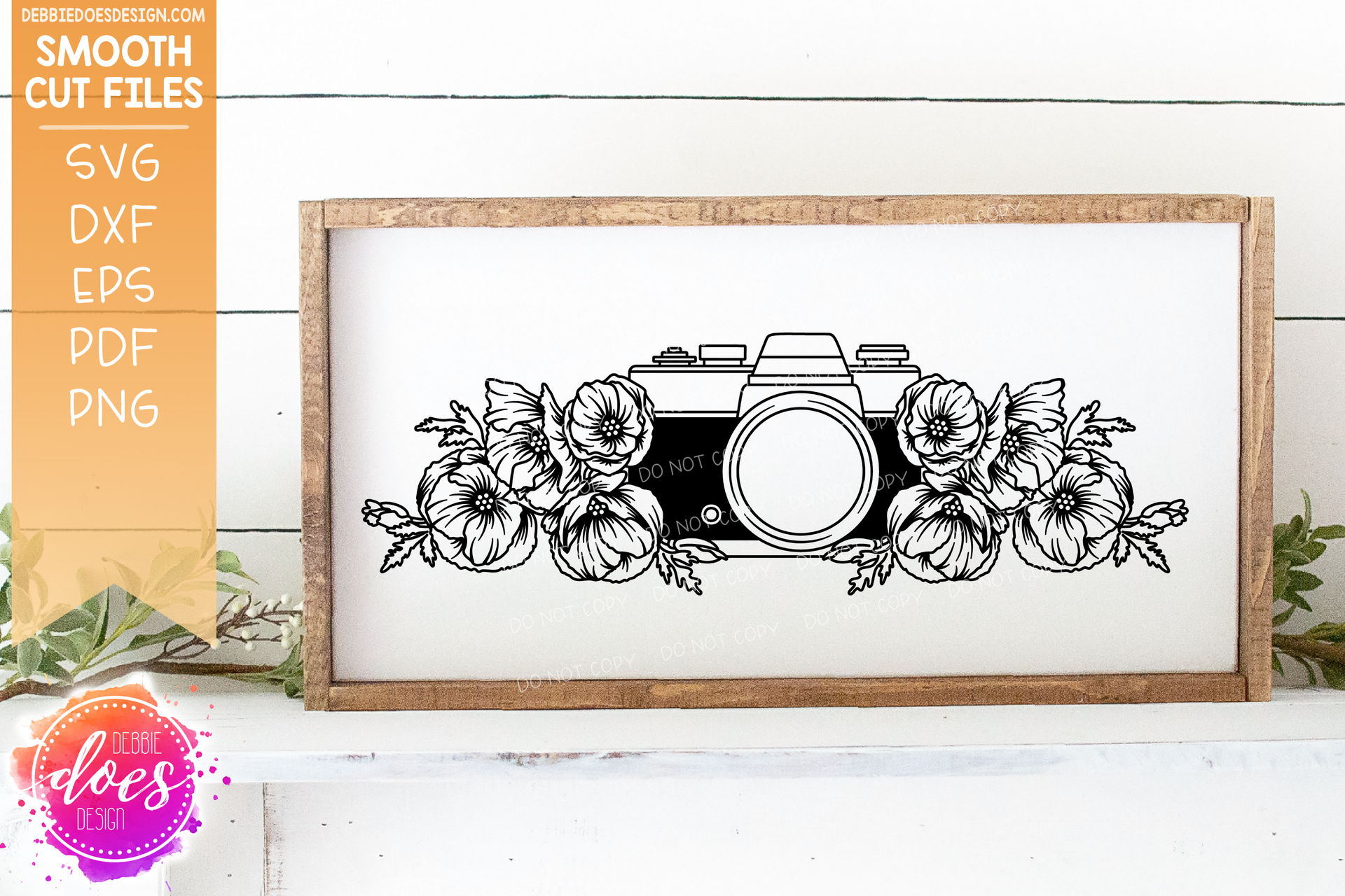 Camera with Flowers Arrangement 1 - Includes 2 Versions! - SVG Files
