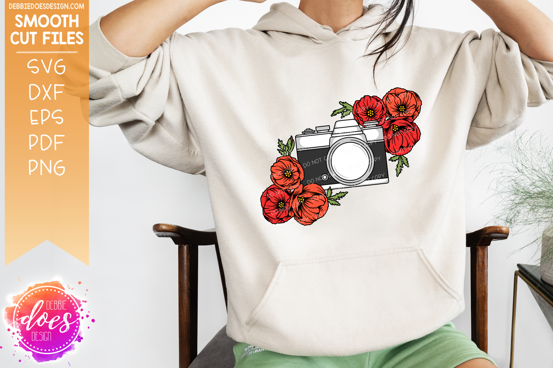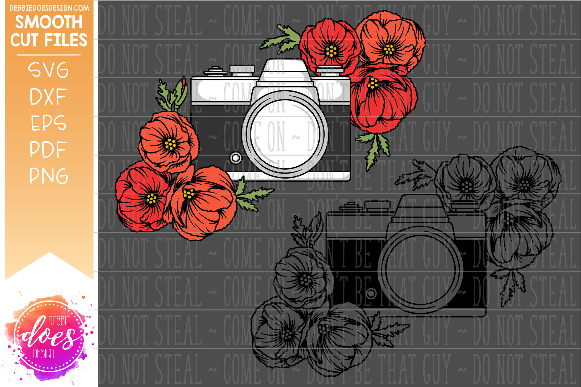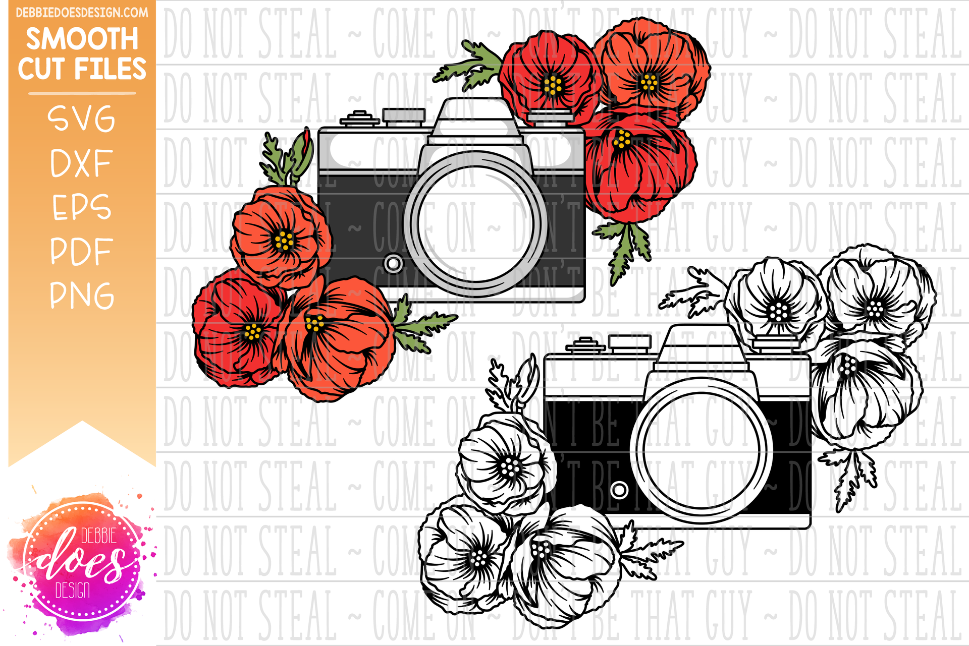 Camera with Flowers Arrangement 3 - Includes 2 Versions! - SVG Files