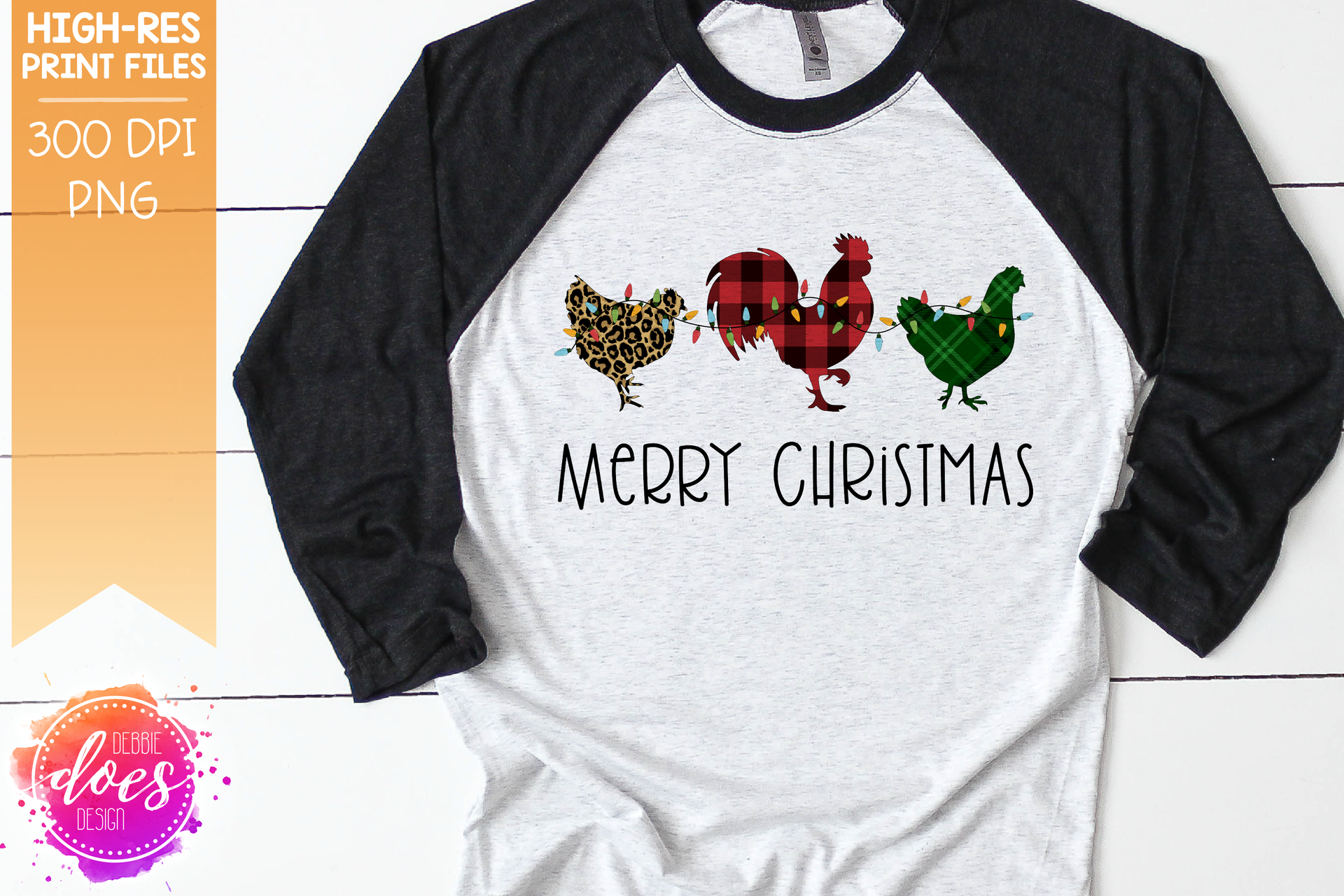 Christmas Leopard Plaid Chickens Applique With Lights - Sublimation/Printable Design