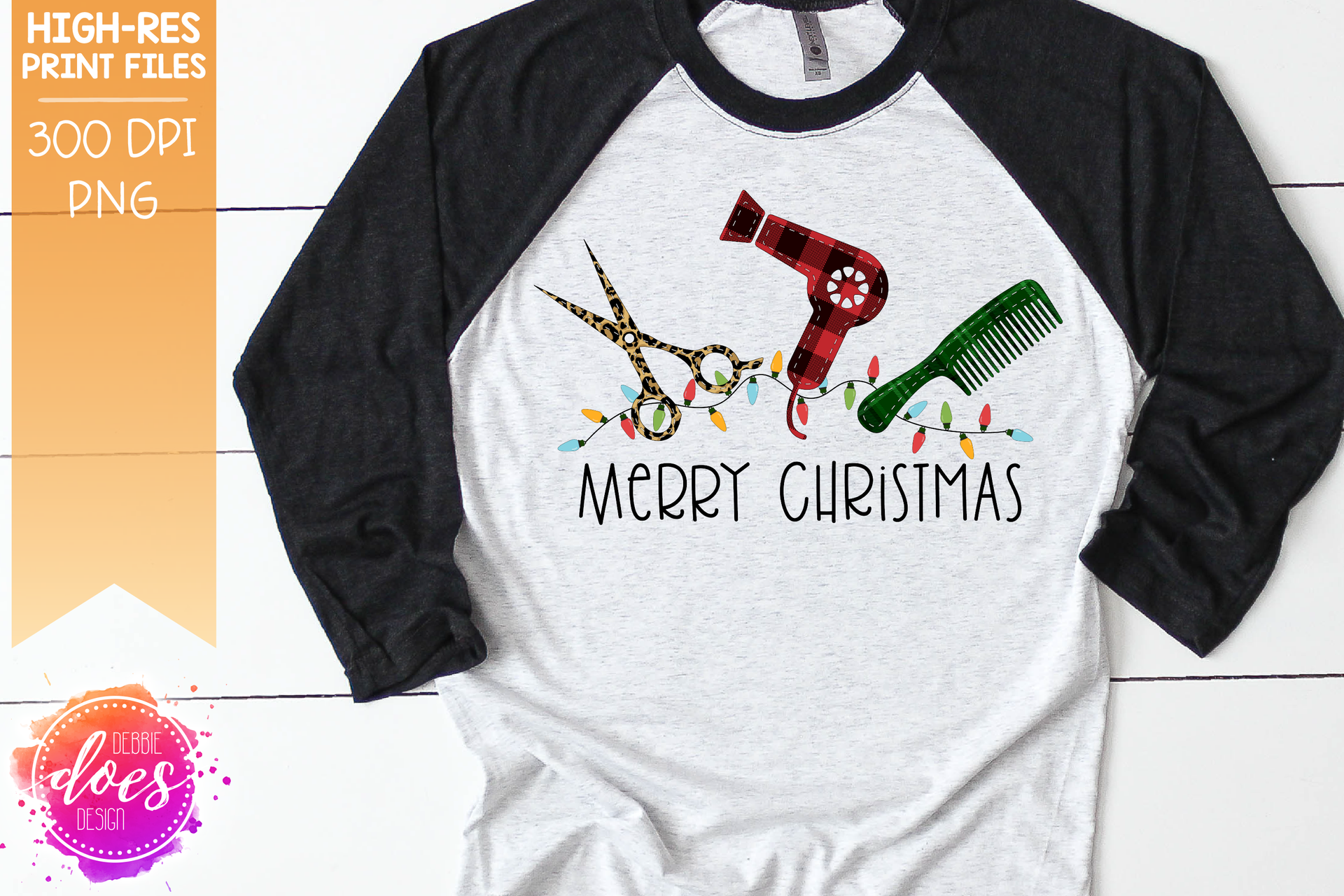 Christmas Leopard Plaid Hairdresser Applique With Lights - Sublimation/Printable Design