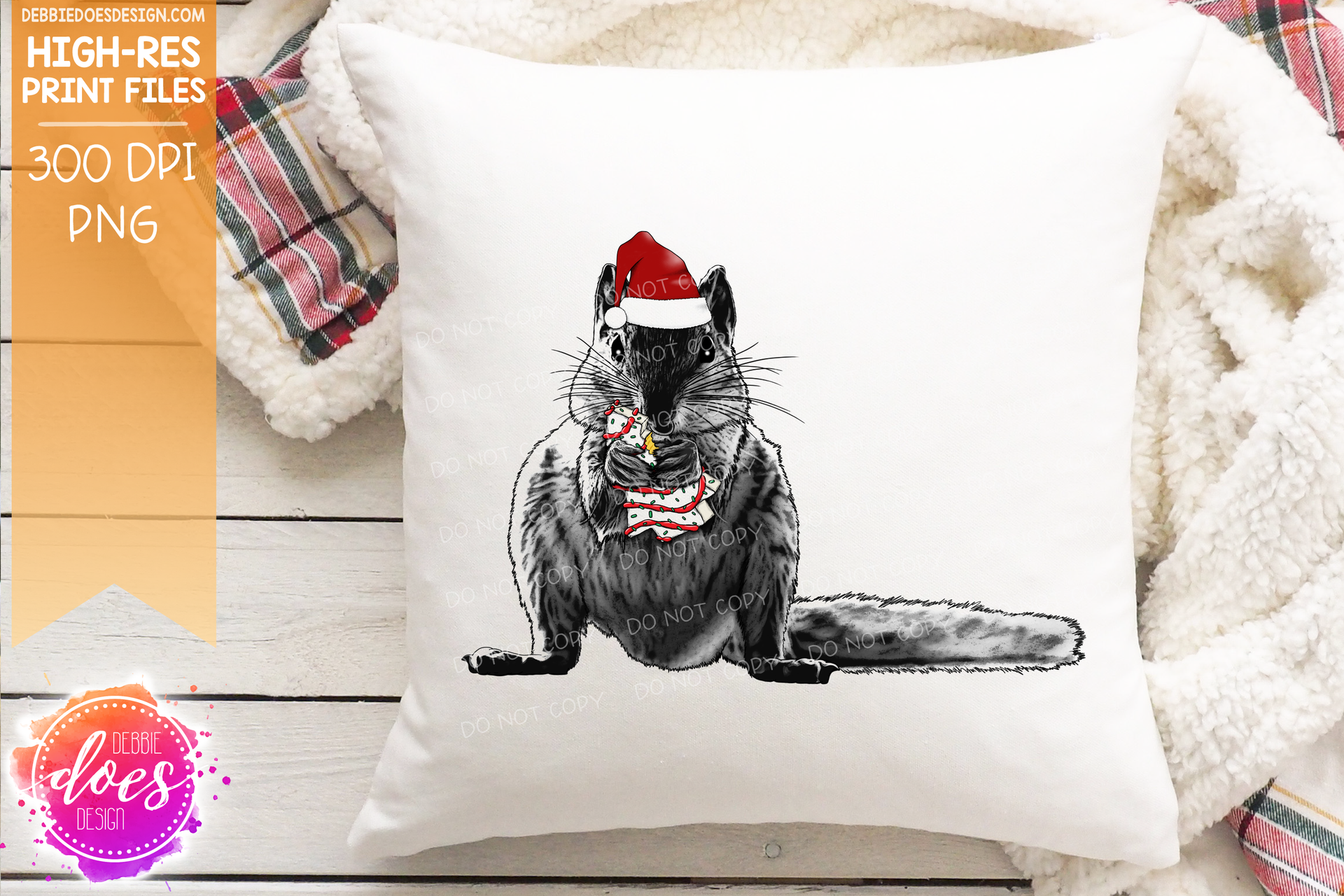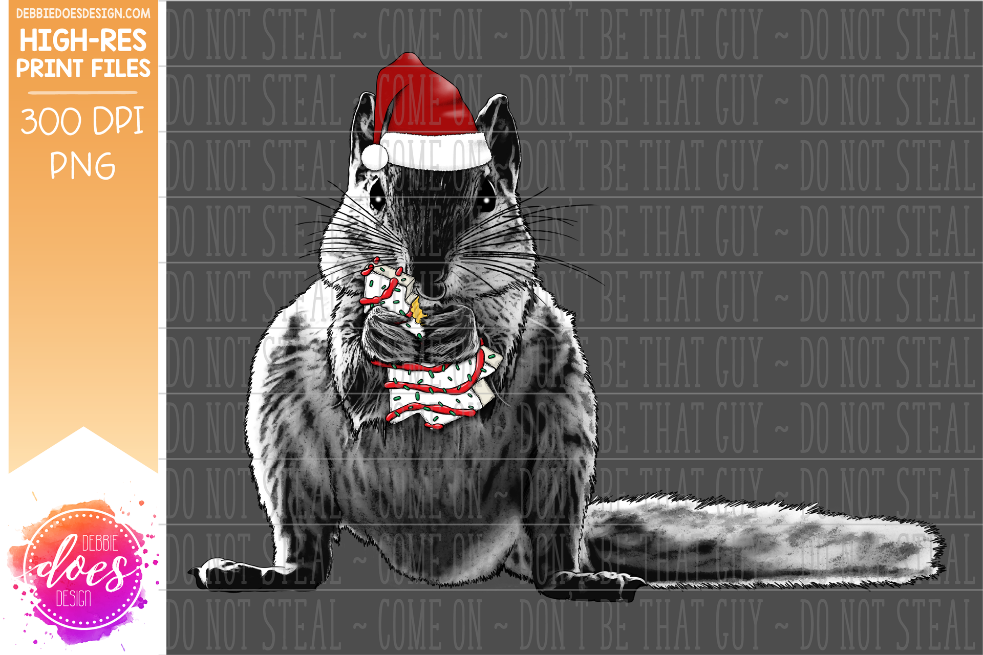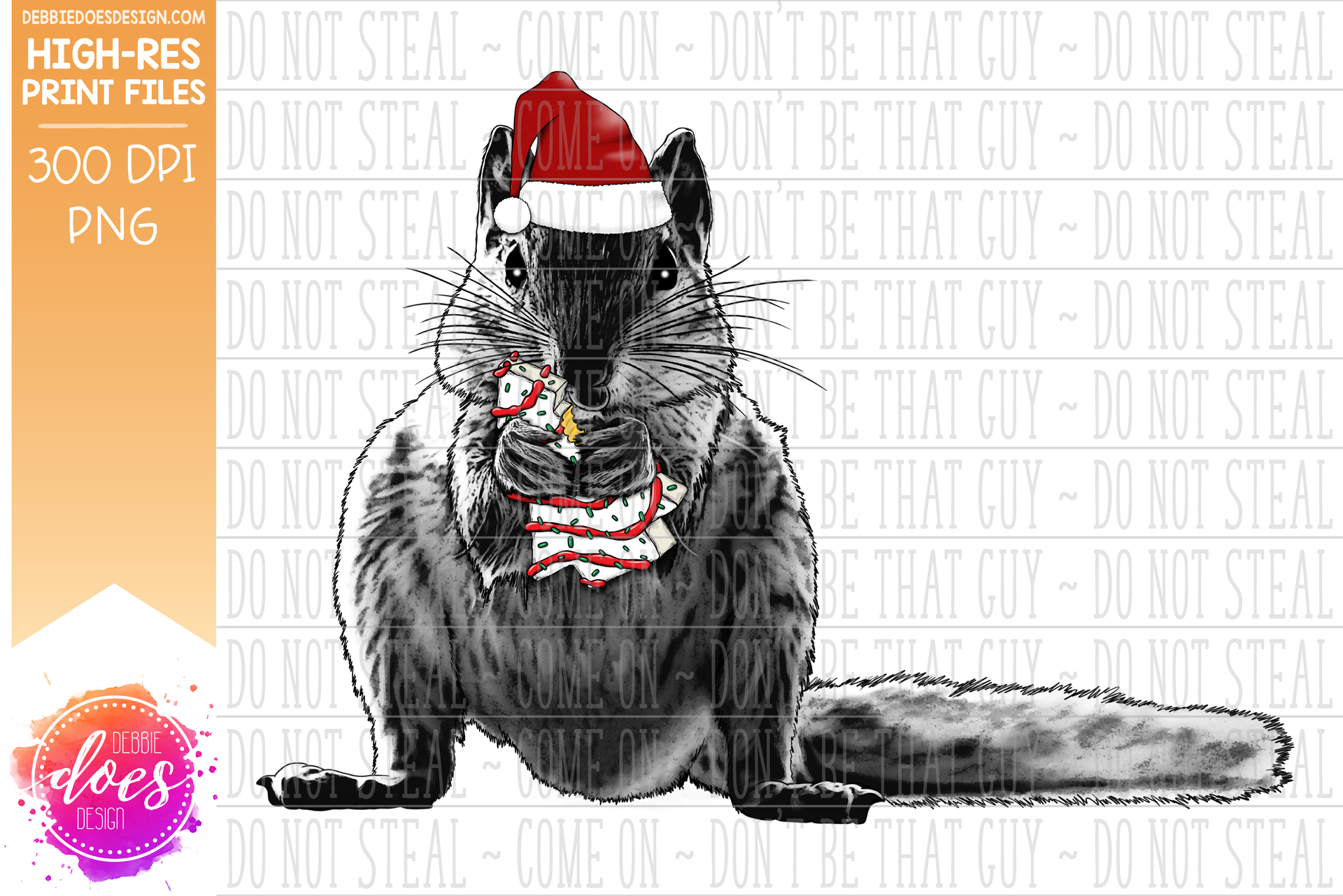 Christmas Squirrel Sketch with Cake - Sublimation/Printable Design