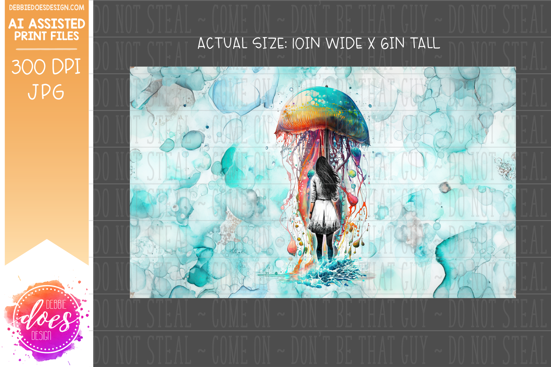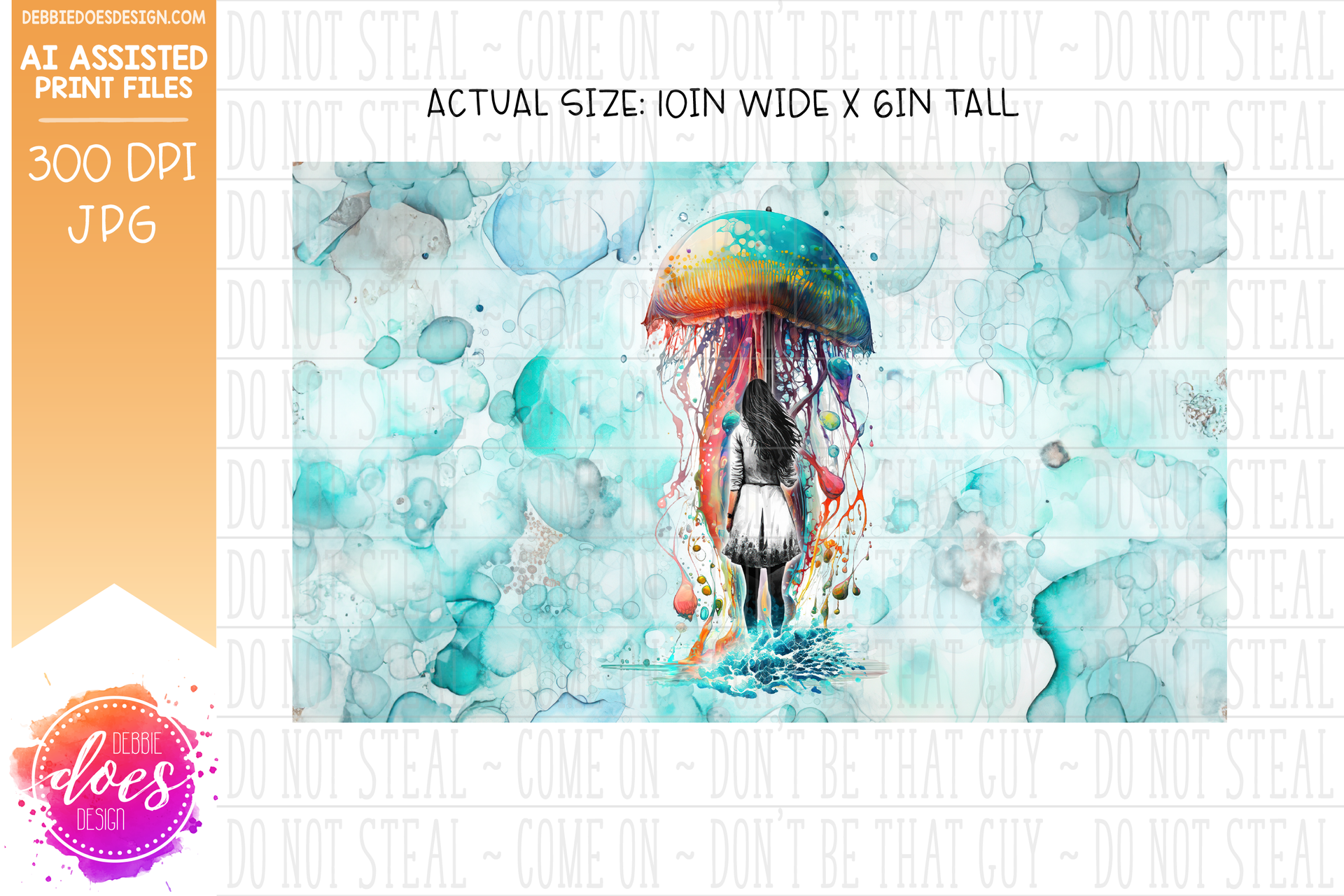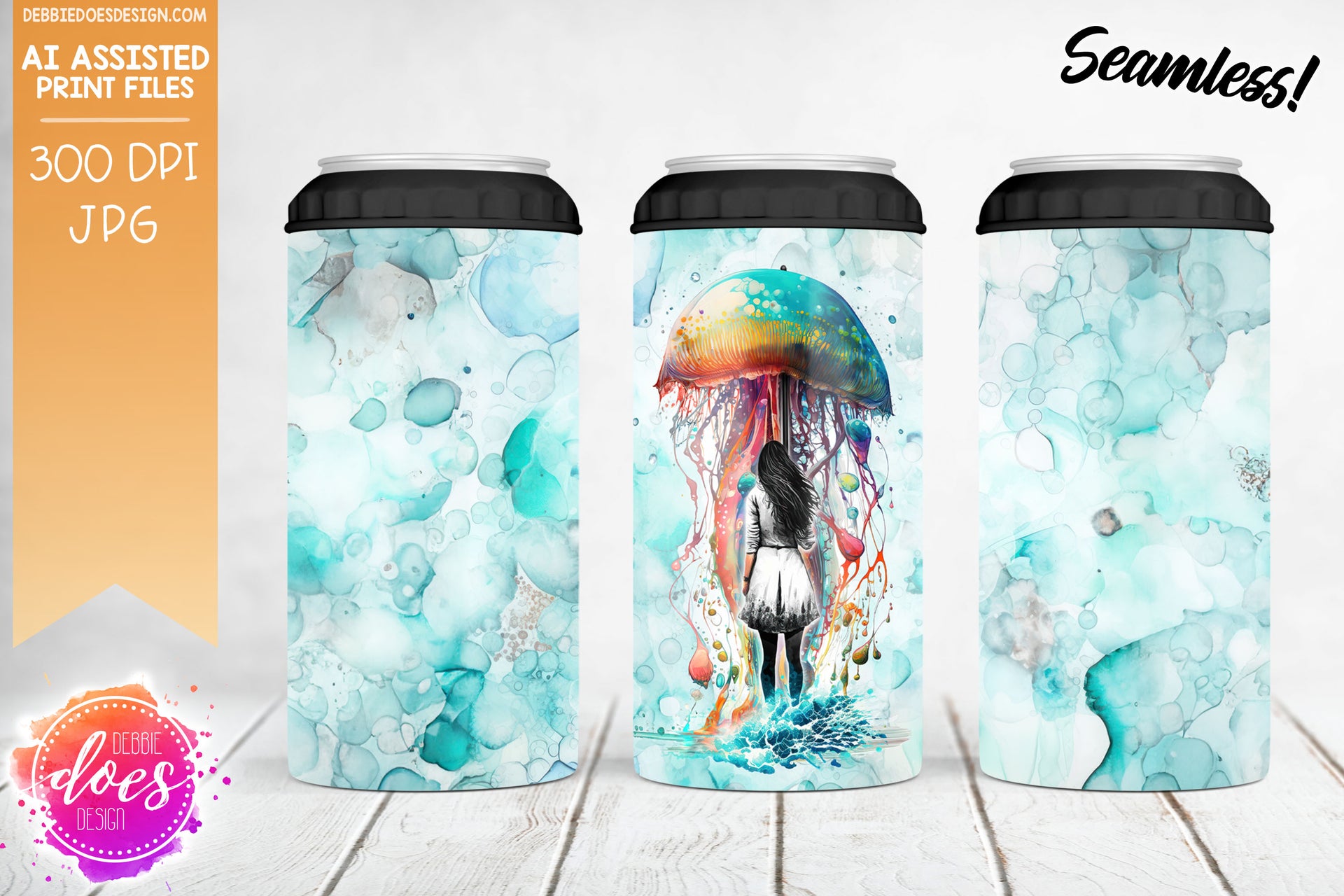 Colorful Girl with Jellyfish Umbrella - 4-in-1 Can Cooler - Printable/Sublimation Design