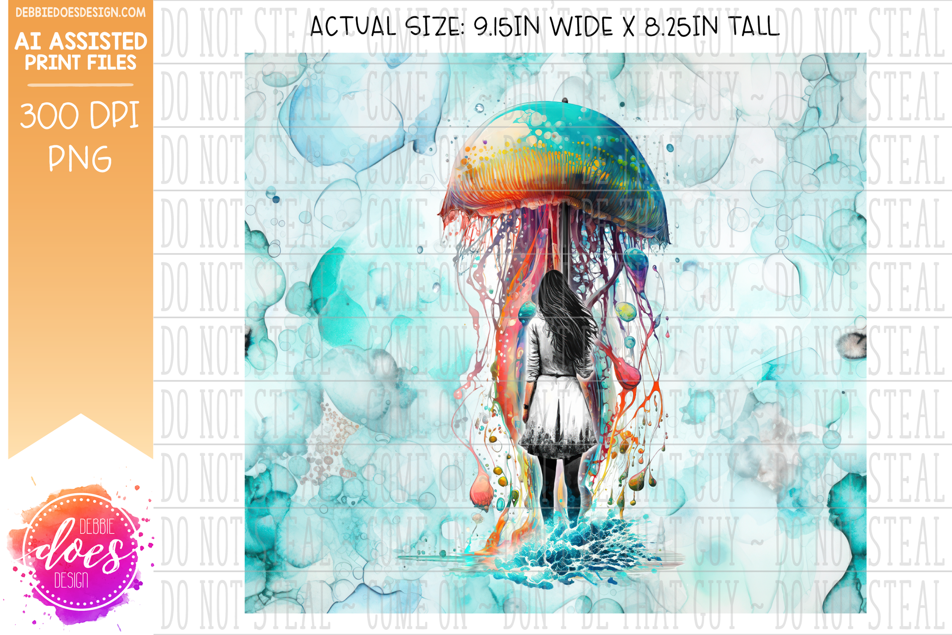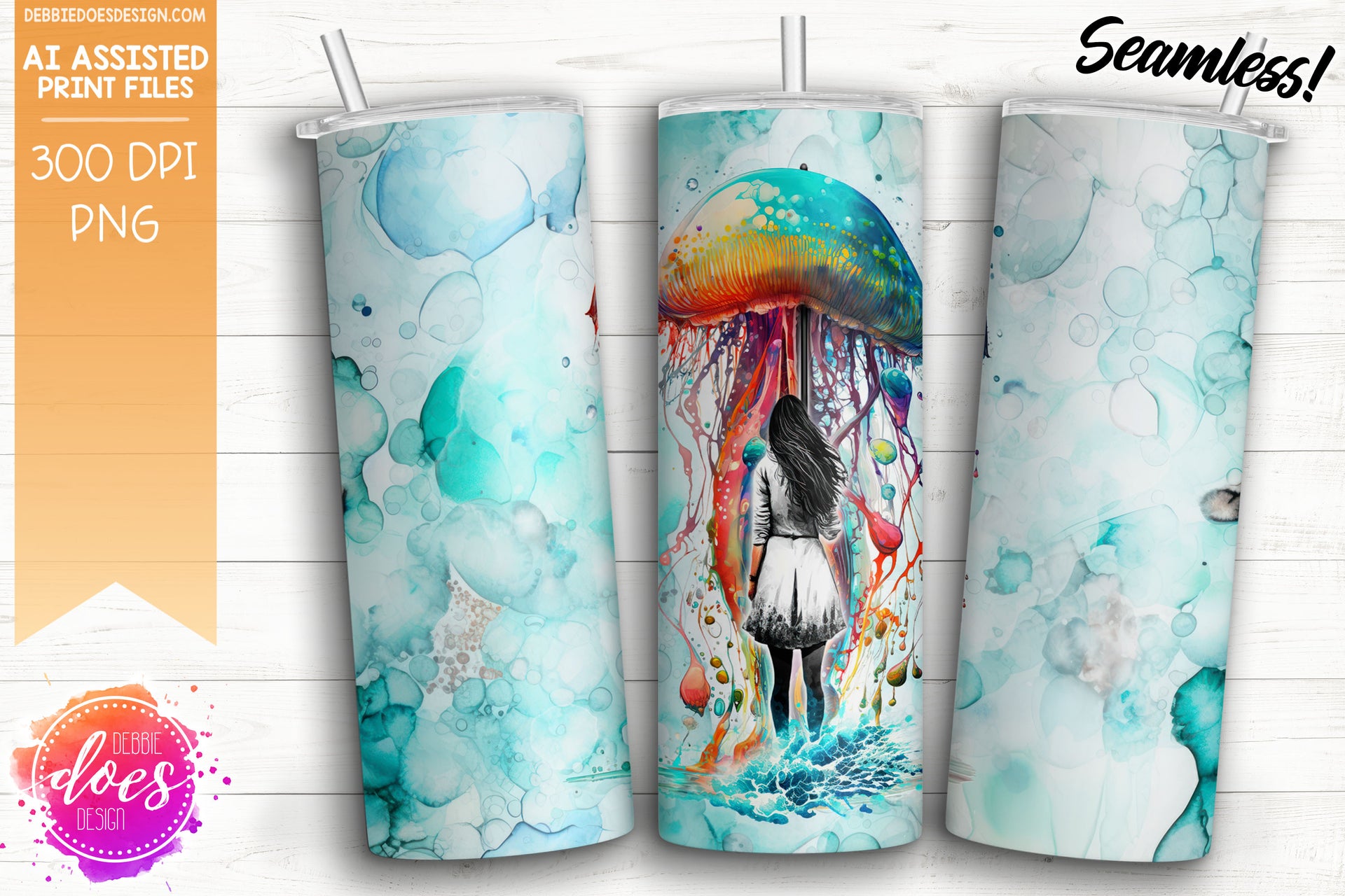 Colorful Girl with Jellyfish Umbrella - Alcohol Ink Tumbler - Printable/Sublimation Design