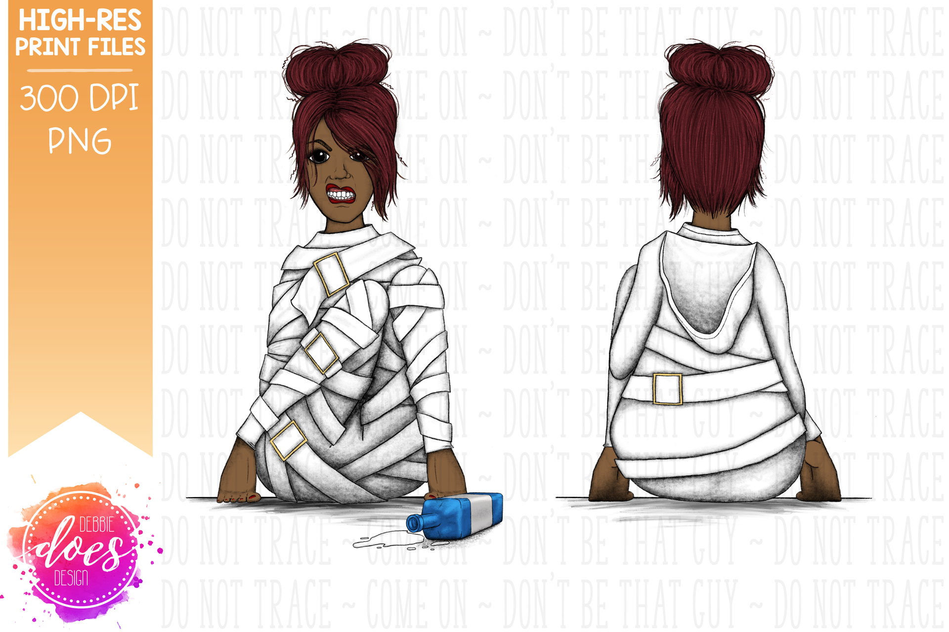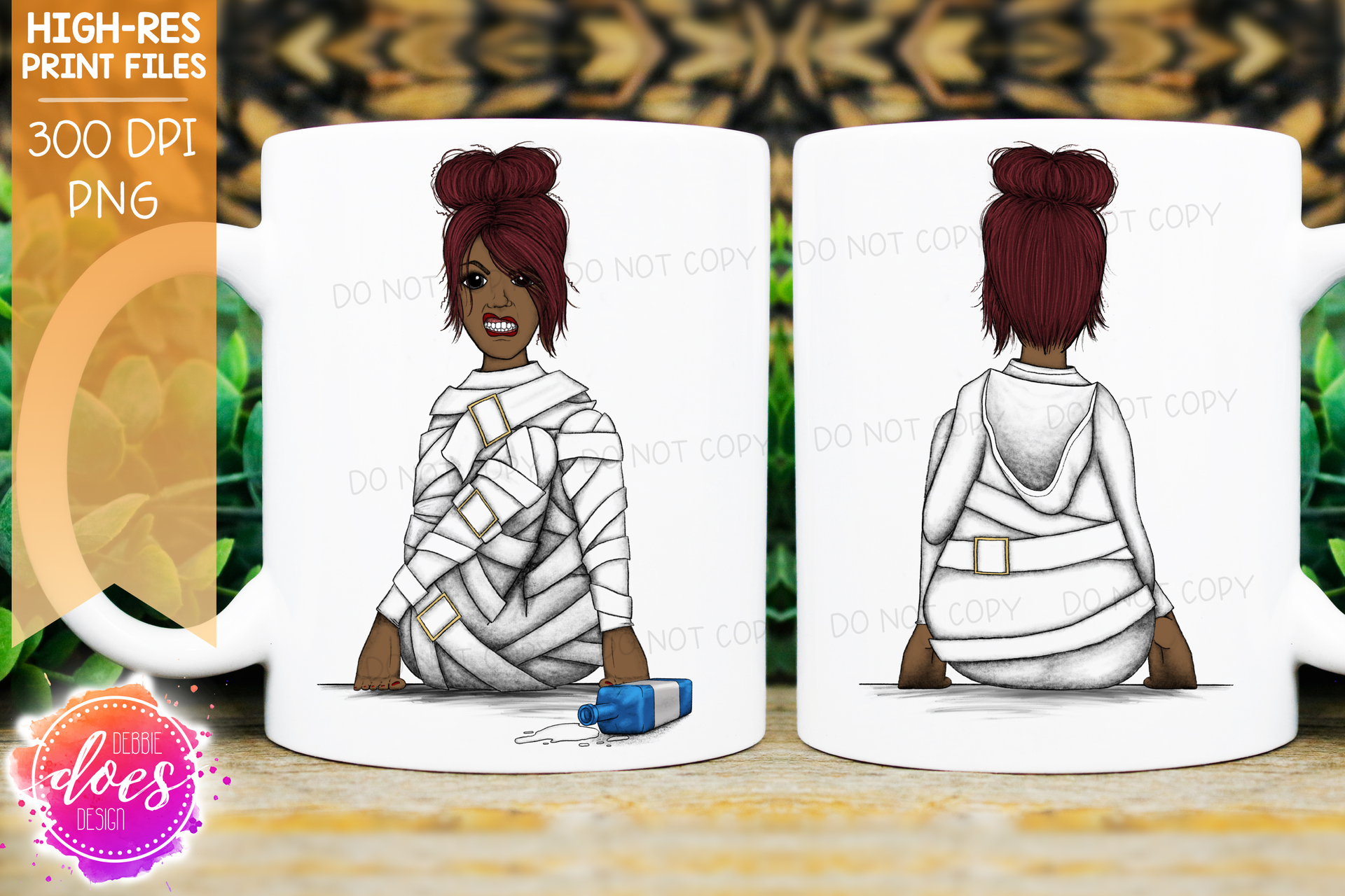 Stressed Out Sally - Dark Skin - Dark Red Hair - Black Eyes - Vodka - Sublimation/Printable Designs