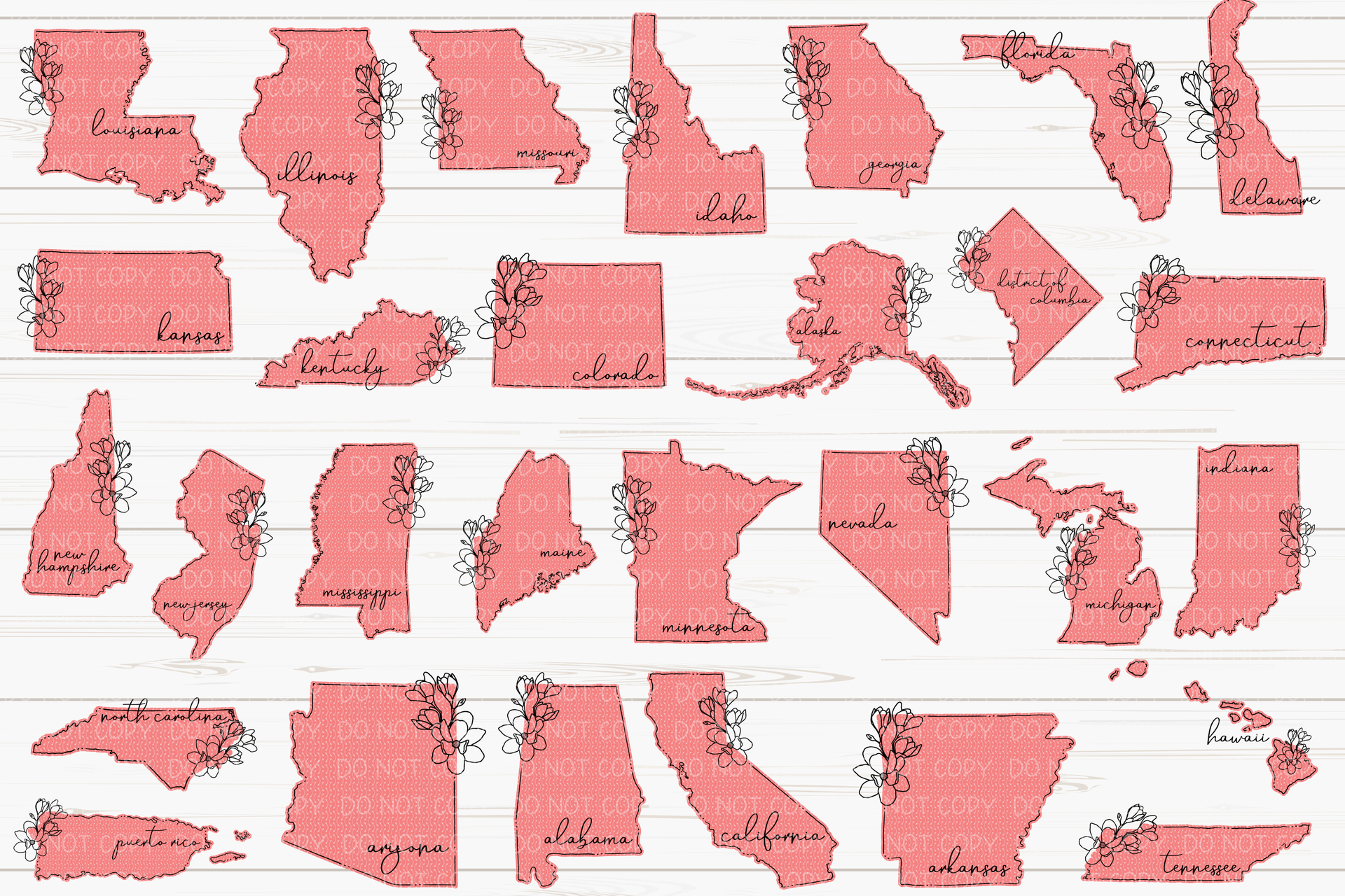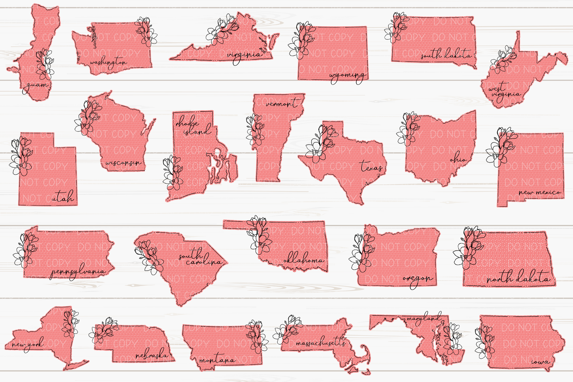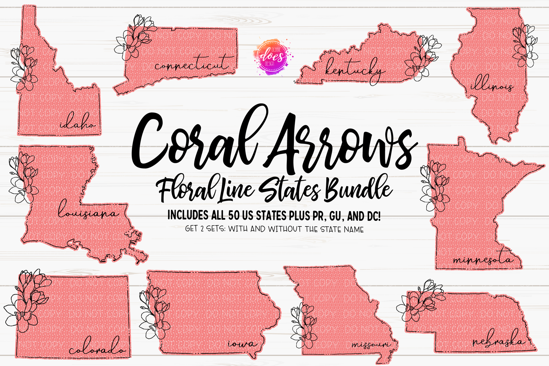 Coral Arrows Floral Line States Bundle - All 50 States, plus PR, GU & DC! - Sublimation/Printable Designs