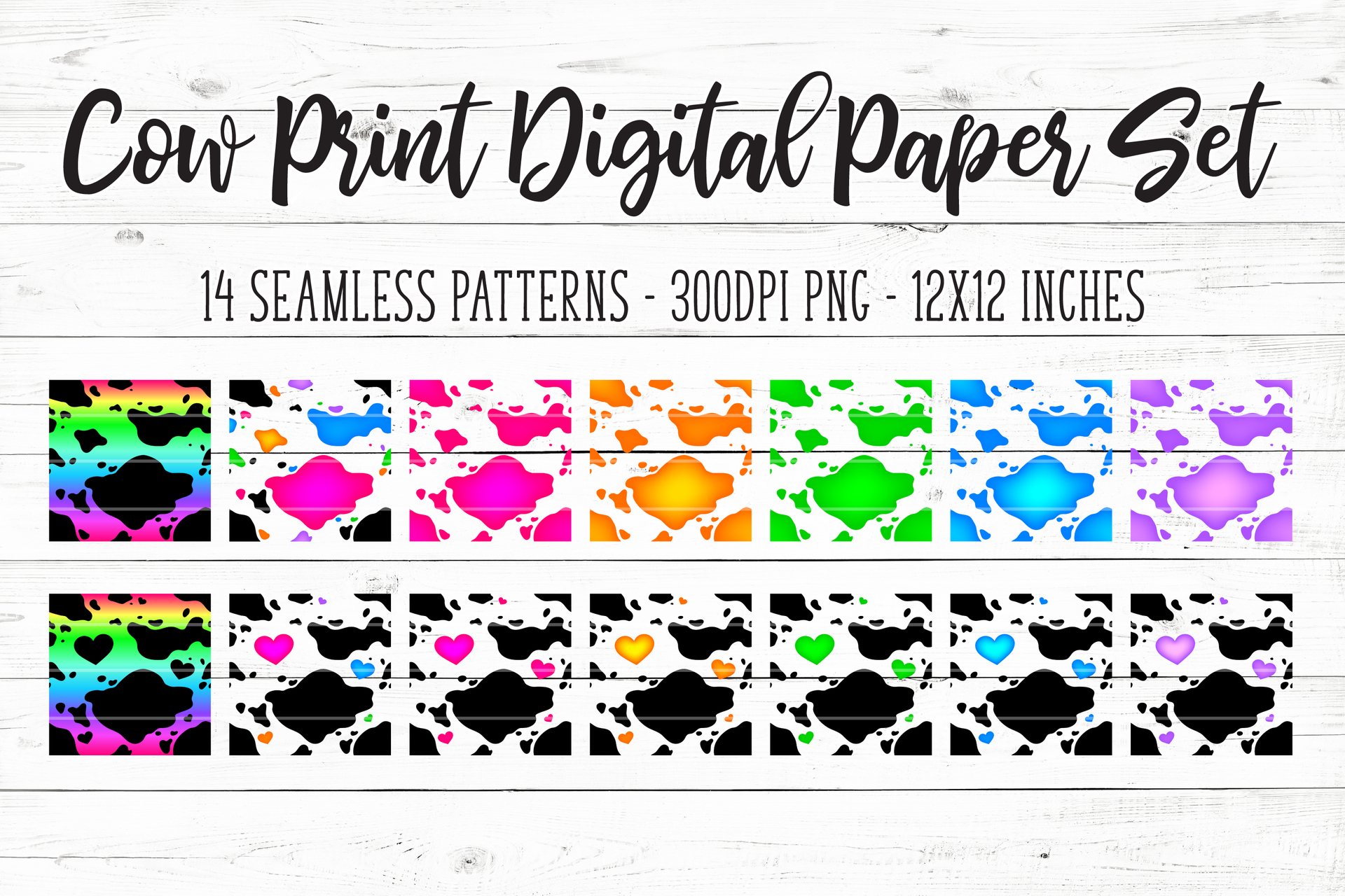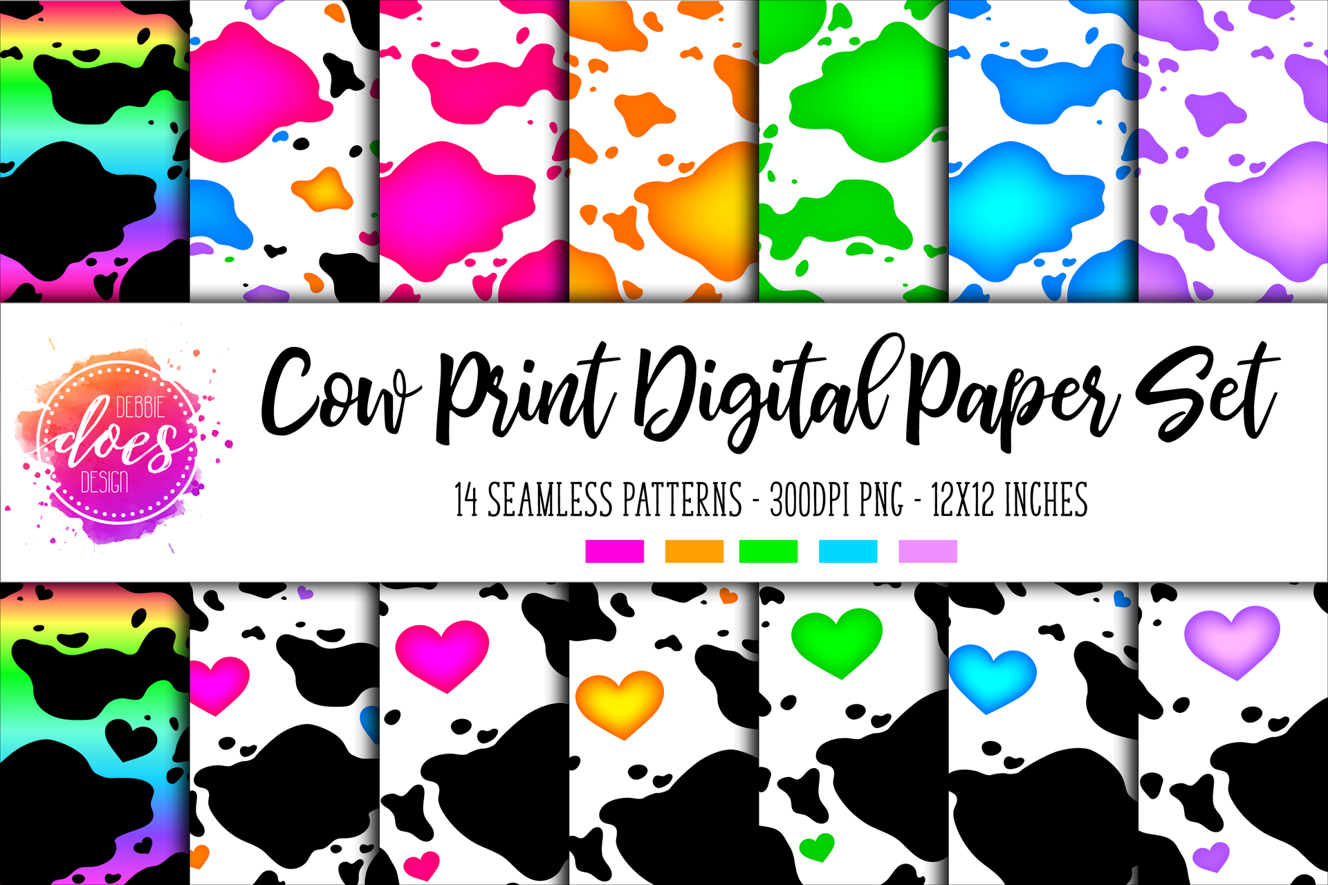 Cow Print Digital Paper/Seamless Pattern Set - Brights - Design Elements