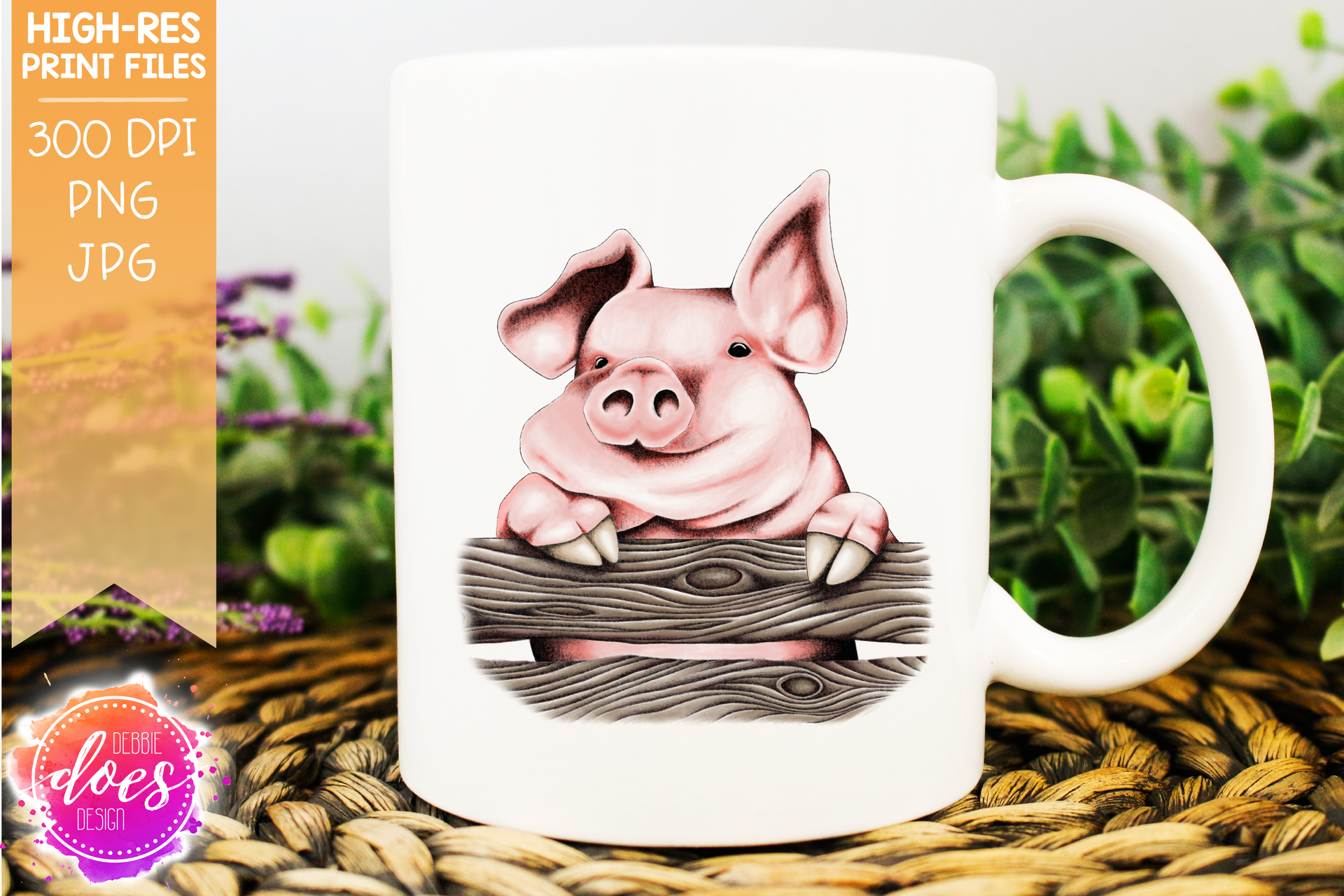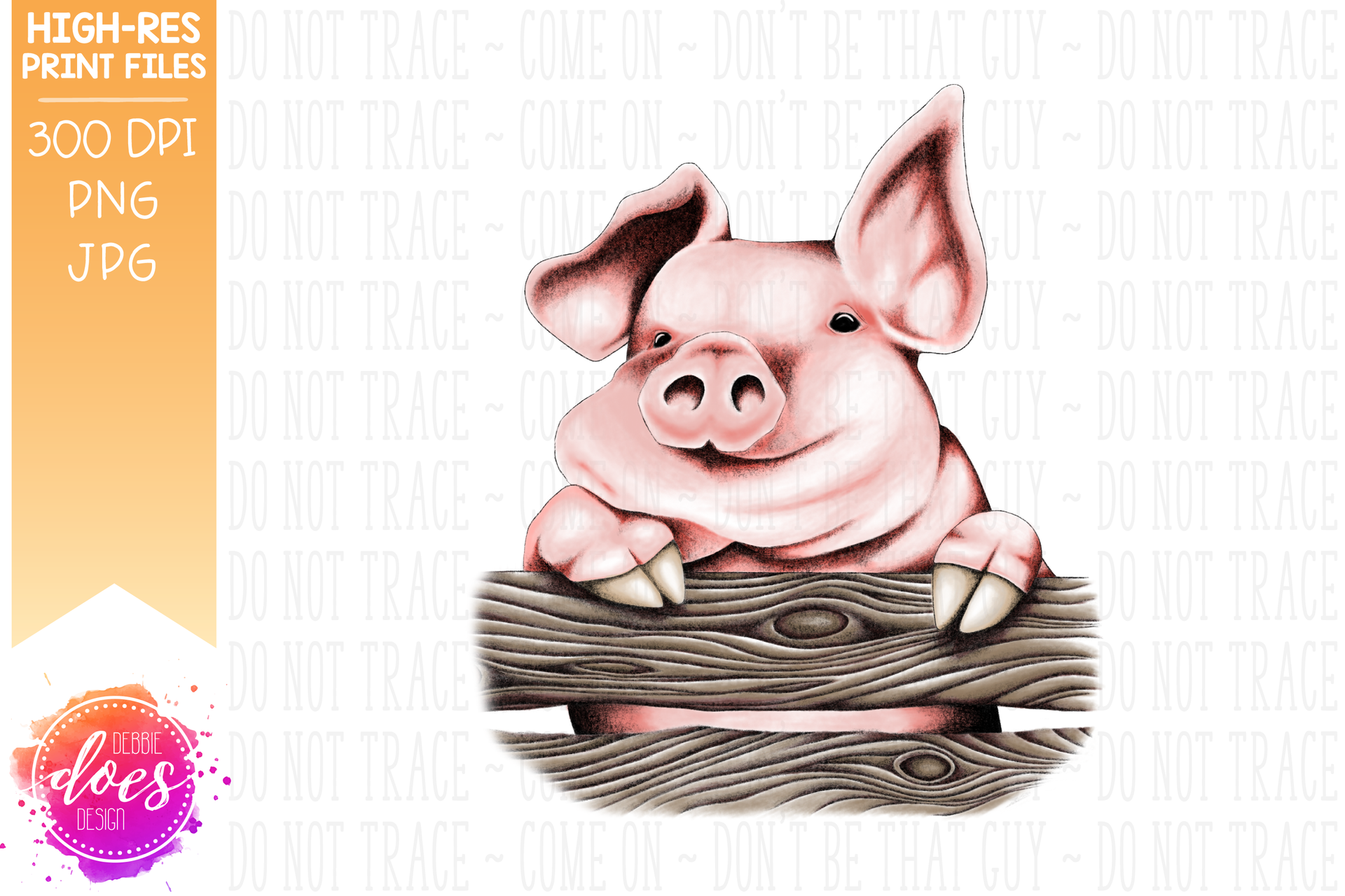 Cute Hand Drawn Pig with Floppy Ear (A) - Sublimation/Printable Design