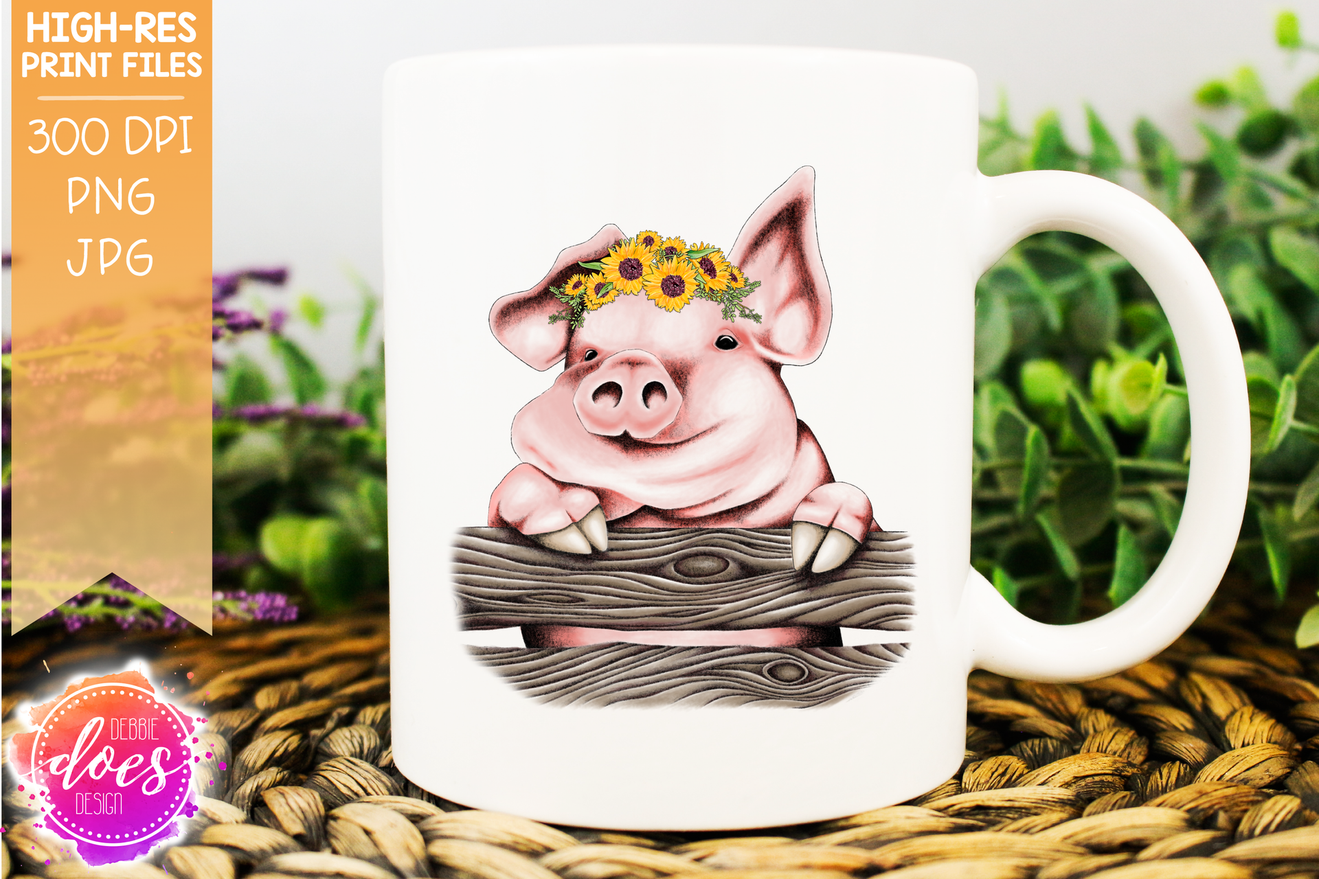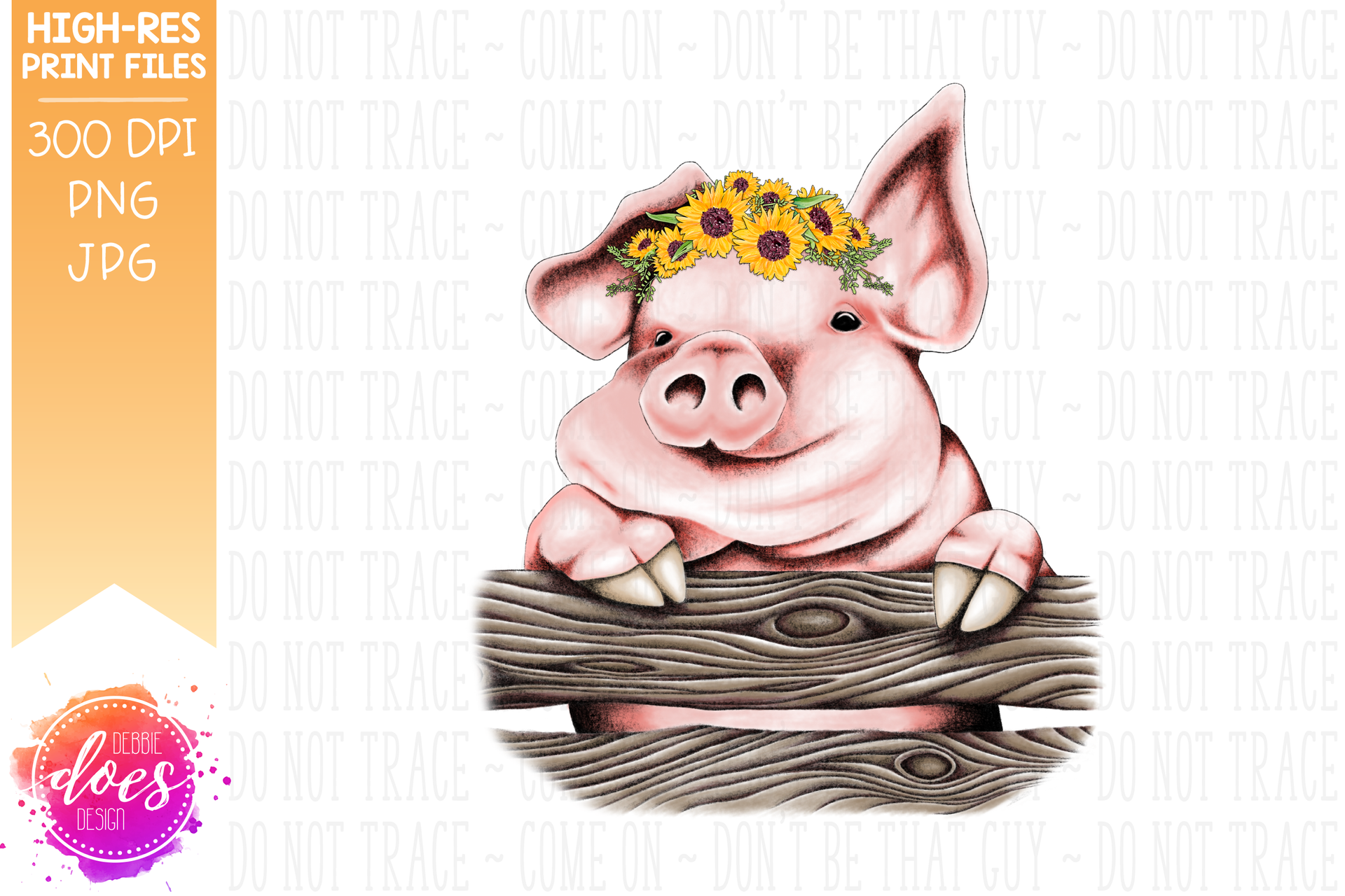 Cute Hand Drawn Pig with Floppy Ear & Sunflowers (A) - Sublimation/Printable Design