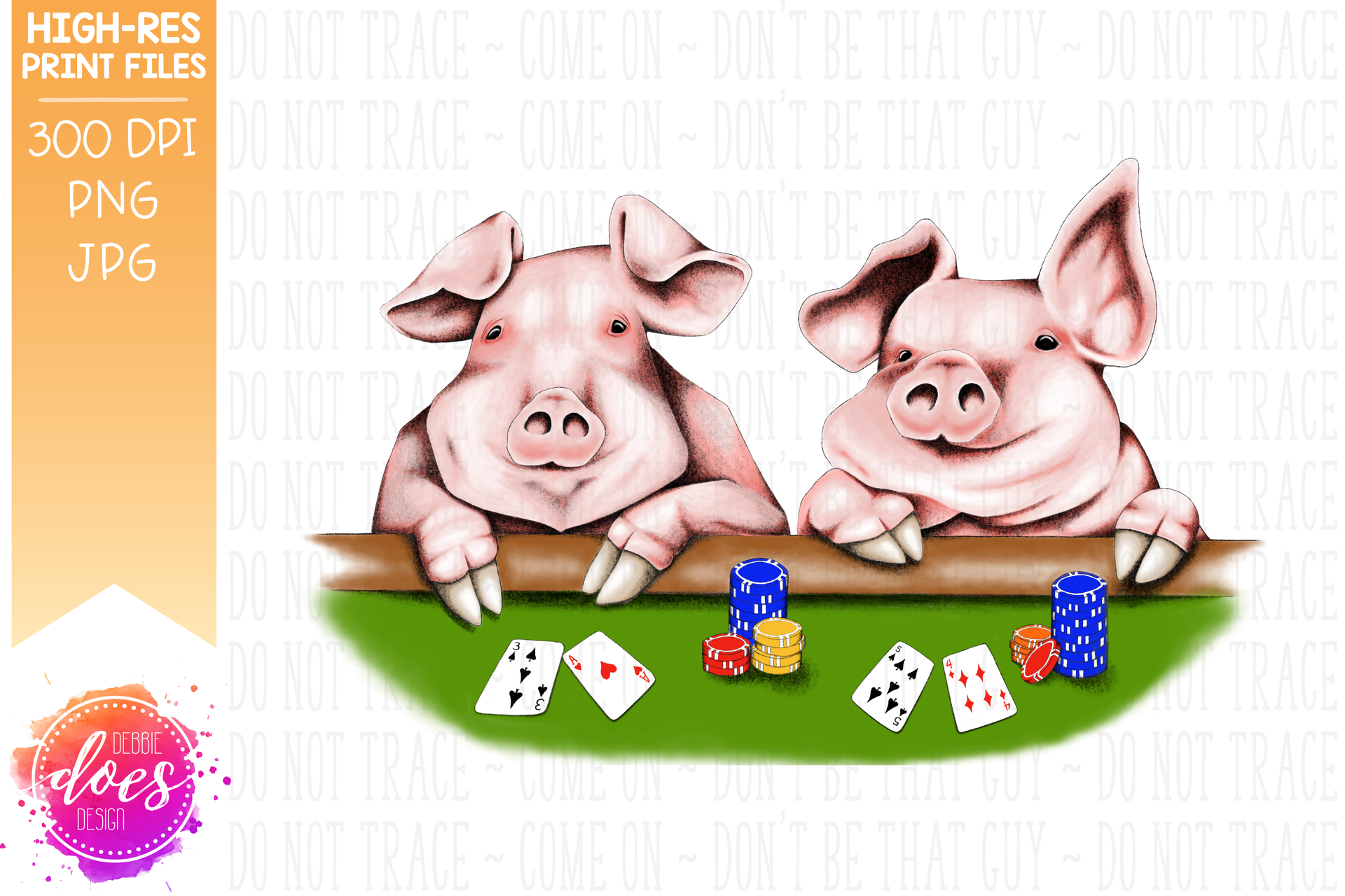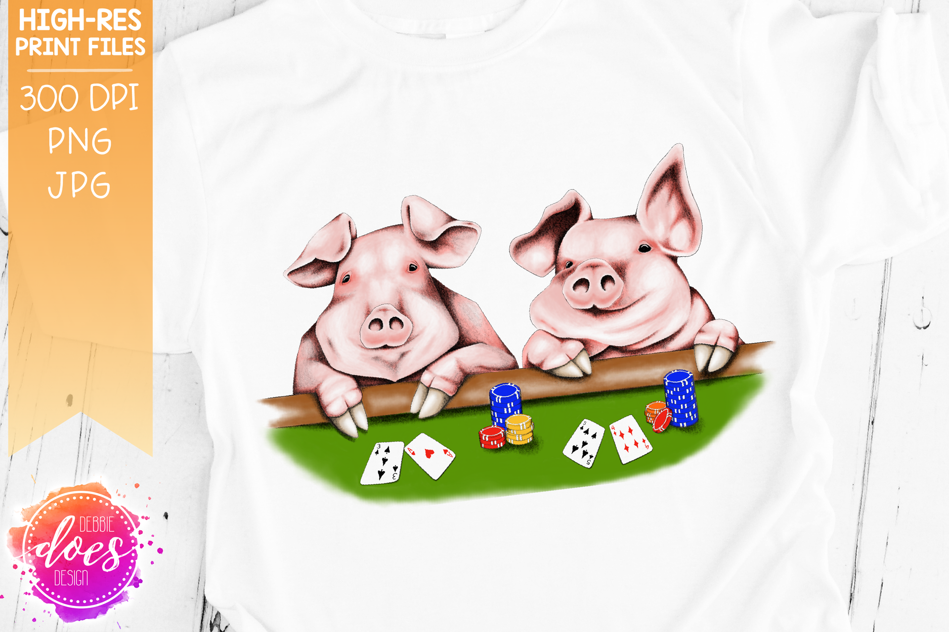 Cute Hand Drawn Pigs Playing Poker - Sublimation/Printable Design